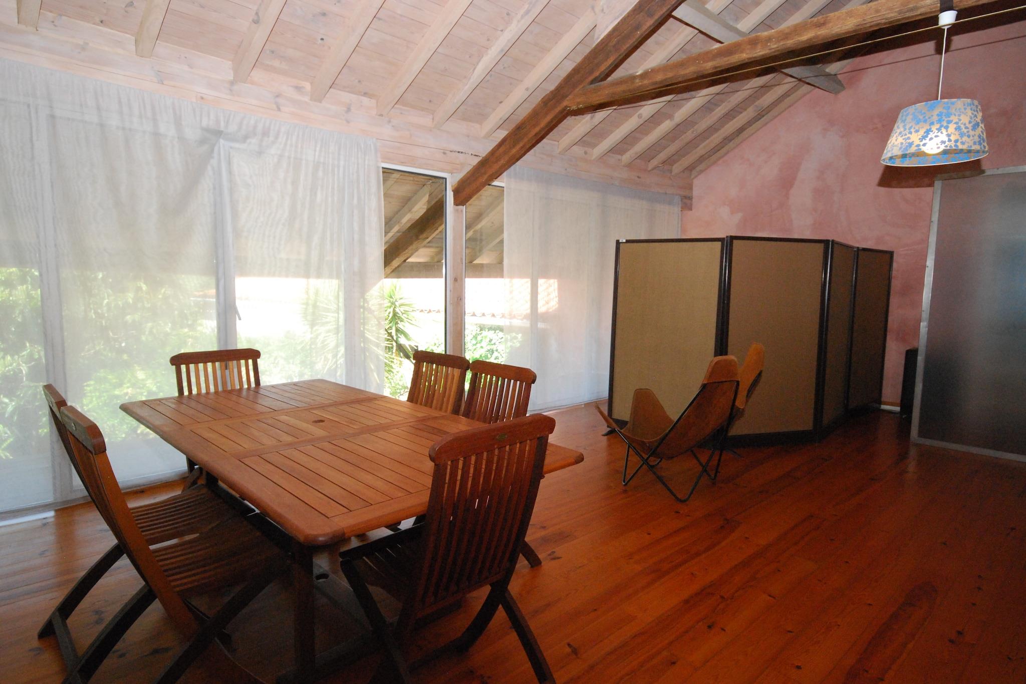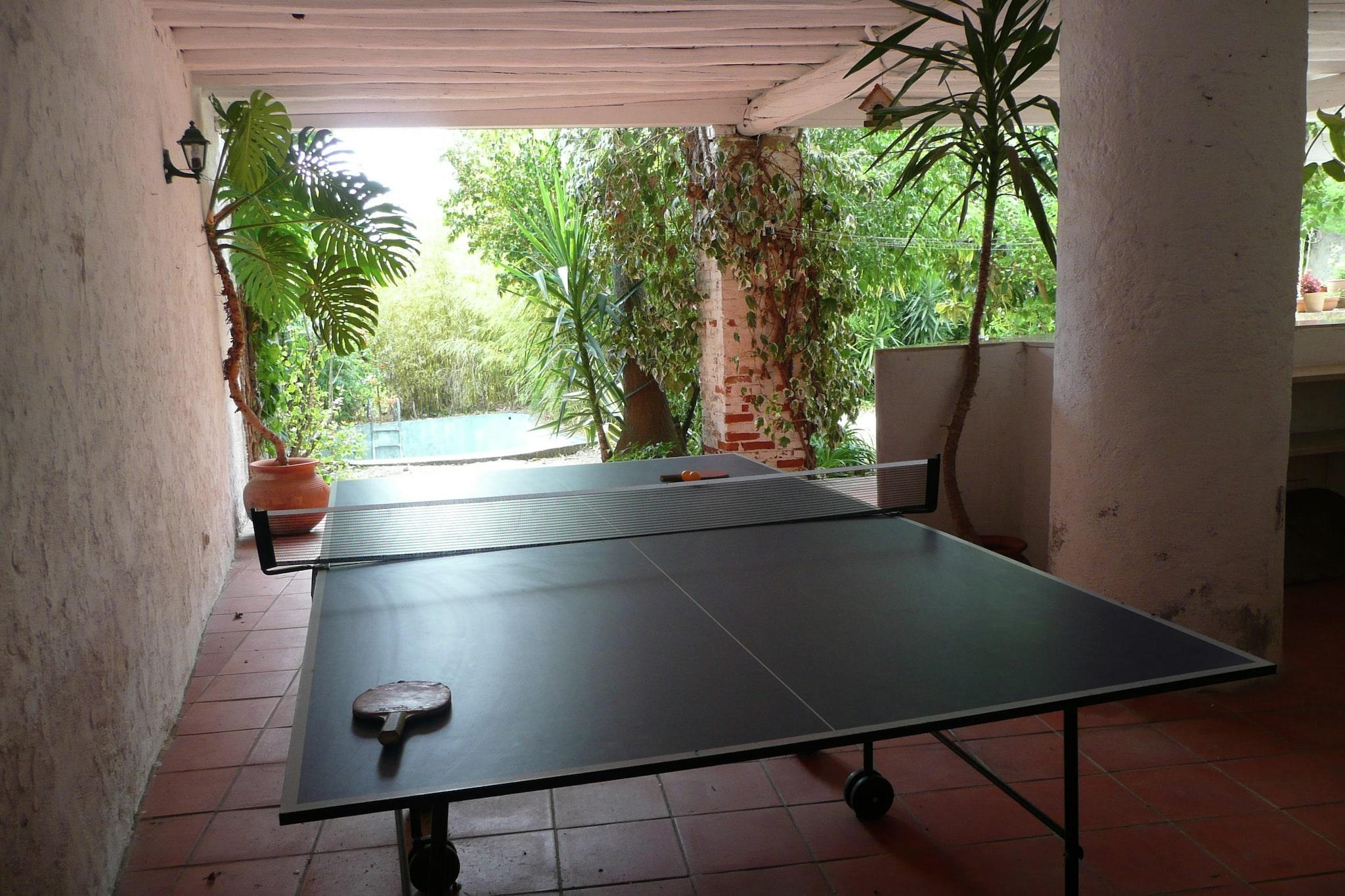 Stueetage: (Stue(dobbeltsovesofa, pejs), åbent køkken(spisebord, elkedel, brødrister, komfur(Komfur med fire kogeplader, gas), kaffemaskine(kaffetragt), ovn, mikrobølgeovn, køle-fryseskab), Soveværelse med badeværelse(dobbeltseng(130 x 180 cm), bruser, håndvask, toilet)) På 1. etage: (Stue(Fjernsyn(fladskærm), spisebord, sofahjørne, DVD-afspiller), soveværelse med gennemgang(3x dobbeltseng(135 x 180 cm, 140 x 180 cm, 140 x 190 cm)), badeværelse(bruser, håndvask, toilet)) bruser(udendørs), vaskemaskine, varme, terrasse(overdækket), have, havemøbler, grill, swimmingpool(privat, 8 x 4 m., opened from May upto and including Oct), biljard, fitnessapparater, barneseng, barnestol
