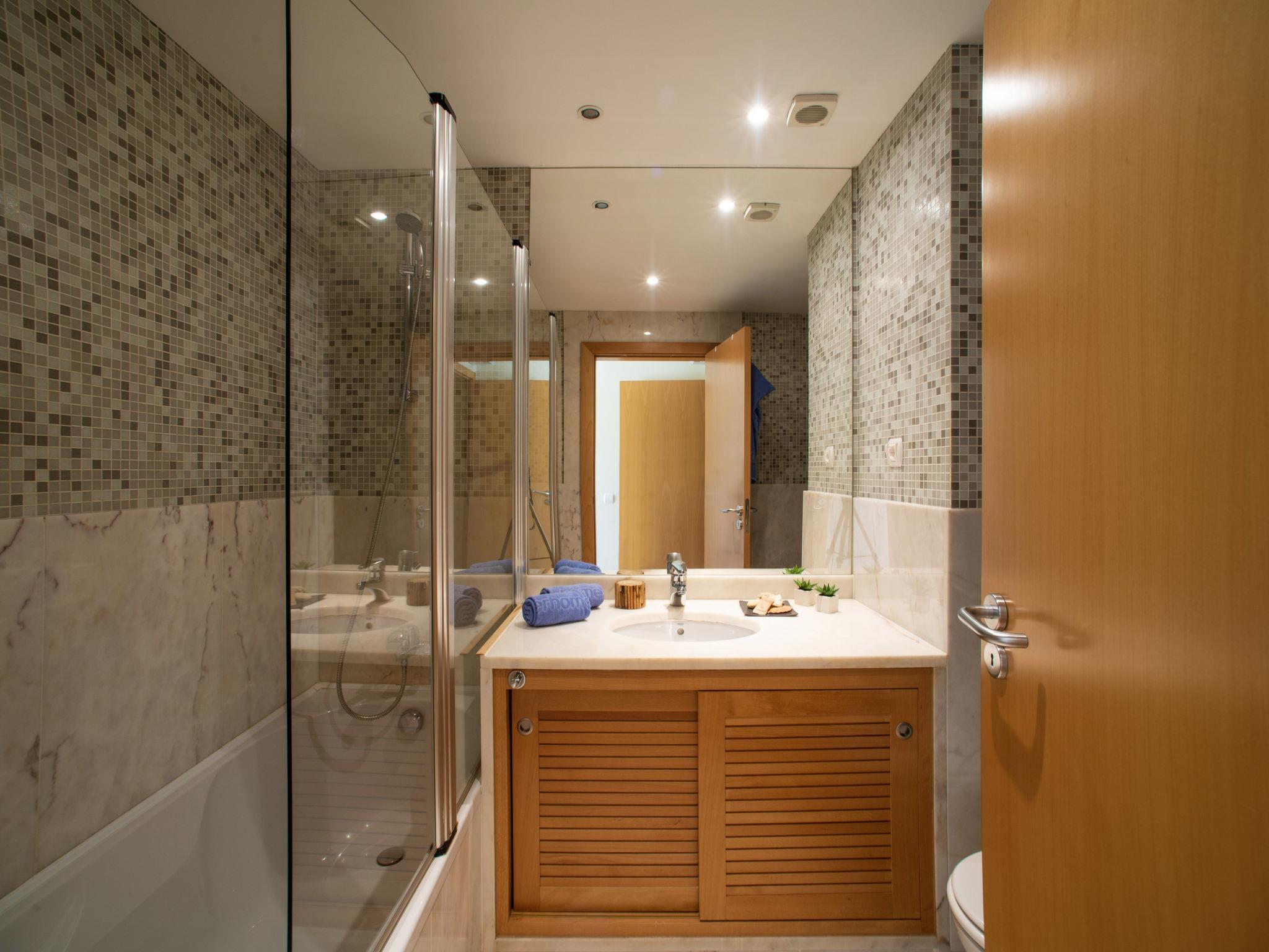 "Vilas Mouriscas", 3-room apartment 68 m2. Spacious, very practical and comfortable furnishings: living room with 1 double sofabed (140 cm, length 200 cm), dining table, cable TV, flat screen, air conditioning and forced-air heating. Exit to the balcony. 1 room with 2 beds (90 cm, length 200 cm). 1 room with 1 french bed (140 cm, length 200 cm), hip bath/WC. Kitchen (5 hot plates, oven, dishwasher, microwave, freezer, electric coffee machine). Shower/WC. Terrace furniture. View of the swimming pool. Facilities: washing machine, iron, children's high chair, baby cot for up to 2 year olds, hair dryer. Internet (WiFi). Suitable for families. 69786/AL