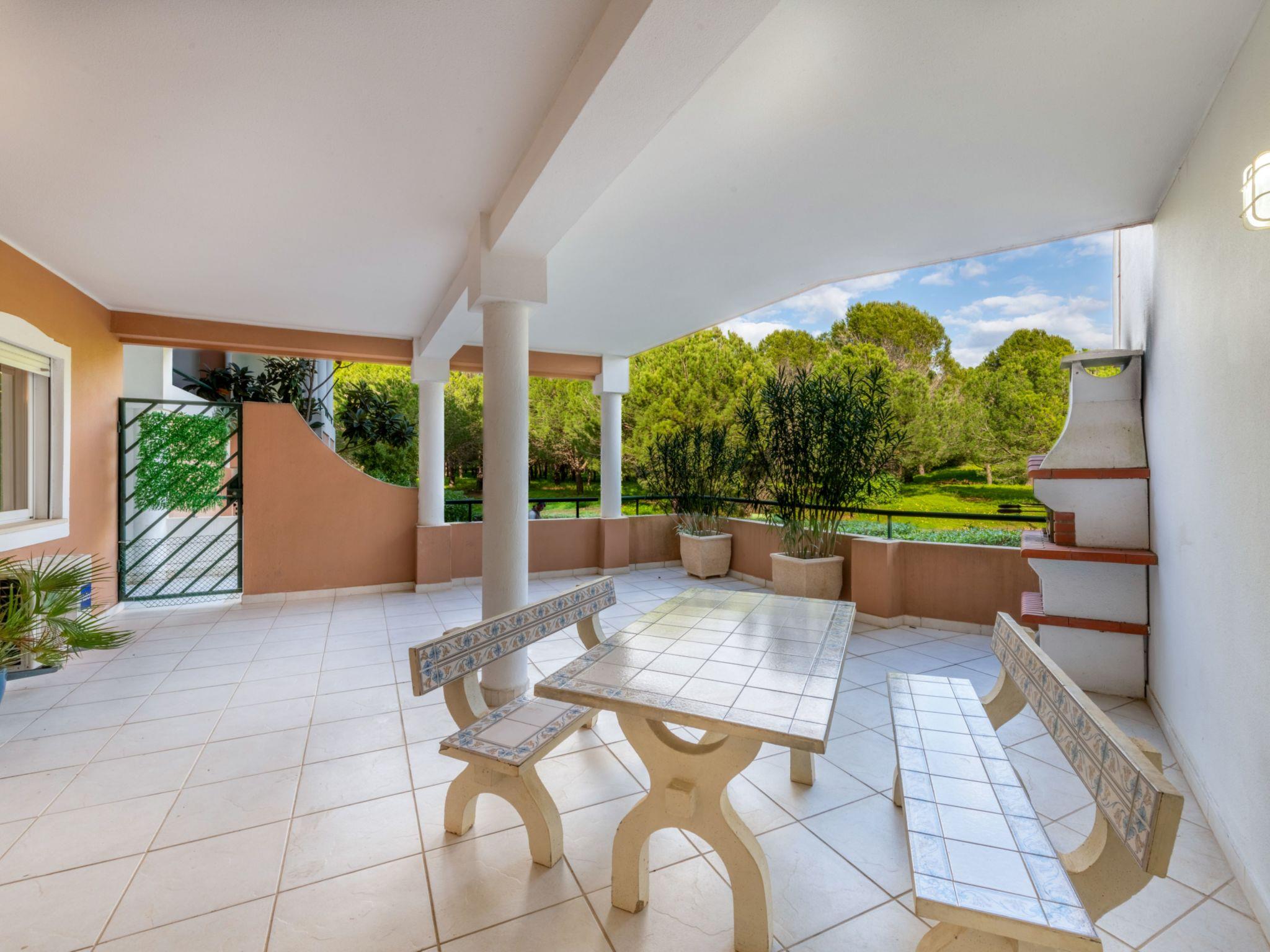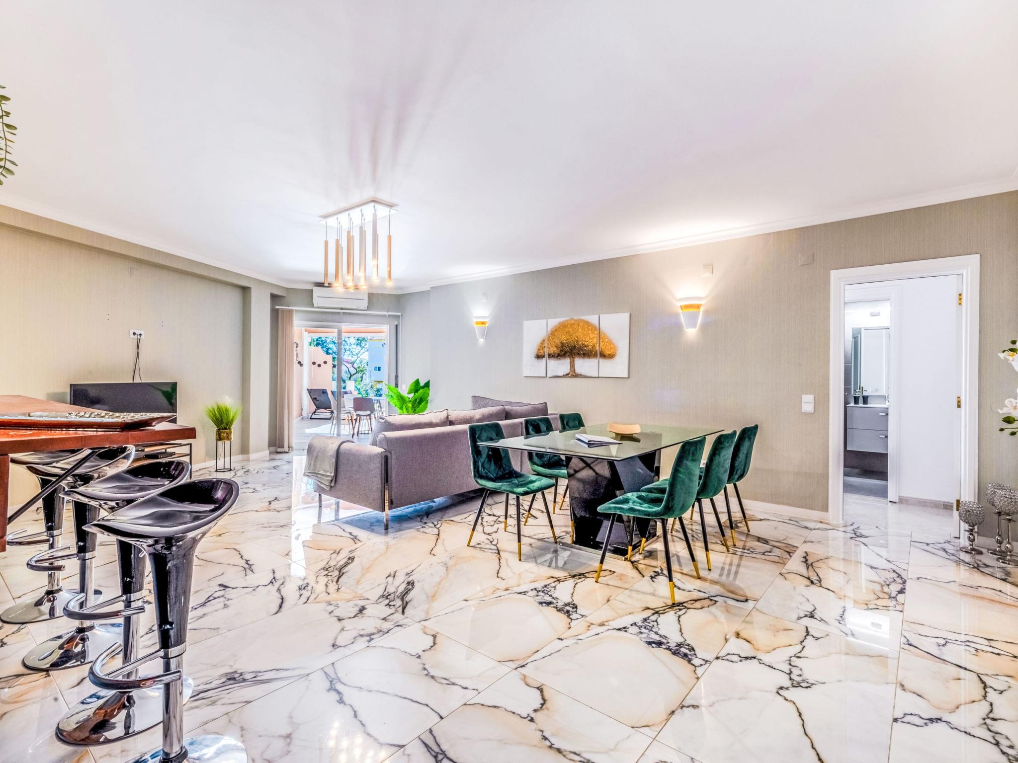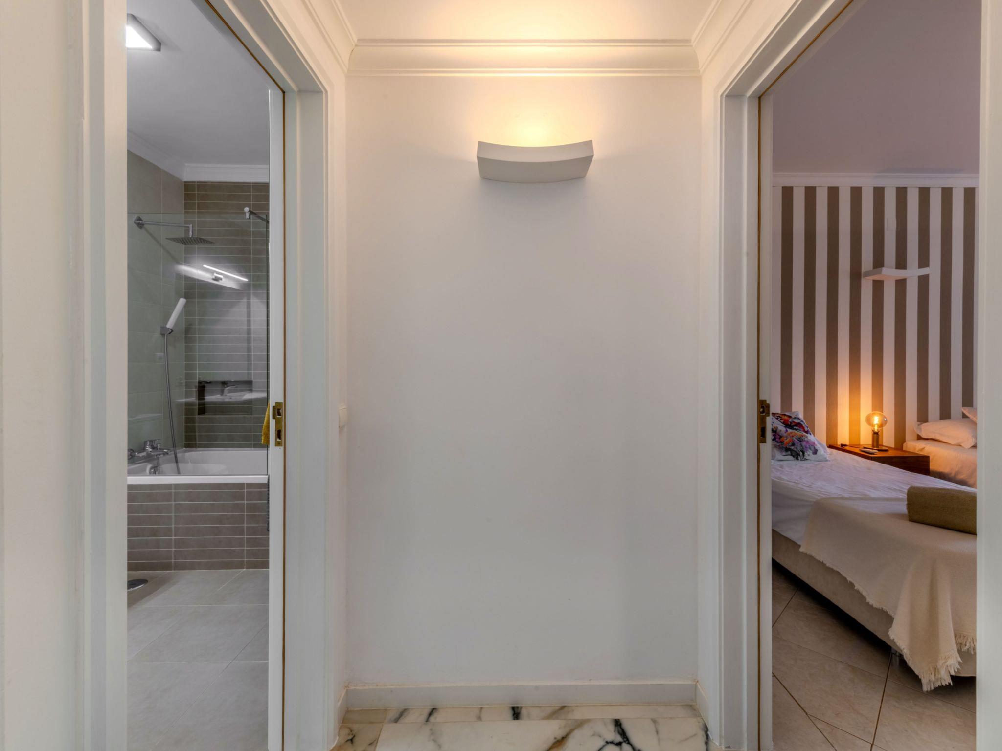 "T2 Cassias VIP Properties", 3-room apartment 106 m2. Very comfortable and cosy furnishings: lounge with cable TV, international TV channels, flat screen, air conditioning and forced-air heating. 1 room with 3 beds (90 cm, length 190 cm), air conditioning and forced-air heating. 1 room with 1 french bed (160 cm, length 200 cm), shower/bidet/WC, air conditioning and forced-air heating. Open kitchen (oven, dishwasher, 4 ceramic glass hob hotplates, toaster, kettle, microwave, freezer, electric coffee machine, Capsules for coffee machine (Dolce Gust not Incl.), cooking island). Shower/WC, hip bath/WC. Porch. Terrace furniture, barbecue, deck chairs (2), sitting area. View of the garden. Facilities: washing machine, iron, children's high chair, baby cot for up to 2 year olds (extra), hair dryer. Internet (WiFi, free). Suitable for families. 119239/AL