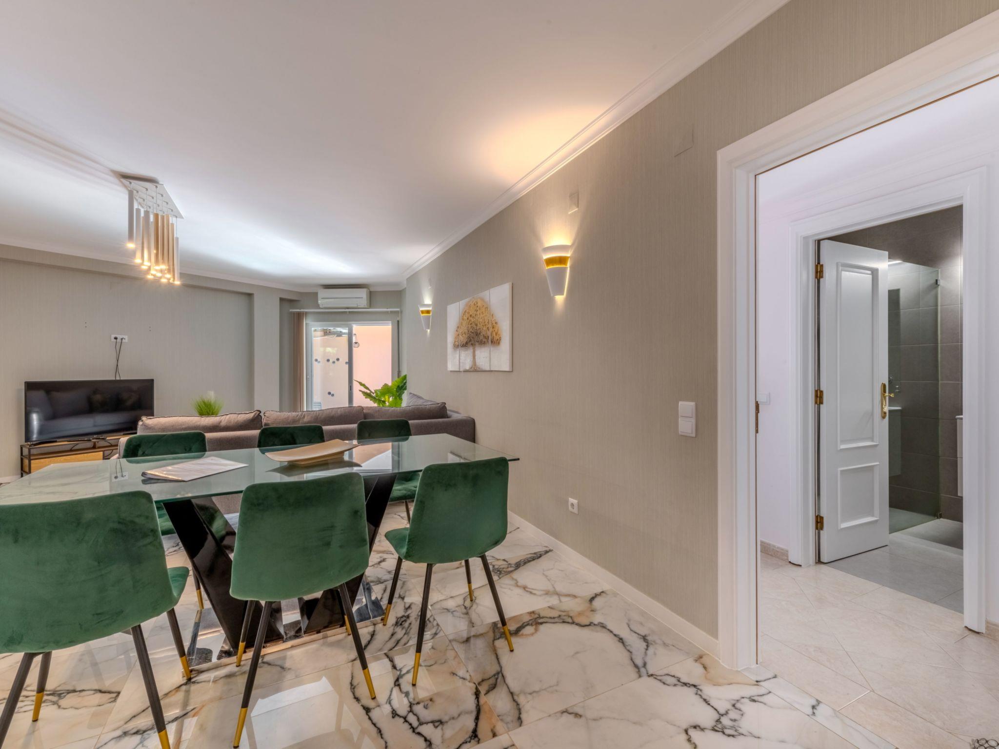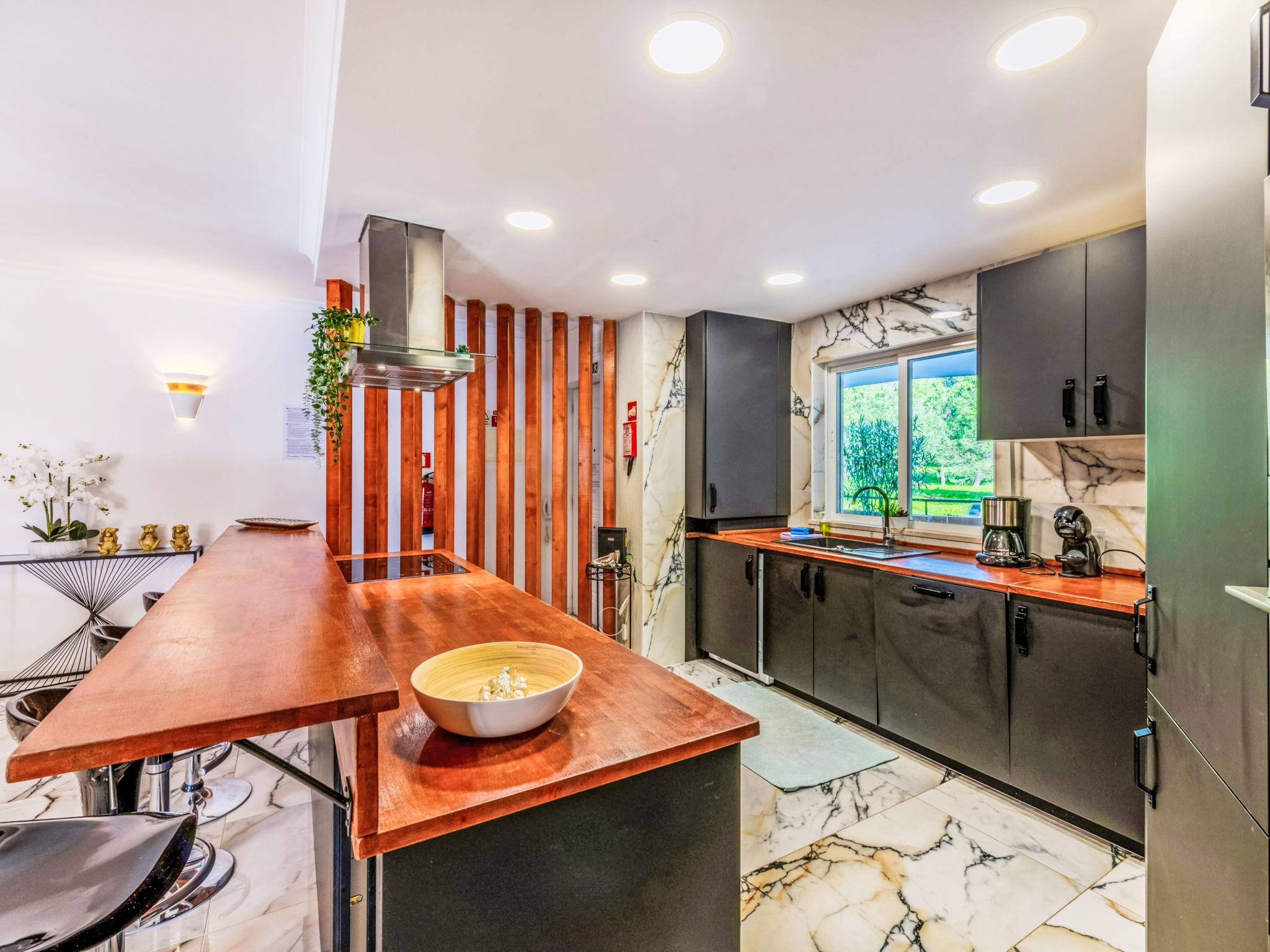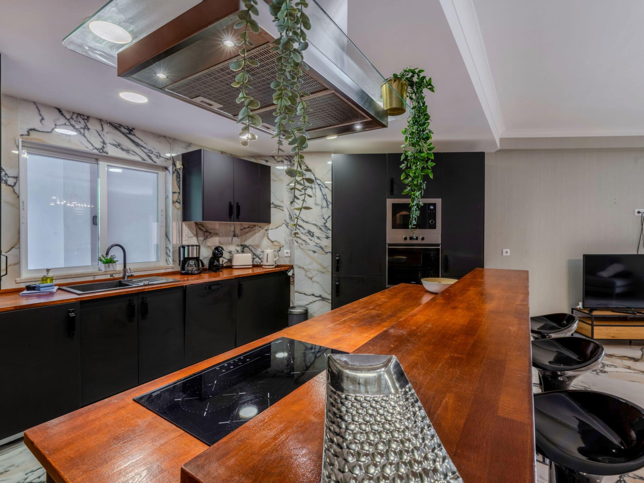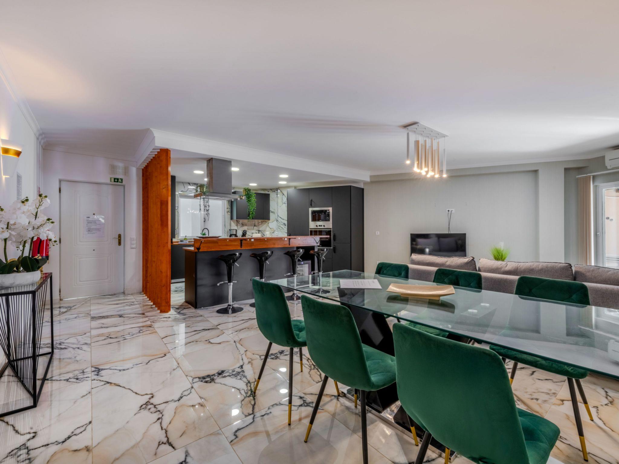 "T2 Cassias VIP Properties", 3-room apartment 106 m2. Very comfortable and cosy furnishings: lounge with cable TV, international TV channels, flat screen, air conditioning and forced-air heating. 1 room with 3 beds (90 cm, length 190 cm), air conditioning and forced-air heating. 1 room with 1 french bed (160 cm, length 200 cm), shower/bidet/WC, air conditioning and forced-air heating. Open kitchen (oven, dishwasher, 4 ceramic glass hob hotplates, toaster, kettle, microwave, freezer, electric coffee machine, Capsules for coffee machine (Dolce Gust not Incl.), cooking island). Shower/WC, hip bath/WC. Porch. Terrace furniture, barbecue, deck chairs (2), sitting area. View of the garden. Facilities: washing machine, iron, children's high chair, baby cot for up to 2 year olds (extra), hair dryer. Internet (WiFi, free). Suitable for families. 119239/AL