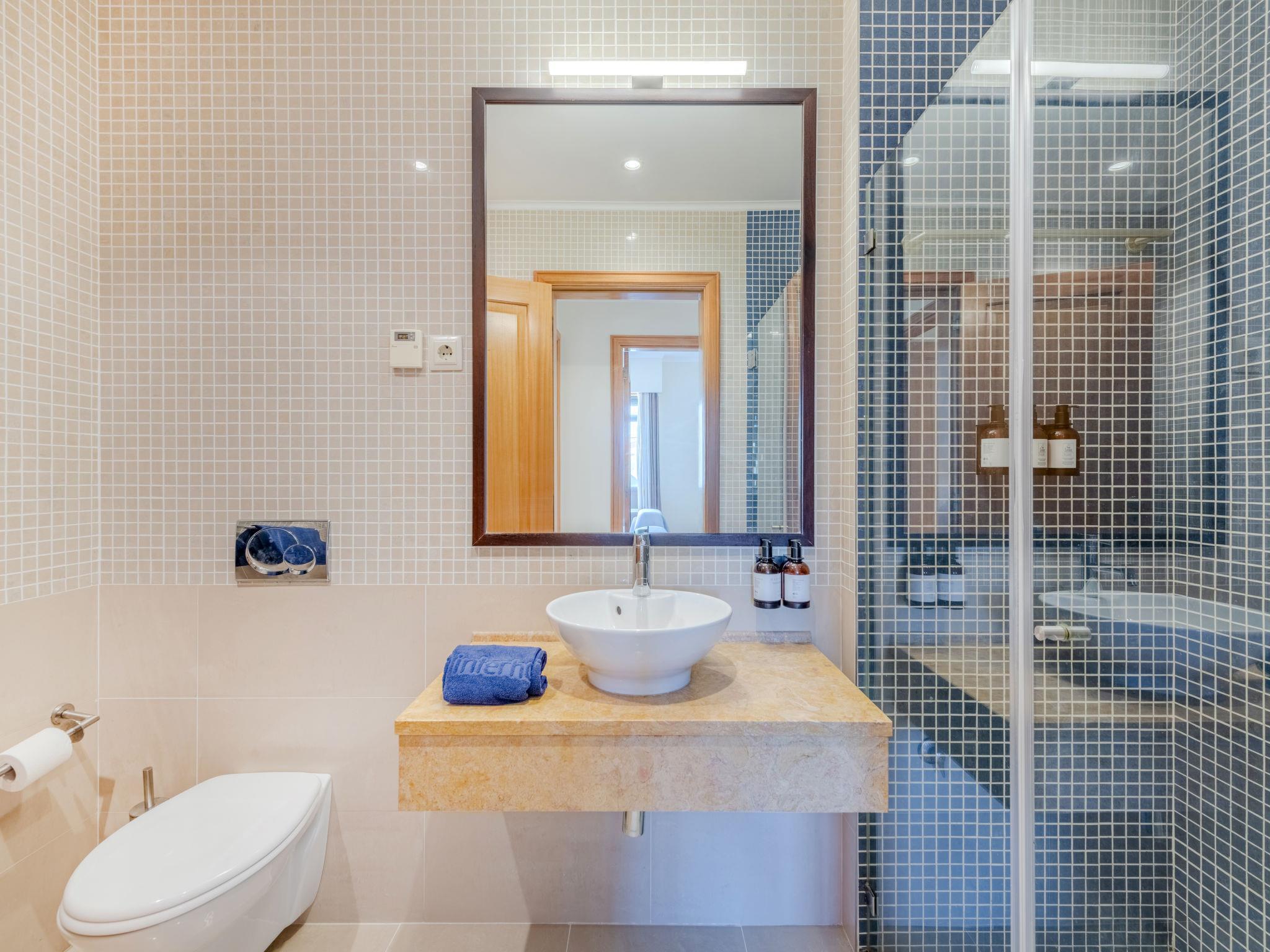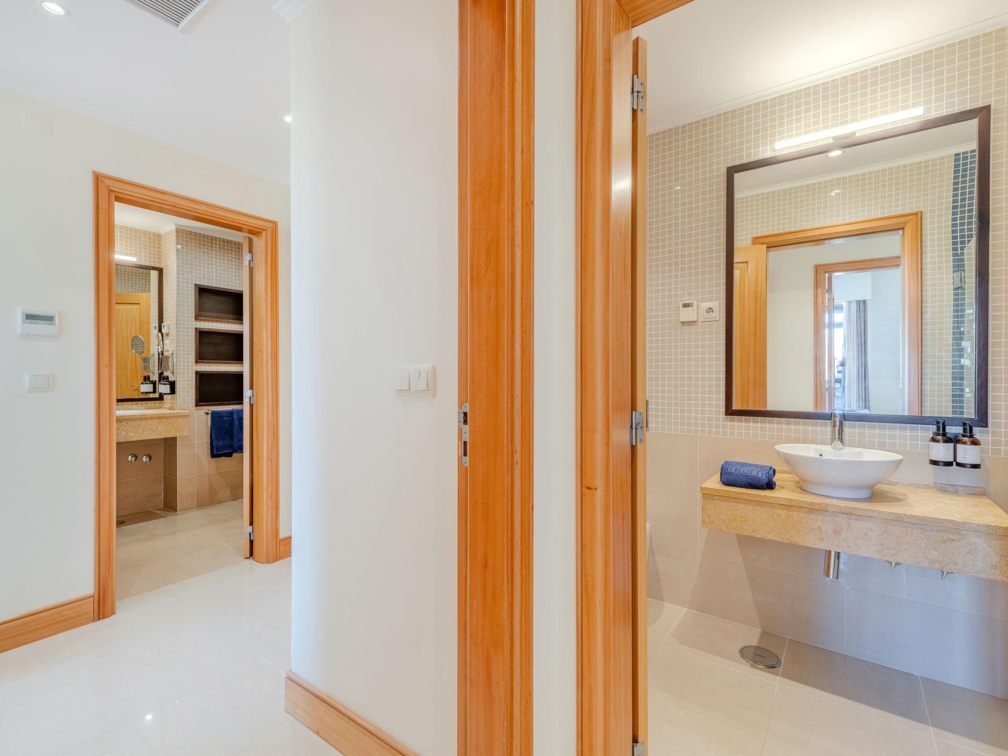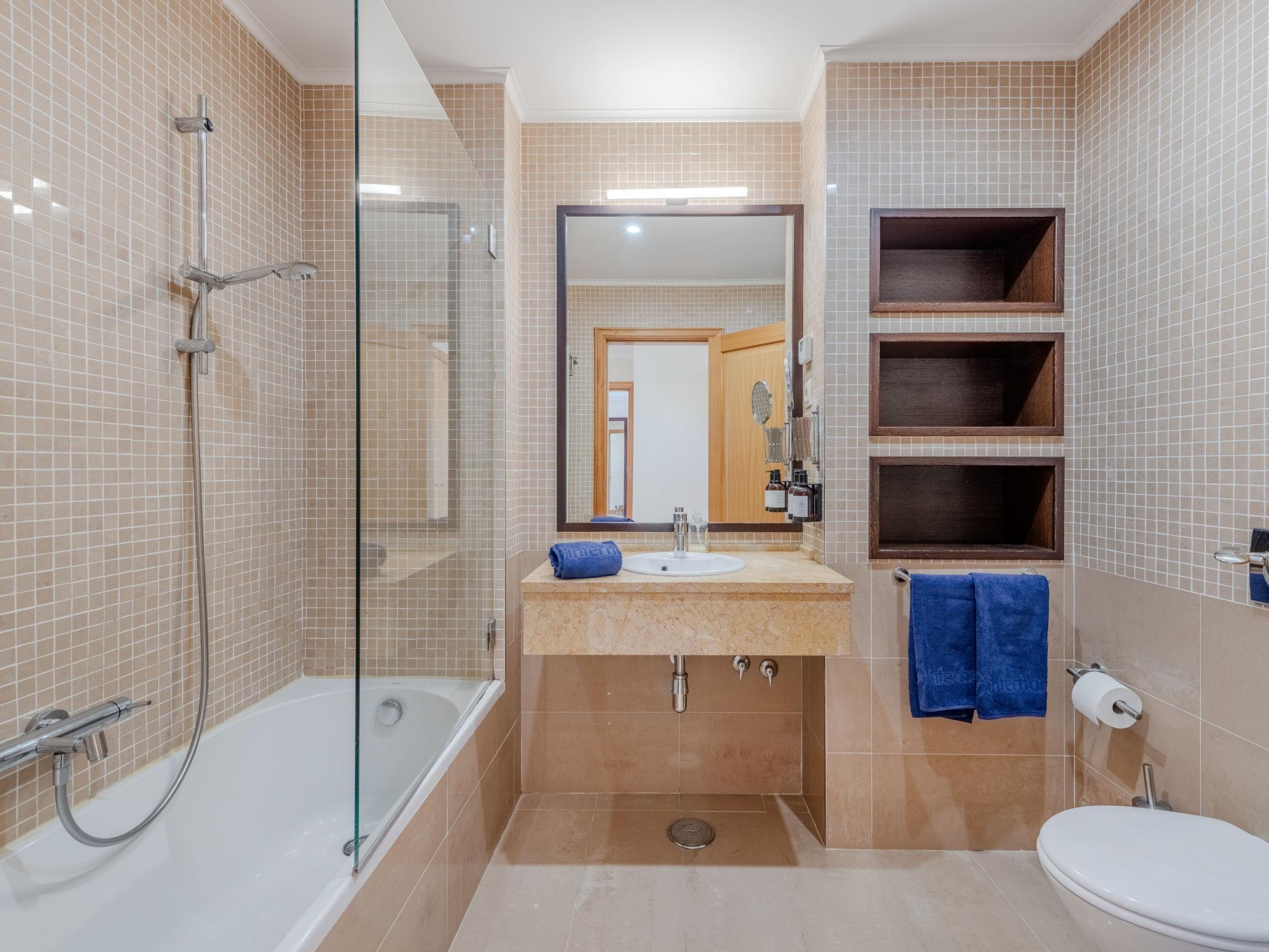 It has a heated indoor pool very beautiful, cosy apartment block "The Residence at Victoria", surrounded by trees and fields. In the resort 5 km from the centre of Vilamoura, residential area (villas), 5 km from the sea. For shared use: property (fenced), beautiful, well-kept garden plants and trees, swimming pool (seasonal availability: 01.Jan. - 31.Dec.). Unconventional pool shape. WC in the pool area, children's pool, outdoor shower. In the house: reception, bistro, fitness room, lift.