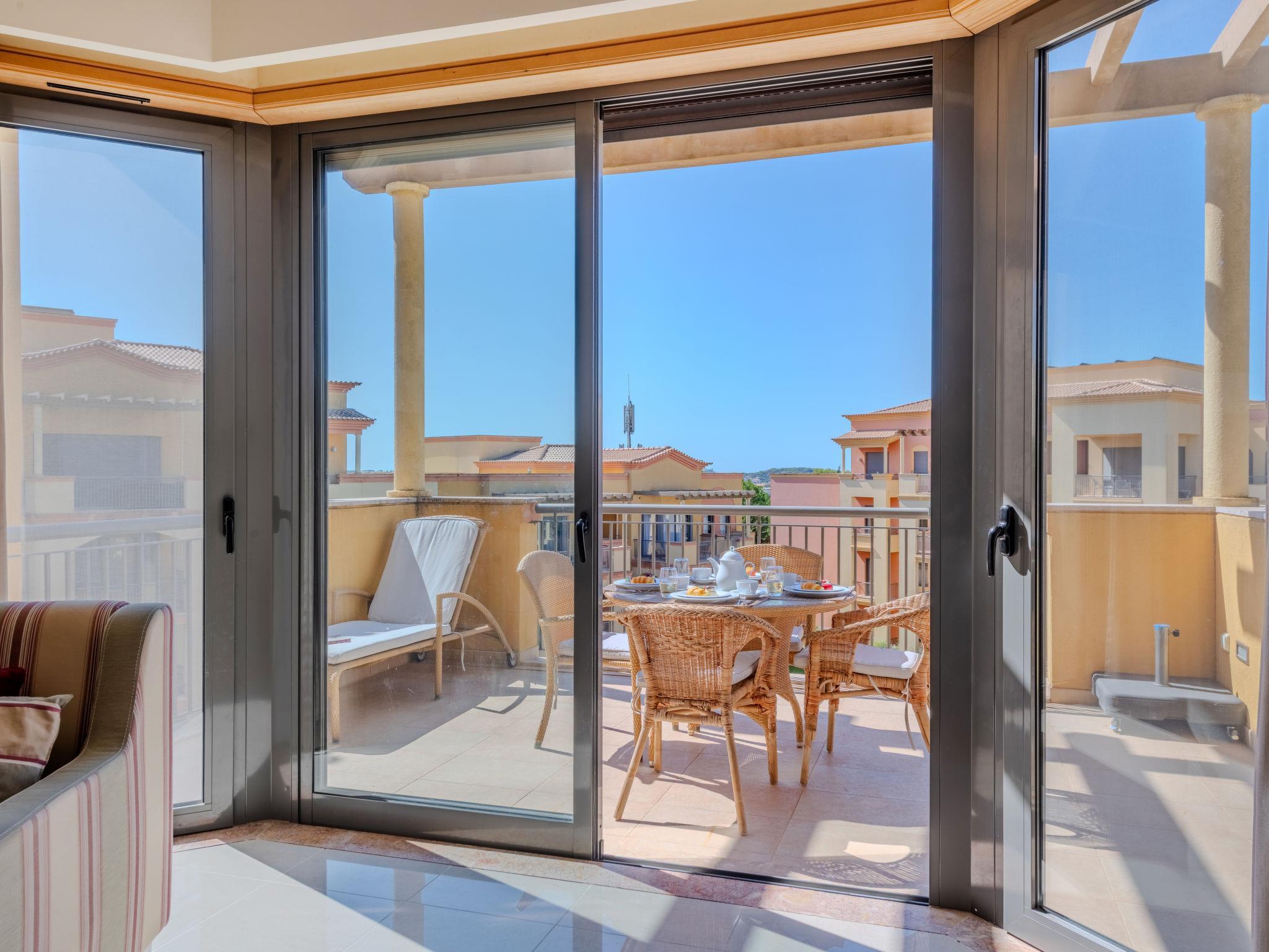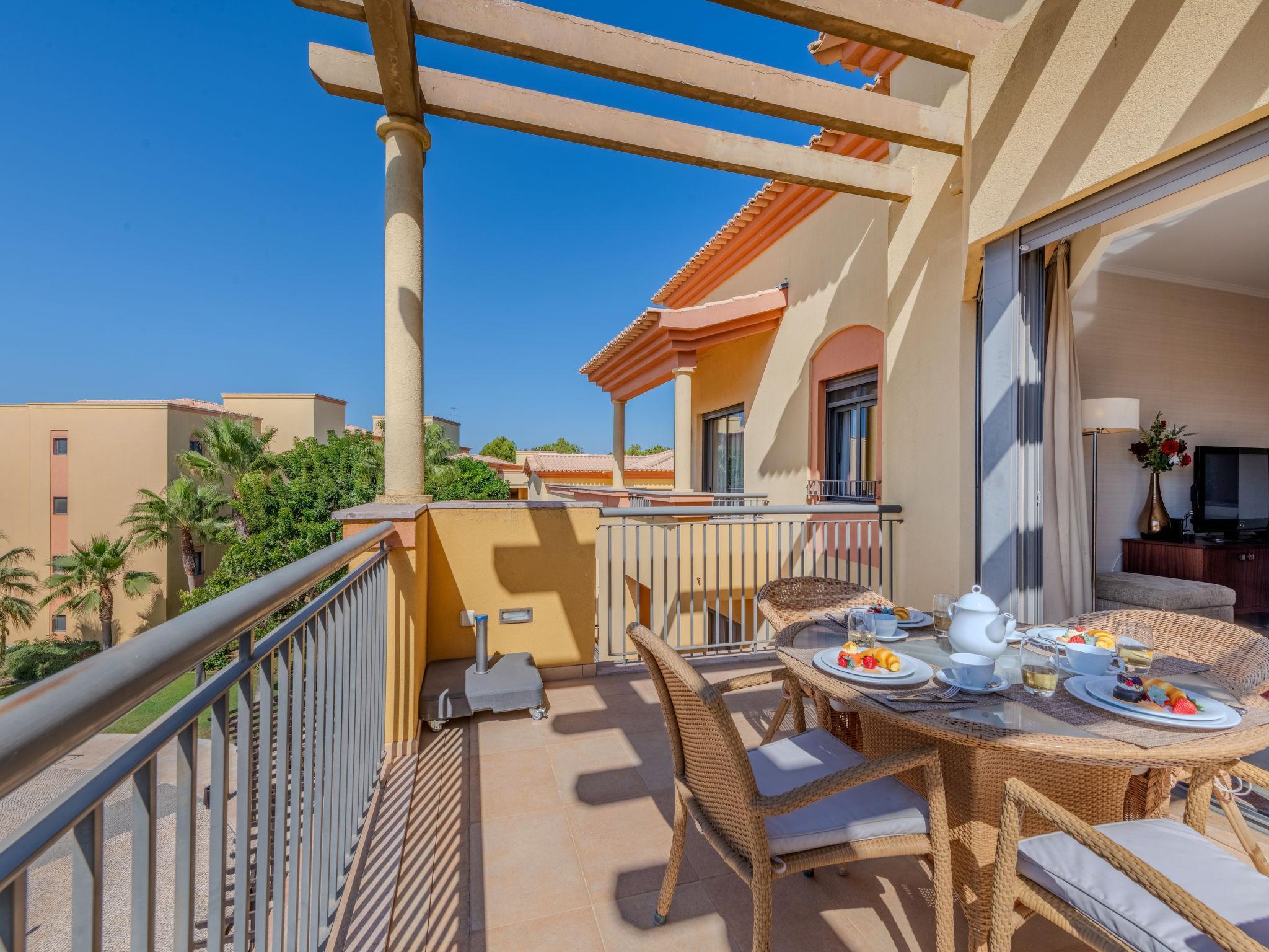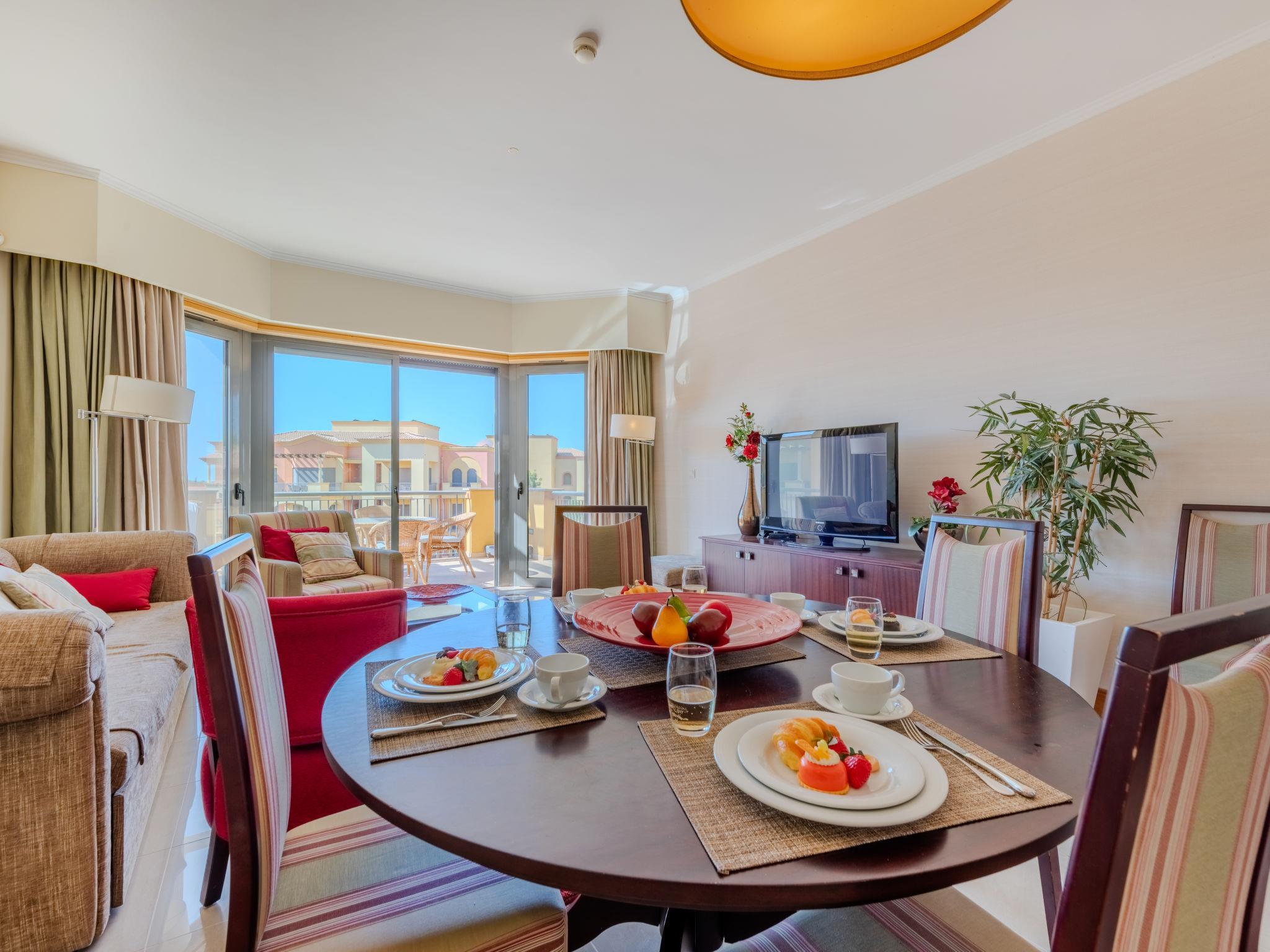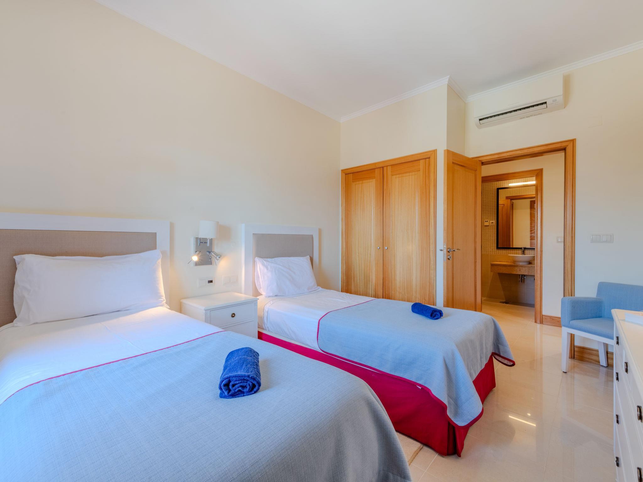 "The Residence at Victoria Clube de Golf", 3-room apartment 130 m2. Comfortable and beautiful furnishings: living/dining room with dining table, digital TV, flat screen, air conditioning and forced-air heating. Exit to the terrace. 1 room with 2 beds (90 cm, length 190 cm), air conditioning and forced-air heating. 1 room with 1 bed (140 cm, length 190 cm), bath/WC, air conditioning and forced-air heating. Kitchen (oven, dishwasher, 4 ceramic glass hob hotplates, toaster, kettle, microwave, electric coffee machine). Shower/WC. Terrace furniture, deck chairs (2). View of the garden. Facilities: washing machine, iron, children's high chair, baby cot, hair dryer. Internet (WiFi, free). Parking space n 103C (roofed, 1 car). Please note: suitable for families. Non-smokers only. Fire extinguisher. 157774/AL