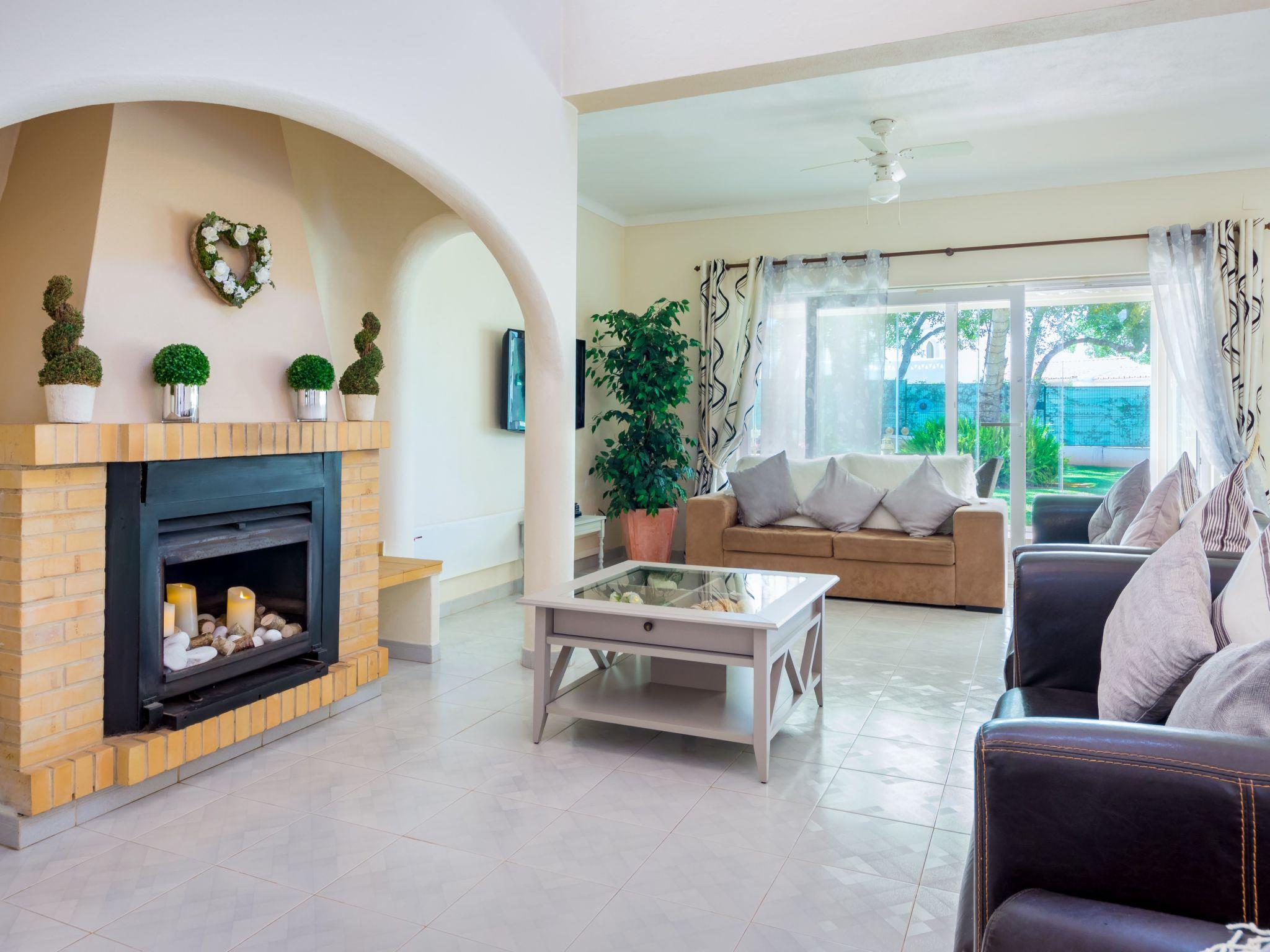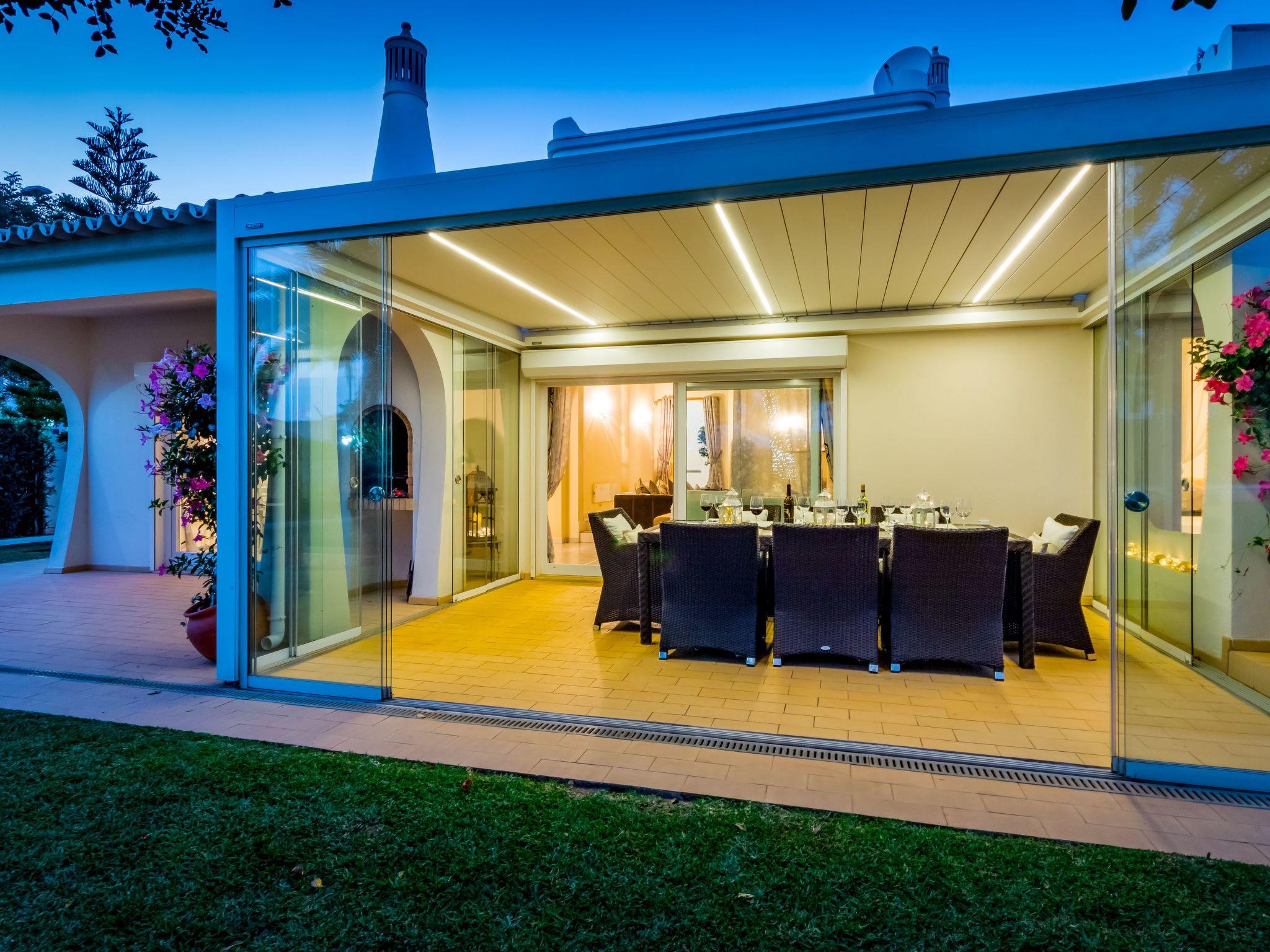 The Garden & Pool The garden is bathed in sunshine throughout the day but also has ample shaded areas provided by mature pine, palm and fruit trees. An outside bbq is provided to enhance the experience of outdoor living. The outdoor dining set can be located either in sunshine or in the shaded areas. Enjoy long lunches in the shade or linger under the trees over the last of the dinner wine as the evening cools down from the hot Algarve sun. A citrus grove provides oranges, lemons and limes. Flowering Geraniums and Bougainvillea complete the sunny ambiance. The garden lighting is set to enhance the evening from nine pm until midnight. A full size pool completes the fun in the sun. Lounge on the sunbeds provided with a cool drink for our wet bar or swim and splash into the refreshing pool to cool off. Our winter-sun offering is enhanced by a dual system heated pool. ( solar and electric powered)