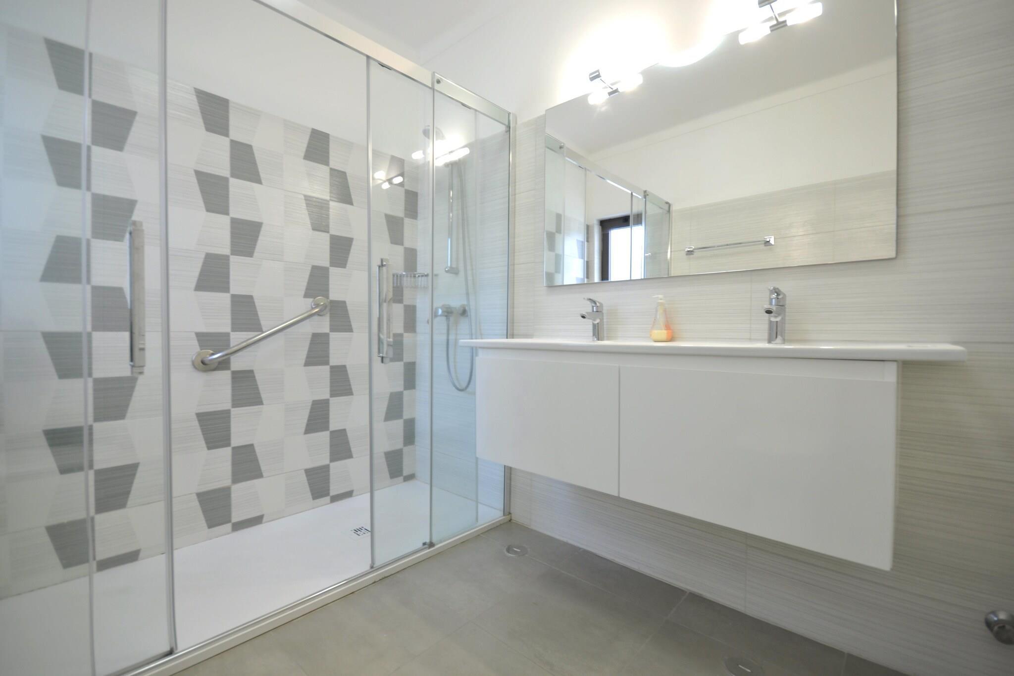 Stueetage: (Stue(Fjernsyn(kabel), sofahjørne, DVD-afspiller, klimaanlæg), spisestue(spisebord), Køkken(spisebord, elkedel, brødrister, komfur(glaskeramisk), kaffemaskine, ovn, mikrobølgeovn, opvaskemaskine , køle-fryseskab, vaskemaskine), Soveværelse med badeværelse(dobbeltseng, bruser, 2x håndvask, toilet, bidet, klimaanlæg), toilet) På 1. etage: (soveværelse(2x enkeltseng, klimaanlæg), soveværelse(2x enkeltseng, klimaanlæg), badeværelse(badekar med bruser, 2x håndvask, toilet, bidet), balkon) kakkelovn, badekar eller bruser, bruser, patio, terrasse(privat), tagterrasse, have(privat, indhegnet), havemøbler, solstole, grill, parkering, liggestole, Parasol, swimmingpool(privat, 7 x 5 m.), biljard, strygebræt