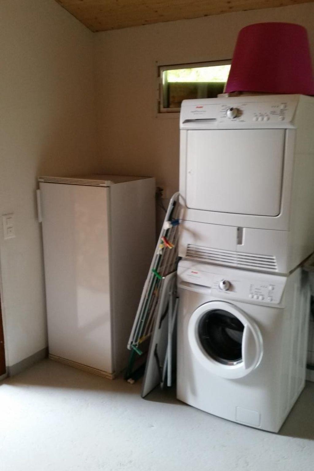 The garden leads to the interior, which comprises (in addition to the laundry room, which also serves as an atrium) two levels: the living room floor with a fully equipped open kitchen (kitchenette with four hotplates - plus two additional hotplates, oven, dishwasher, refrigerator - an additional, larger refrigerator with freezer compartment is available in the laundry room), lounge area (with TV and radio), two bathrooms (WC with bath/shower) and the sleeping floor with cloakroom and two bedrooms (one double and one with two bunk beds).