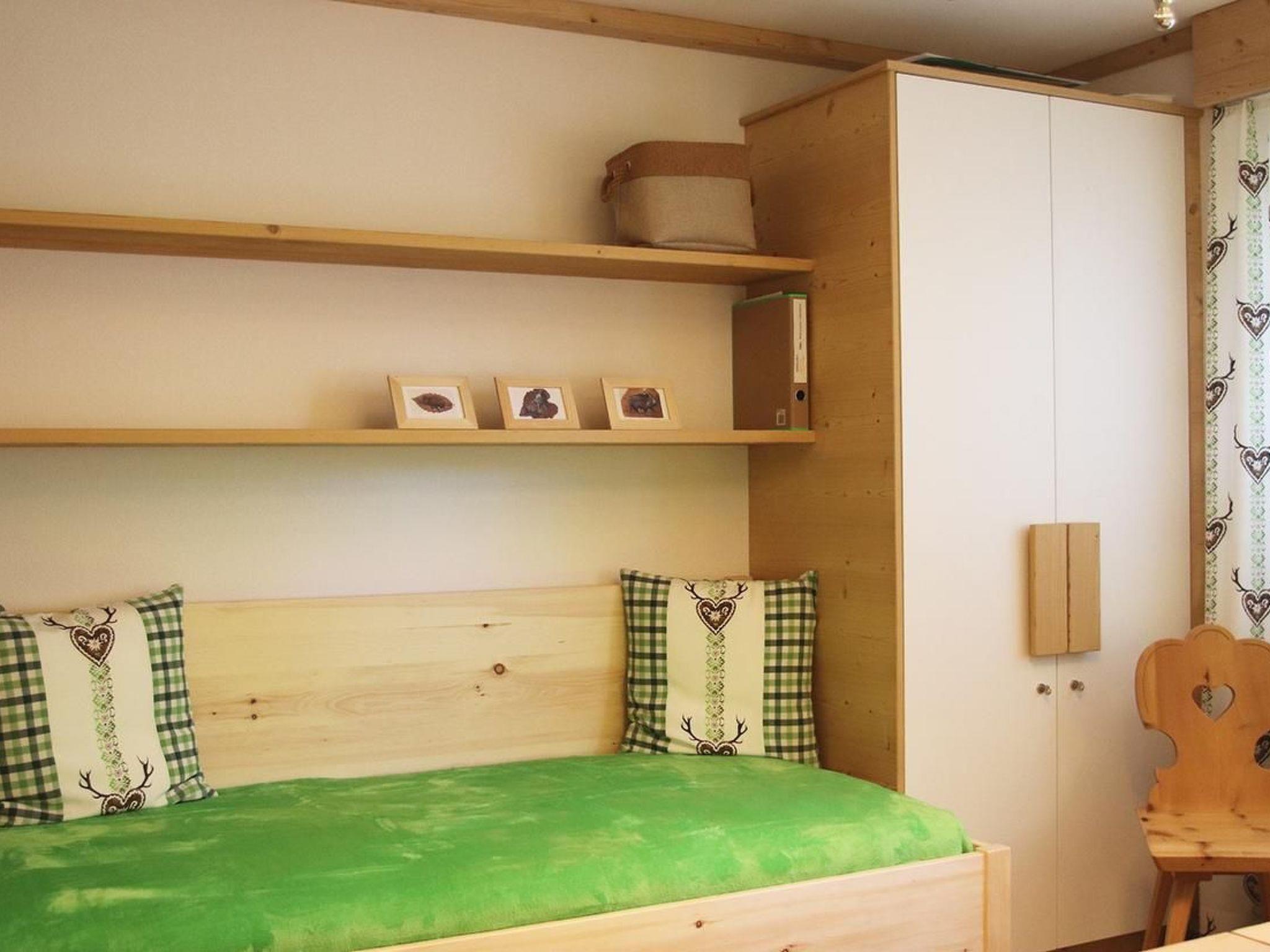 1 bedroom with double bed, 2 separate mattresses, built-in wardrobe, all in Swiss stone pine.