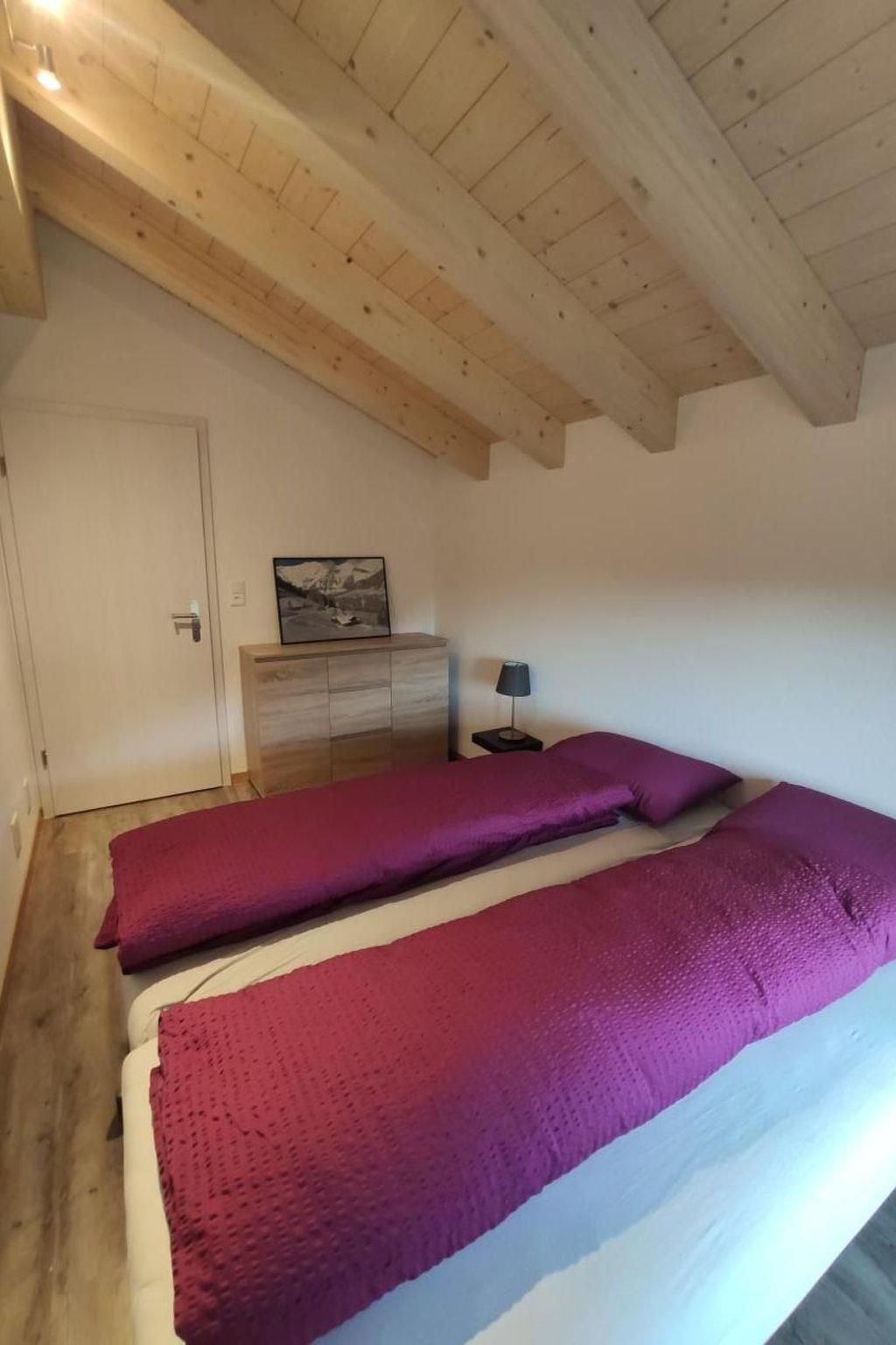 The interior of the flat on the first floor impresses with its spaciousness and can accommodate up to 10 people. After the complete renovation in summer 2022, you will want for nothing: free WLAN, Swisscom TV, a fully equipped kitchen with oven, coffee machine, dishwasher and even 2 raclette ovens and 2 fondue caquelons for cosy evenings. Three bedrooms with comfortable beds, a large bathroom with shower, a separate WC and, last but not least, a spacious cloakroom with a washing machine and a table football table complete the offer.