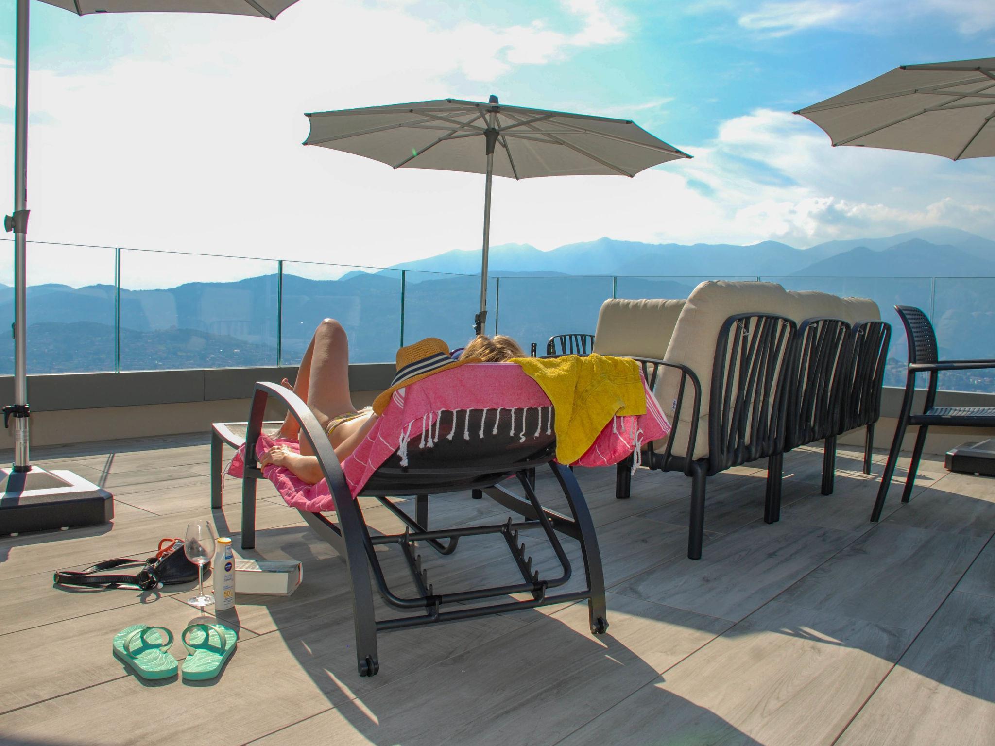 Aldesago 6 km from Lugano: Right in the middle of nature, on Mont Bré, is the comfortable apartment block "Residenza Monte Bré Aldesago". 34 apartments in the residence. Above Lugano, in a quiet, sunny position on a slope, 5 m from the edge of the forest, 4.4 km from the lake, in a cul-de-sac, in the countryside. For shared use: swimming pool angular heated (12 x 4 m, depth 154 - 160 cm, seasonal availability: 19.Apr. - 25.Oct.) with internal staircase. Outdoor shower, table tennis, terrace. In the house: central heating system, washing machine (for shared use). Motor access to the house (mountain road). Parking (extra) at the house. Grocery 6 km, shopping centre 12 km, bus stop "Bus Nr. 12" 200 m, railway station "Lugano SBB/FFS" 7.2 km, lake Lago di Lugano. Golf course (18 hole) 15 km, walking paths from the house 1 m. Nearby attractions: Gandria 5 km, Swiss Miniatur, Melide 13 km, Museum Hermann Hesse, Montagnola 11 km, Mercato Ponte Tresa, IT 17 km, Como 40 km. Well-known lakes can easily be reached: Lago di Lugano, Lago di Como, Lago Maggiore. Hiking paths: Monte Tamaro, San Salvatore-Carona-Parco san Grato, Alpe Vicania-Morcote. Please note: car recommended. Suitable for seniors. Additional accommodations can be booked. Property ref. CH6974.102 is situated on the same property. Partial view of Lugano. "Utoring-Aldesago" cable car at 50m. Elevator only in Building II. Covered parking outside: CHF 10.00/day. Uncovered parking: CHF 7.00/day., reservation upon arrival. WLAN around the reception. Public transport (bus and cable car) to Lugno every 30min.