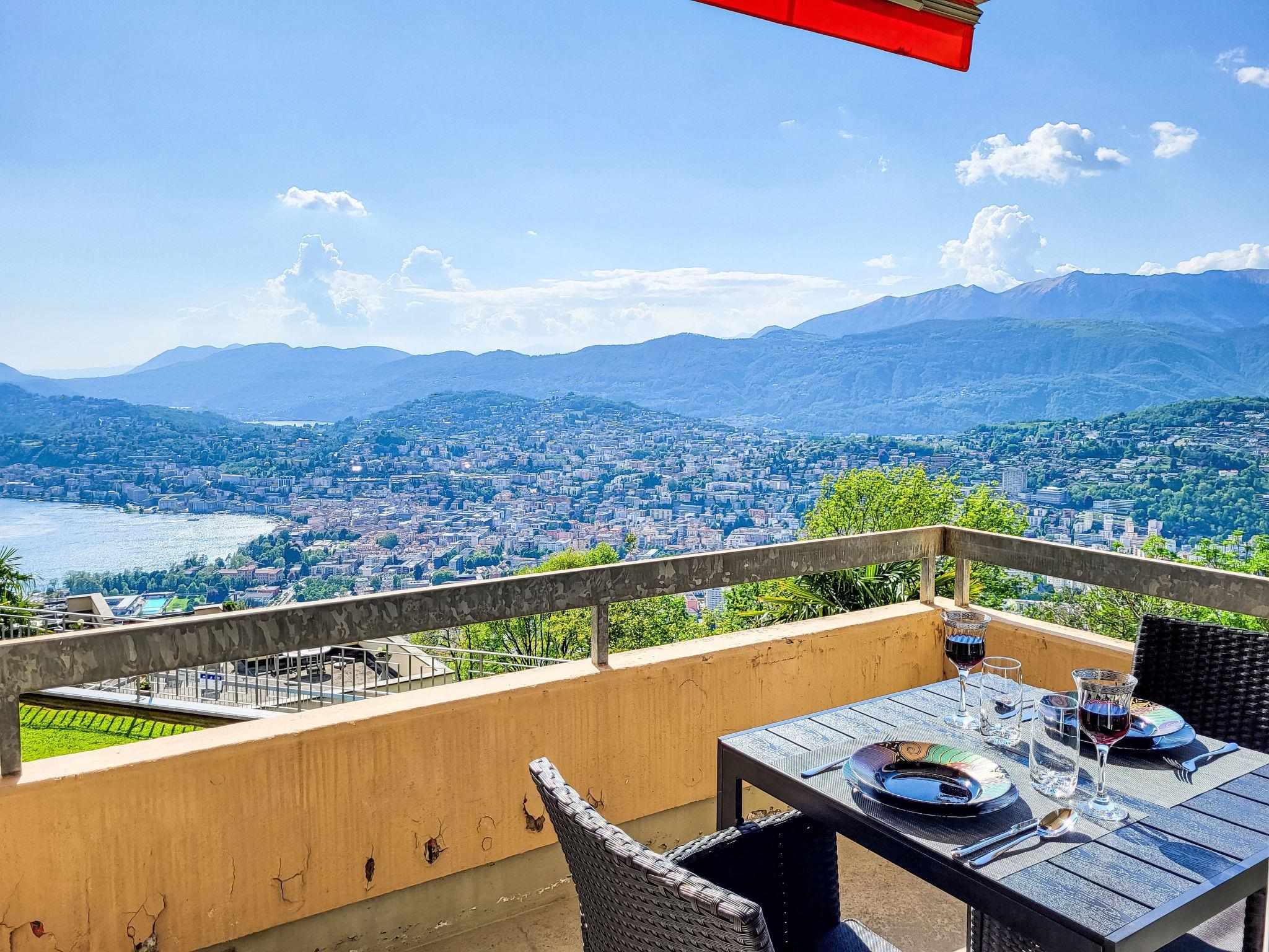 Aldesago 6 km from Lugano: Right in the middle of nature, on Mont Bré, is the comfortable apartment block "Residenza Monte Bré Aldesago". 34 apartments in the residence. Above Lugano, in a quiet, sunny position on a slope, 5 m from the edge of the forest, 4.4 km from the lake, in a cul-de-sac, in the countryside. For shared use: swimming pool angular heated (12 x 4 m, depth 154 - 160 cm, seasonal availability: 19.Apr. - 25.Oct.) with internal staircase. Outdoor shower, table tennis, terrace. In the house: central heating system, washing machine (for shared use). Motor access to the house (mountain road). Parking (extra) at the house. Grocery 6 km, shopping centre 12 km, bus stop "Bus Nr. 12" 200 m, railway station "Lugano SBB/FFS" 7.2 km, lake Lago di Lugano. Golf course (18 hole) 15 km, walking paths from the house 1 m. Nearby attractions: Gandria 5 km, Swiss Miniatur, Melide 13 km, Museum Hermann Hesse, Montagnola 11 km, Mercato Ponte Tresa, IT 17 km, Como 40 km. Well-known lakes can easily be reached: Lago di Lugano, Lago di Como, Lago Maggiore. Hiking paths: Monte Tamaro, San Salvatore-Carona-Parco san Grato, Alpe Vicania-Morcote. Please note: car recommended. Suitable for seniors. Additional accommodations can be booked. Property ref. CH6974.102 is situated on the same property. Partial view of Lugano. "Utoring-Aldesago" cable car at 50m. Elevator only in Building II. Covered parking outside: CHF 10.00/day. Uncovered parking: CHF 7.00/day., reservation upon arrival. WLAN around the reception. Public transport (bus and cable car) to Lugno every 30min.