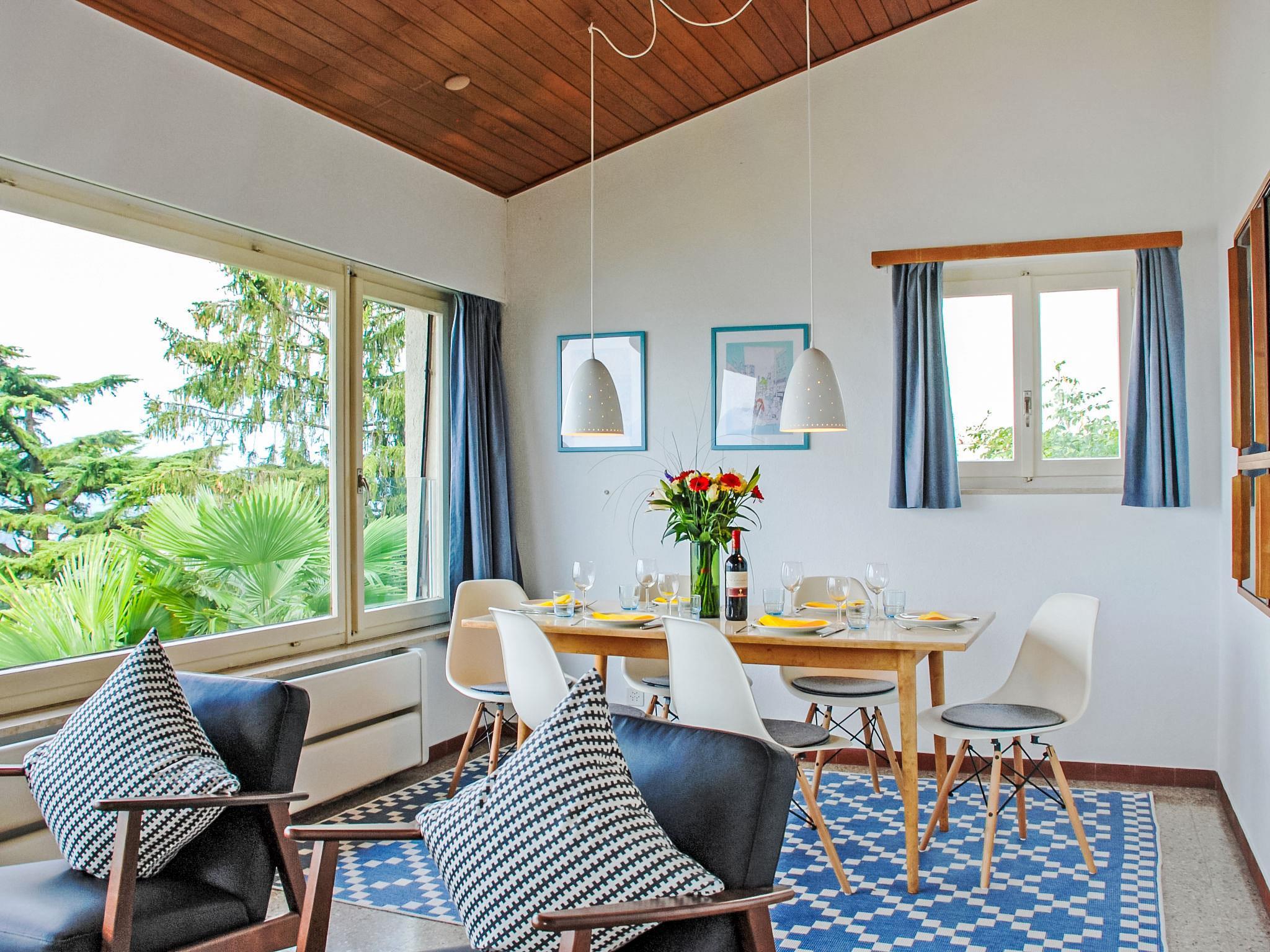"Nido di Rondine", 4-room house 85 m2 on 3 levels. Spacious and bright, comfortable and cosy furnishings: living/dining room with panoramic window with dining table and satellite TV (flat screen), radio and electric heating. Small kitchen (oven, dishwasher, 4 ceramic glass hob hotplates, toaster, microwave, freezer, electric coffee machine, Capsules for coffee machine (Filter) extra) with hatch. Shower/WC. Underfloor heating. On the lower ground floor: 1 double bedroom with 1 double bed (2 x 90 cm, length 200 cm). 1 room with 1 french bed (140 cm, length 200 cm). Upper floor: 1 small children's room with 1 x 2 bunk beds (90 cm, length 190 cm). 2 large terraces partly covered, south facing position and west facing position. Terrace furniture, barbecue (portable), deck chairs (5). Marvellous panoramic view of the lake, the mountains, the countryside and the city. Facilities: washing machine, iron, children's high chair, baby cot for up to 2 year olds (extra), hair dryer. Internet (WiFi, free). Parking at the house. E-charging station. Please note: non-smoking house. Maximum 1 small pet/ dog allowed. Smoke alarm, fire extinguisher. NL-00006859