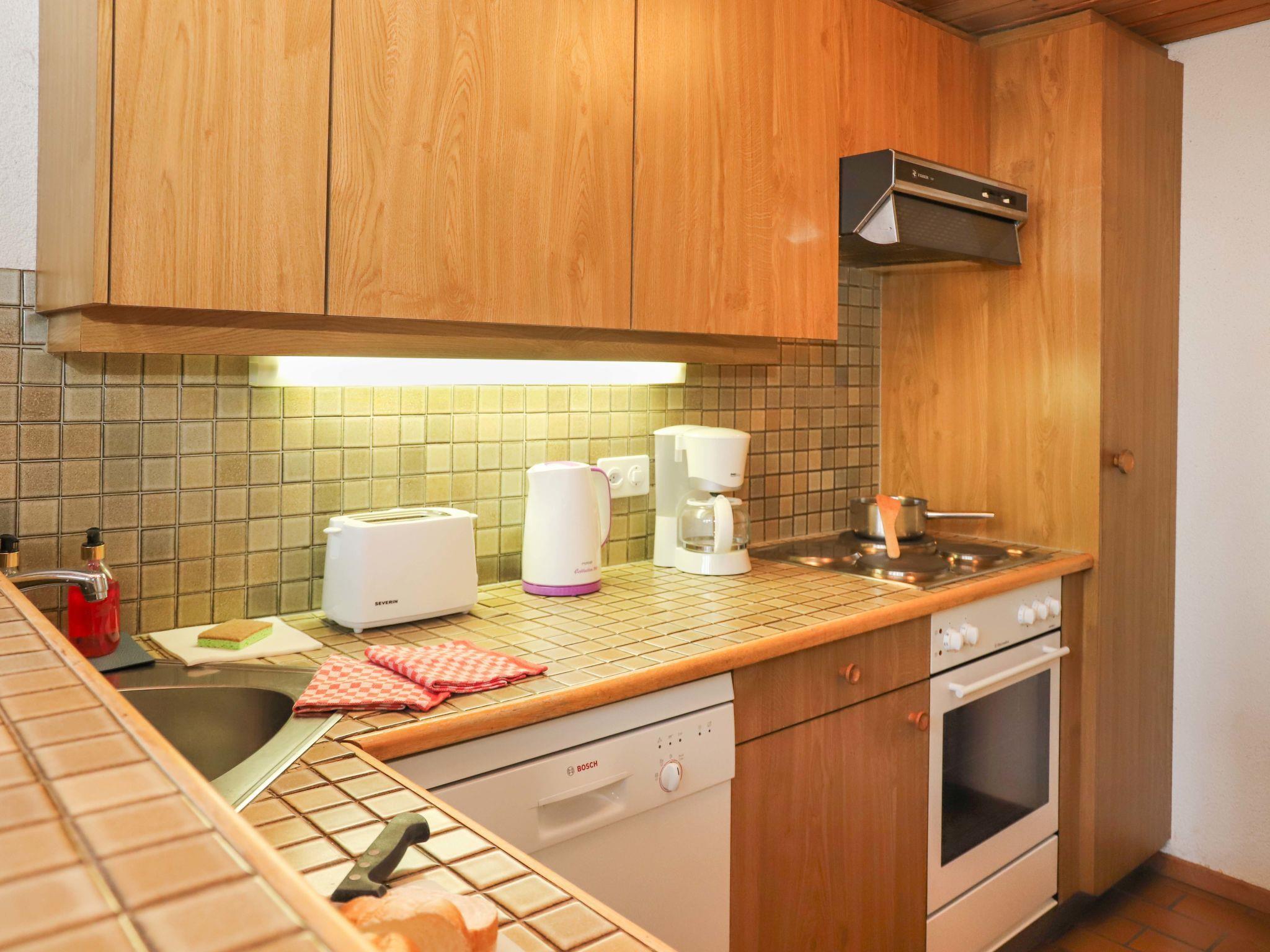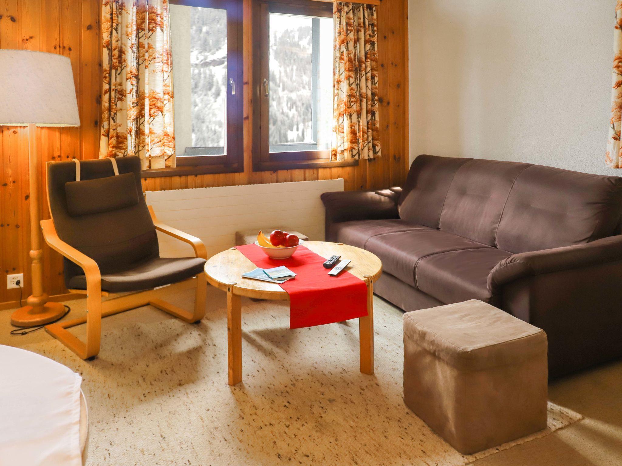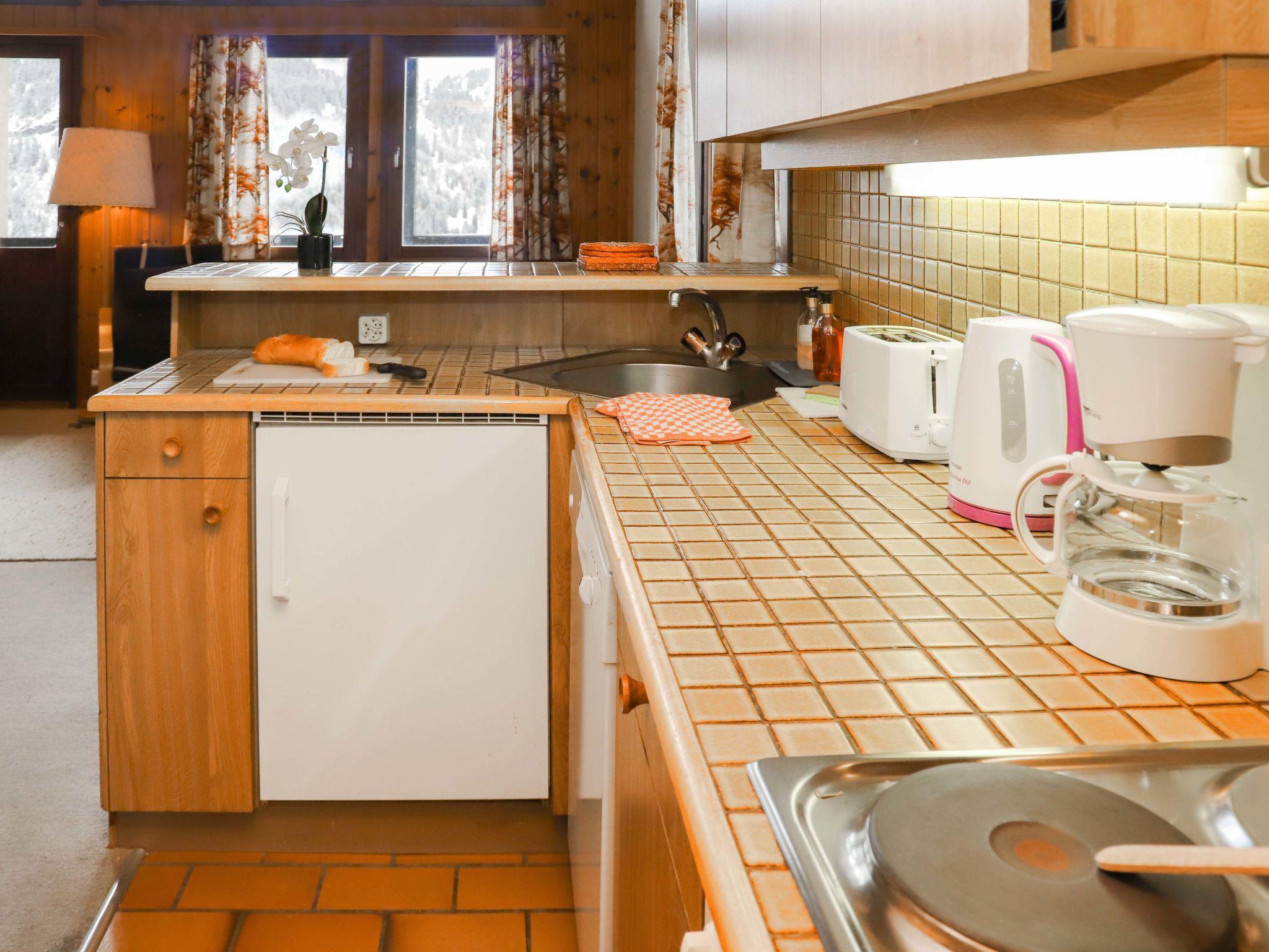 "Les Arsets 301/11", 3-room apartment 65 m2 on 2 levels on 1st floor, south facing position. Practical furnishings: living/dining room with open-hearth fireplace and TV (flat screen). Exit to the balcony. 1 room with 2 beds. Small, open kitchen (3 hot plates, oven, dishwasher, toaster, kettle, electric coffee machine, raclette grill). Bath/WC. Upper floor: open gallery with 1 sofabed (80 cm, length 190 cm). 1 room with 1 french bed and hand-basin. Balcony, south facing position. Terrace furniture. View of the countryside. Facilities: hair dryer. Internet (WiFi, free). Parking space n 10 (roofed). Please note: fridge without freezer. Instead of an enclosed bedroom, some sleeping areas are located in an open-plan area (gallery, alcove, etc.).