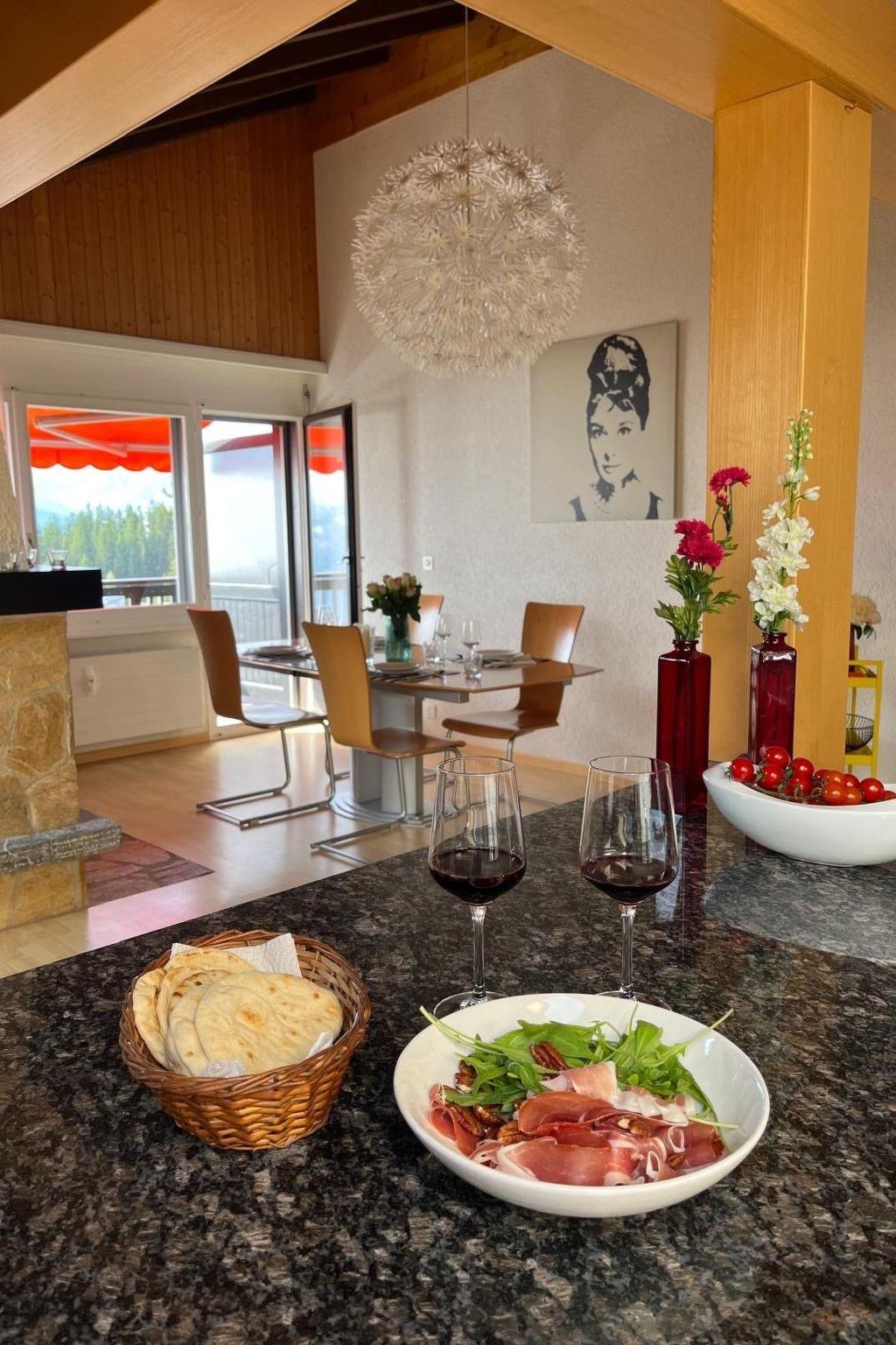 Relax in our cozy 2.5 room apartment in the heart of Montana. The modern and well-equipped kitchen is perfect for cooking and enjoying evenings together.