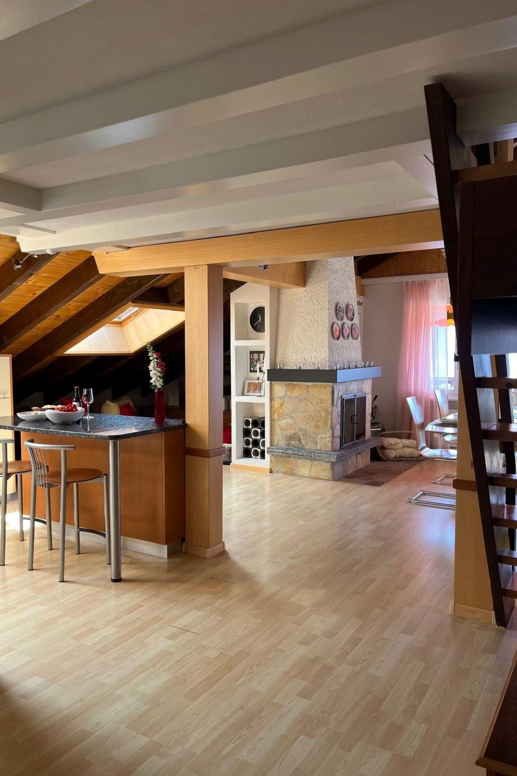 Parking is available right in front of the accommodation. The apartment features a room with a double bed, 2 beds on the gallery, 2 balconies, washing machine, dryer, oven, combination steamer,