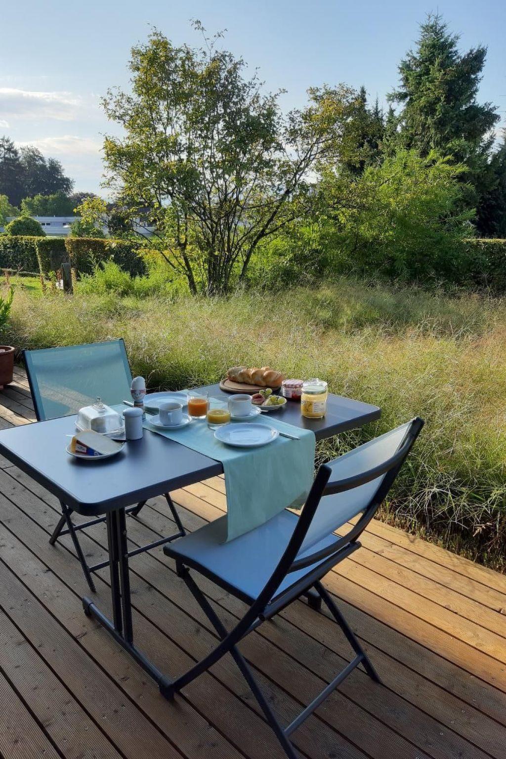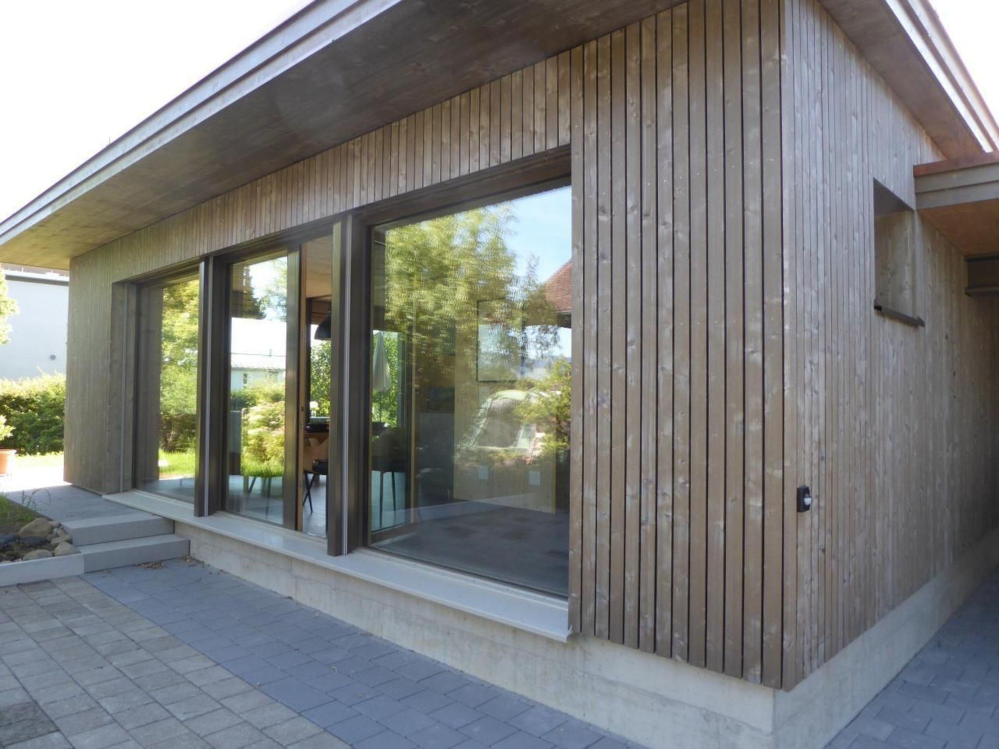 The new, detached bungalow, 45 m², is located in a quiet neighbourhood of detached houses in Arbon. The lake, shops and the historic old town are approx. 15 minutes' walk away. The public transport connections are ideal: 700 m to Seemoosriet railway station, 200 m to the nearest bus station with a direct connection to St.Gallen. The free car park right next to the bungalow is also ideal for those arriving by car. The bright bungalow has two large window fronts facing east and south, which create transparency and expanse towards the garden. The natural building materials, locally sourced wood and natural stone floors, contribute to the feel-good atmosphere. On the large seating area you can enjoy the sun from morning to evening, parasol and sun loungers available. The bedroom is furnished with a double bed (180 x 200). From the sofa bed (140x200) in the living room you can enjoy a marvellous view of the greenery, an additional folding bed is available. The fully equipped kitchen has an oven, hob, Nespresso machine and toaster. Right next to the large window is the cosy dining area. W-Lan and TV are available. The modern bathroom has a washbasin, shower and WC. You can store your own bicycles. Two bicycles are provided free of charge. Arbon is an ideal holiday location. Two pools on the lake invite you to swim. Various unique museums are located here (Saurer Museum, Möhl Most Museum, etc.). Various Swiss towns and the German shore can be reached by boat from Arbon harbour. The Lake Constance cycle path passes almost on the doorstep. Appenzellerland and Alpstein are also within easy reach. The landlords are happy to provide tips for excursions, hikes and cycle tours, and children are also well catered for with toys such as a wooden railway, books, card games, dominoes etc.