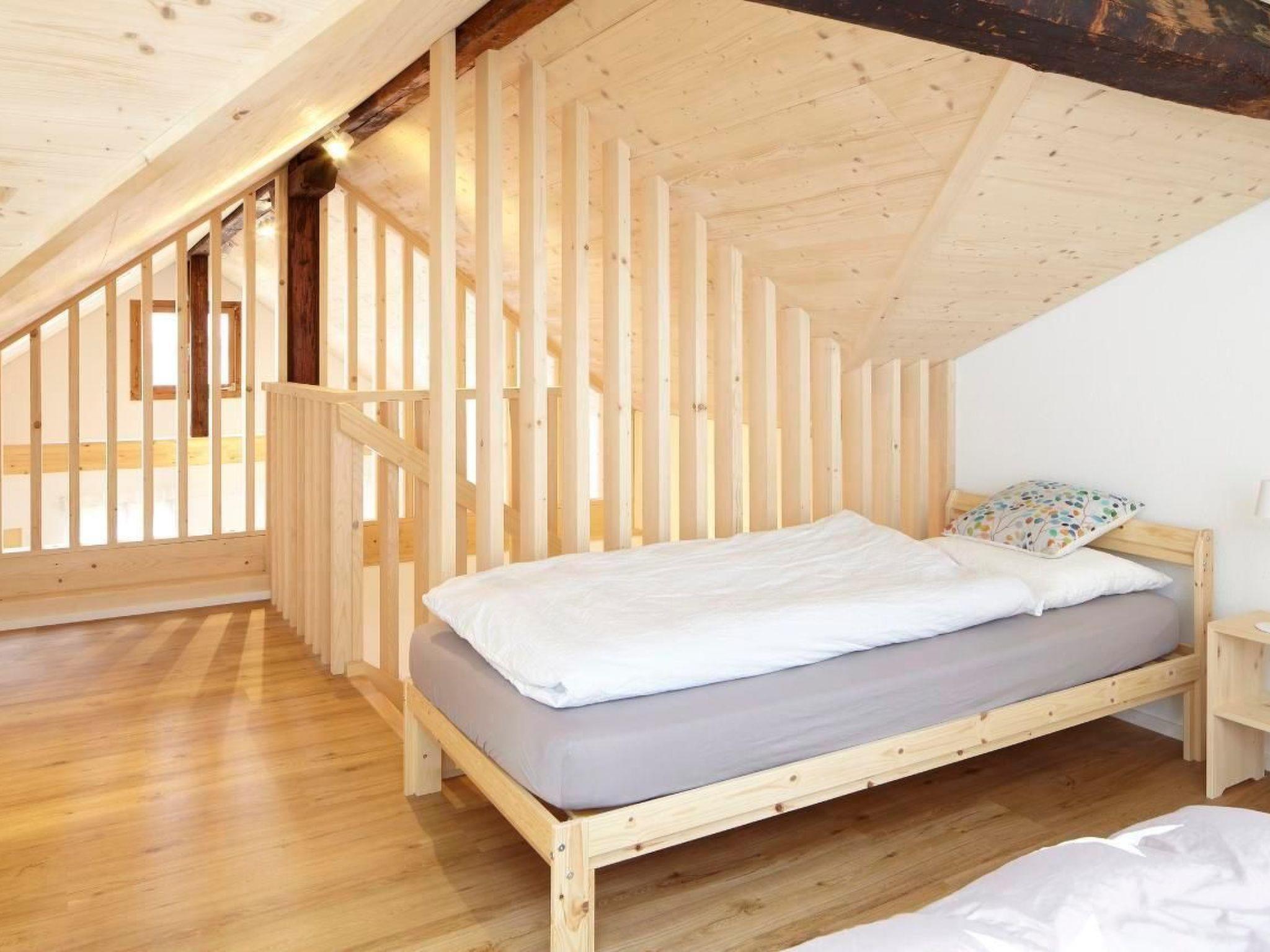 The 3 ½-room flat has two sleeping areas spread over two floors, an area with kitchen, dining and living room and a bathroom with walk-in shower. The kitchen has a hot-air/microwave oven, a 4-burner induction hob, a large fridge and a dishwasher. Pans, pots, kettle, sufficient crockery and a Nespresso coffee machine including coffee capsules are available, as well as spices, oil, pasta and the essentials for cooking. A raclette oven and cheese fondue caquelon are also available for use. The flat has storage rooms and a cellar where bicycles, skis, sledges etc. can be stored. There is also a reserved free car park 3 minutes from the house. The house also has a cosy garden seating area.
