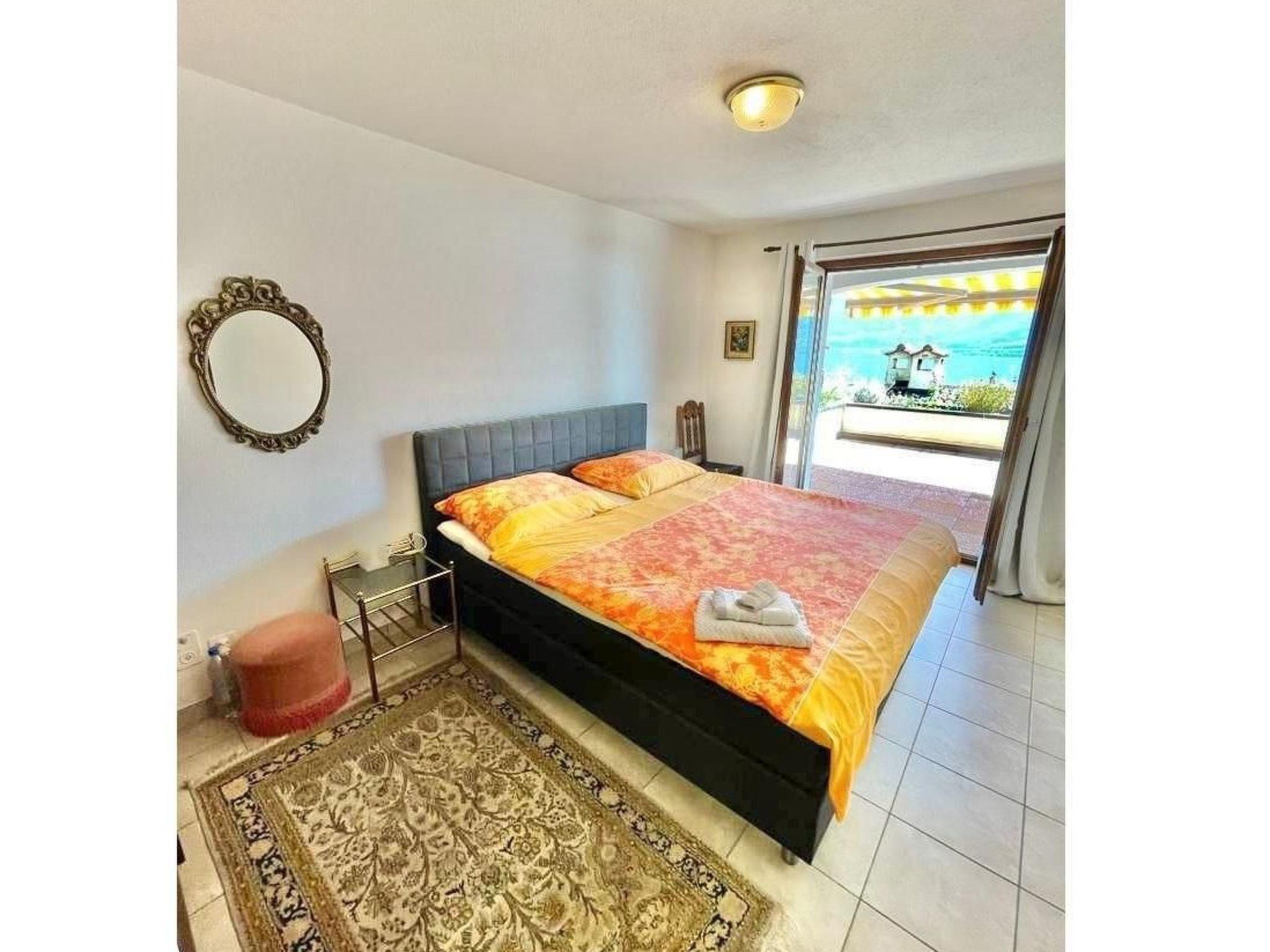 Unique: Your advantages - Simple - Cosy - Quiet - Family-friendly with a wonderful lake view - Large terrace with a wonderful panoramic lake view of Lake Maggiore and the surrounding mountains- Sunny, slightly elevated location in the middle of Brissago- Indoor swimming pool and sauna in the building- Underground car park with private parking space number "C" right next to the lift to the flat on the 4th floor. The bus stop and the boat landing stage with connections to the Brissago Islands, Ascona, Locarno and Italy are only approx. 100 metres from the flat.Information about the flat unit-------------------------------------------------------This charming and comfortably furnished 2.5 room flat with its large furnished terrace and wonderful view of Lake Maggiore is only approx. 150 metres from the beautiful lake promenade. The flat is centrally located in the middle of Brissago above the main street and is suitable for a maximum of 4 people.The flat can be easily reached from the underground car park via a lift.The flat is divided as follows: Entrance area with wall cupboard, large living and dining area with open-plan, well-equipped kitchen. The living area also has two single beds. A bedroom with a box spring double bed with bathroom and WC as well as an additional guest WC in the entrance area.The terrace can be accessed from both the living room and the bedroom.An indoor swimming pool with terrace and a sauna as well as a private underground parking space number "C" are available to guests.A shared laundry room with washing machine and tumble dryer is also available on request and is chargeable on site.The cosy furnishings and central location offer the best conditions for wonderfully relaxing holidays.Brissago and surroundings-------------------------------------The village centre with its shops, post office, bank, restaurants, cafés, etc. is just a few minutes' walk from the holiday flat, as are the bus stop and the boat landing stage from where you have connections to the Brissago islands, Ascona, Locarno and the Riviera del Gambarogno opposite, as well as to all other boat landing stages in Italy such as Cannobio, Stresa, etc.. The Lido of Brissago is also just a few minutes' walk away. The lido with lake access, swimming pool, water slide and restaurant is very well maintained and family-friendly. At 75 metres long, the water slide is the longest in Ticino. This lido is well worth a visit. The neighbouring border town of Cannobio, where the famous Mercato takes place on Sundays, is only a few kilometres away. The Ticino valleys of Valle Maggia, Valle Verzasca and Centovalli can also be easily reached by car from here, and other activities and experiences in the region include:- Camelie Park Locarno, Moon & Stars Festival, Locarno Film Festival, Jazz Ascona, etc. - Sports activities such as: Mountain biking, bike tours, swimming, tennis, hiking, water sports, etc.Details of the flat unit-------------------------------------------- 2.5 room flat, 4th floor (lift)- For a maximum of 4 people- Panoramic view of the lake and mountains- Spacious terrace with great lake view, furnished with table and 4 chairs and 2 loungers, clothes rack and flower troughs- Bright living and dining room with panoramic windows and exit to the terrace- Two sofas ( 3 ER and 2.5 ER) and salon - dining table with 4 chairs - 1 children's chair - satellite TV - two single beds (90 cm x 200 cm) with bedside table and chair in the living area - 1 bedroom with box spring double bed (180 cm x 200 cm), 2 bedside tables, wardrobe, mirror, 1 stool and 1 chair - the bedroom also has an exit to the terrace. 1 bathroom with bathtub/shower with washbasin and WC with access to the bedroom. A hair dryer and bathroom scales are also available. - 1 separate guest toilet with washbasin in the entrance area of the apartment- Small well-equipped kitchen with:- Ceramic hob with hot air/convection oven- Refrigerator with small freezer compartment- Dishwasher- Nespresso coffee machine, please bring your own capsules- 1 private parking space no. "C" in the underground car park in the house directly next to the lift to the apartment- Indoor swimming pool and sauna in the house for shared use- Starter kit: soap/gel, toilet paper, washing tab for dishwasher and waste bag is provided.