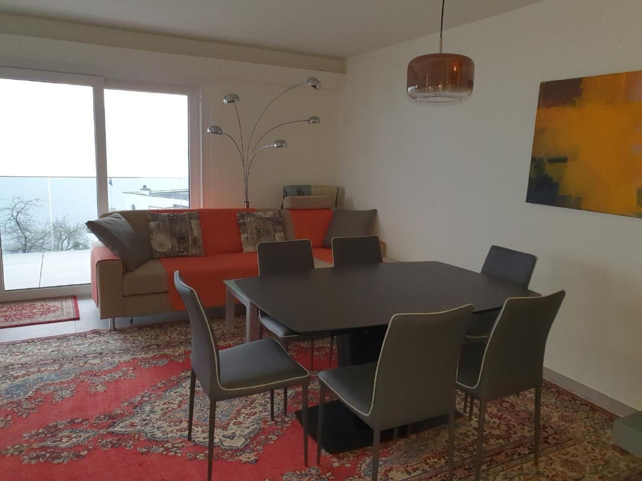 The 2.5 room flat consists of an entrance hall with cloakroom, a bright living/dining room with dining table and a cosy sofa as well as panoramic windows and access to the spacious balcony. The separate kitchen is fully equipped, the bedroom has a box-spring bed in mint condition and also has access to the balcony. The flat also has a large bathroom and a guest toilet. The newly renovated Modasa residence is situated on a hillside with a wonderful view of the lake and across Brissago Island to Ascona. The village centre with its shops, post office, bank, restaurants and cafés can be reached in a few minutes via a comfortable stairway, as can the boat landing stage from where you have connections to the Brissago Islands, Ascona and the Riviera del Gambarogno opposite.Brissago can be easily reached from Locarno by bus and, during the season, also by boat. Picturesque Ascona and the neighbouring border town of Cannobio, where the famous Mercato takes place on Sundays, are only a few kilometres away. The Ticino valleys of Valle Maggia, Valle Verzasca and the Centovalli can also be easily reached by car from here. 2.5 rooms, 1 floor (lift)- 4 adults or 2 adults 2 children- furnished balcony- panoramic view of the lake and surroundings- bright living-dining room with panoramic window- dining table with chairs- radio/TV- WLAN- electric fireplace- 1 bedroom with box spring bed (two mattresses)- folding bed in the living room- bathroom/WC- separate WC- fully equipped kitchen- ceramic hob- oven- fridge- dishwasher- Delizio coffee machine- electric grill- reserved parking space- pets (none)- central heating