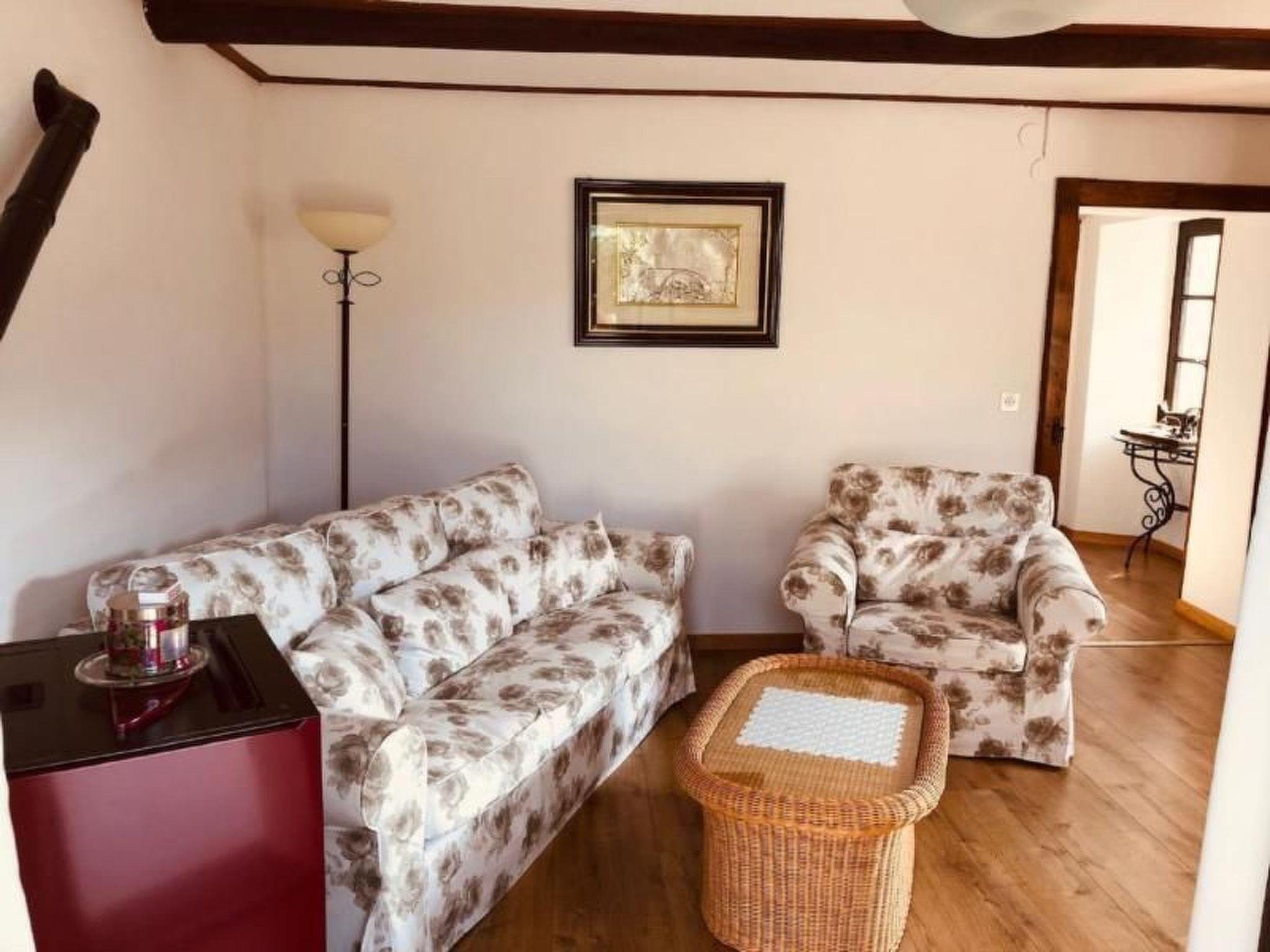 The interior of the house features an eat-in kitchen equipped with all modern conveniences, including a refrigerator/freezer, hot air oven, electric cooker, and other small appliances essential to daily life such as a slicer, coffee pod machine, kettle and toaster, all enhanced by a traditional wood-burning fireplace. The carefully decorated living room offers a cosy sofa, television and a pellet stove, perfect for relaxing evenings, while the recently renovated bathroom has all the necessary amenities including a spacious shower. Three spacious bedrooms can accommodate up to six people plus a small child, providing space and comfort for the whole family.