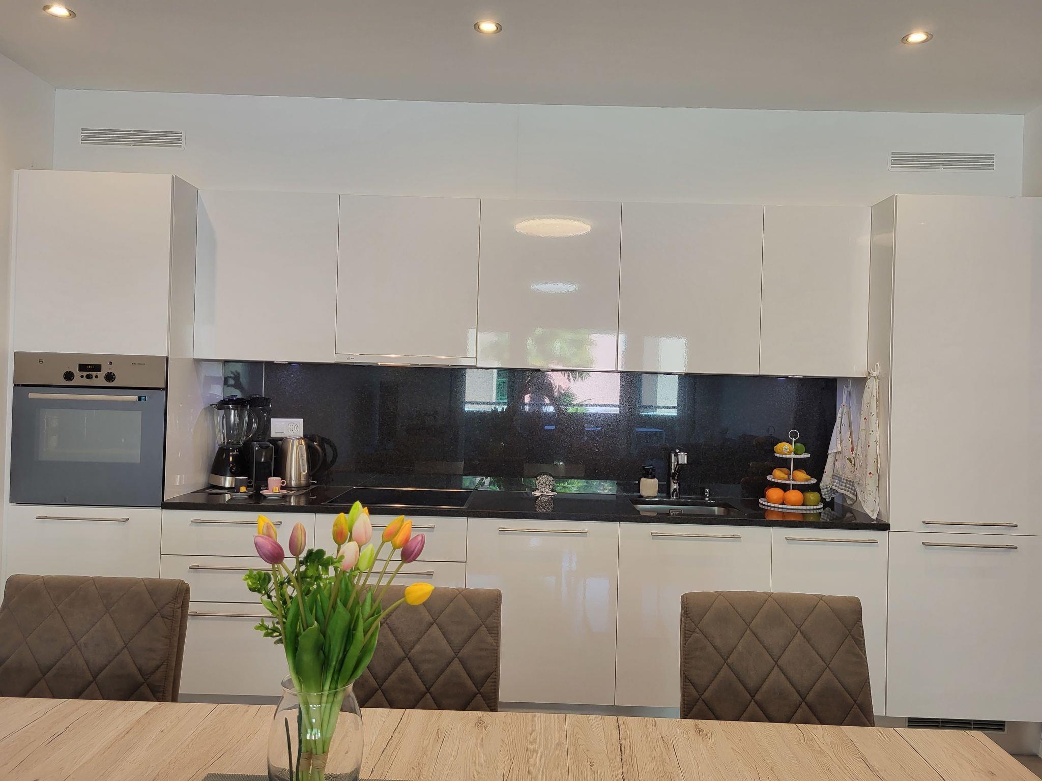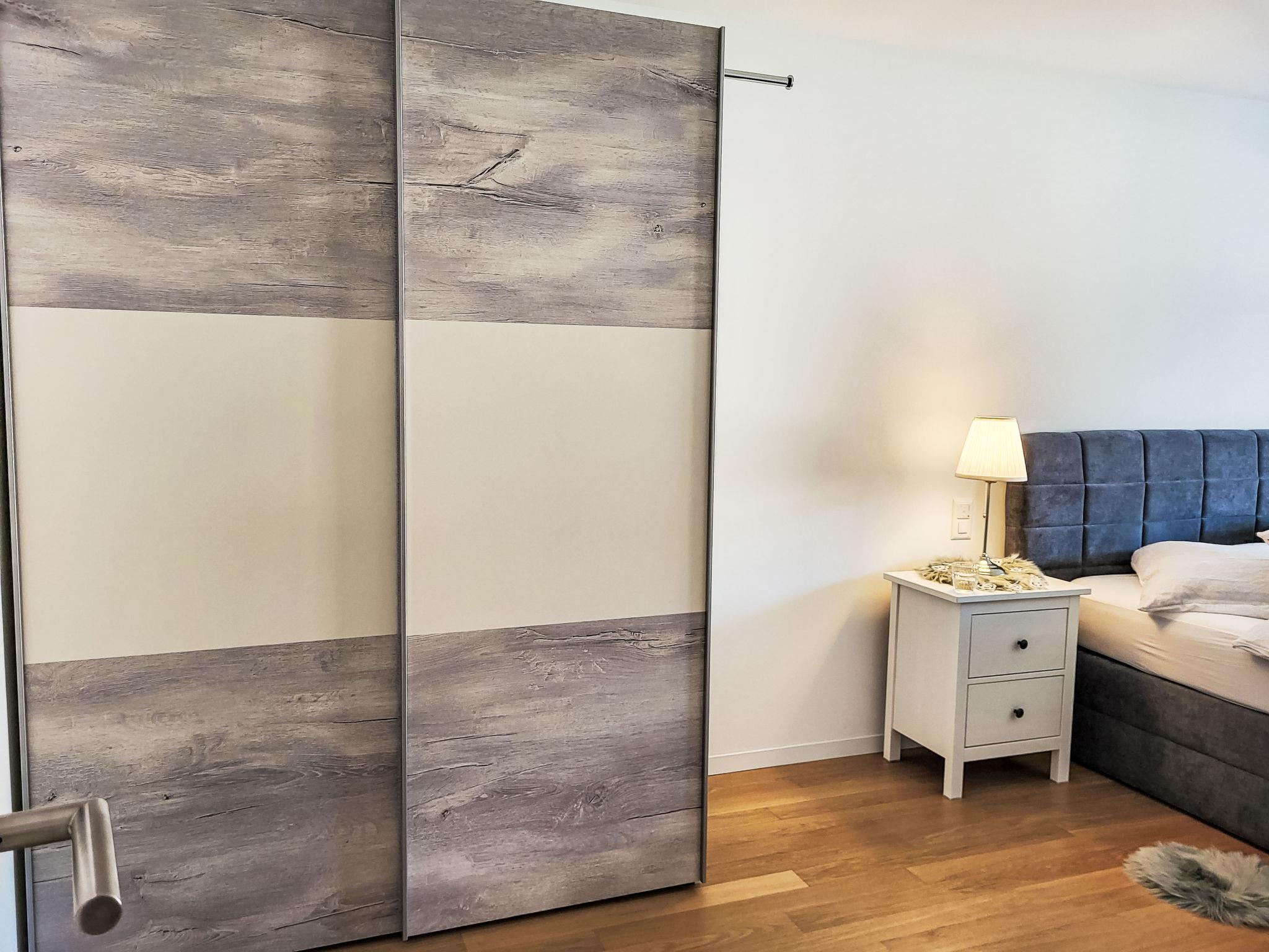 "Julia", 3-room apartment 85 m2 on 1st floor, west facing position. Object suitable for 4 adults + 1 child. Spacious and bright, modern and stylish furnishings: open large living/dining room with 1 sofabed (150 cm, length 240 cm), digital TV, flat screen and radio. Exit to the balcony. 1 double bedroom with 1 double bed (1 x 180 cm, length 200 cm). 1 double bedroom with 1 double bed (1 x 160 cm, length 200 cm). Exit to the balcony. Open kitchen (oven, dishwasher, 4 ceramic glass hob hotplates, toaster, kettle, freezer, grill, electric coffee machine, Capsules for coffee machine (Nespresso) extra, raclette grill, fondue Set (chinoise)). Bath/WC, shower/WC. Underfloor heating. Parquet floors, natural stone floors. Large terrace 22 m2, west facing position. Terrace furniture, barbecue, deck chairs. Side view of the countryside and the resort. Facilities: washing machine, dryer, iron, hair dryer. Internet (WiFi). Parking (roofed) at the house. Please note: non-smokers only, non-smoking house. NL-00007184