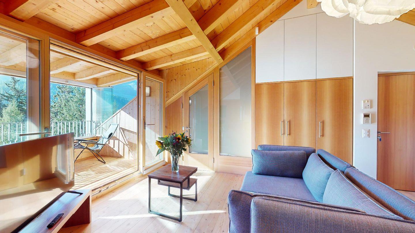 Die Chesa Chalcherin ist ein neu erbautes Minergie-Wohnhaus. Es liegt an ruhiger Lage in unmittelbarer Nähe zur Gondelbahn Marguns sowie der Skischule und deren Pisten für die Kleinen. Auch zum Bahnhof und verschiedenen Einkaufsmöglichkeiten sind es nur wenige Gehminuten.