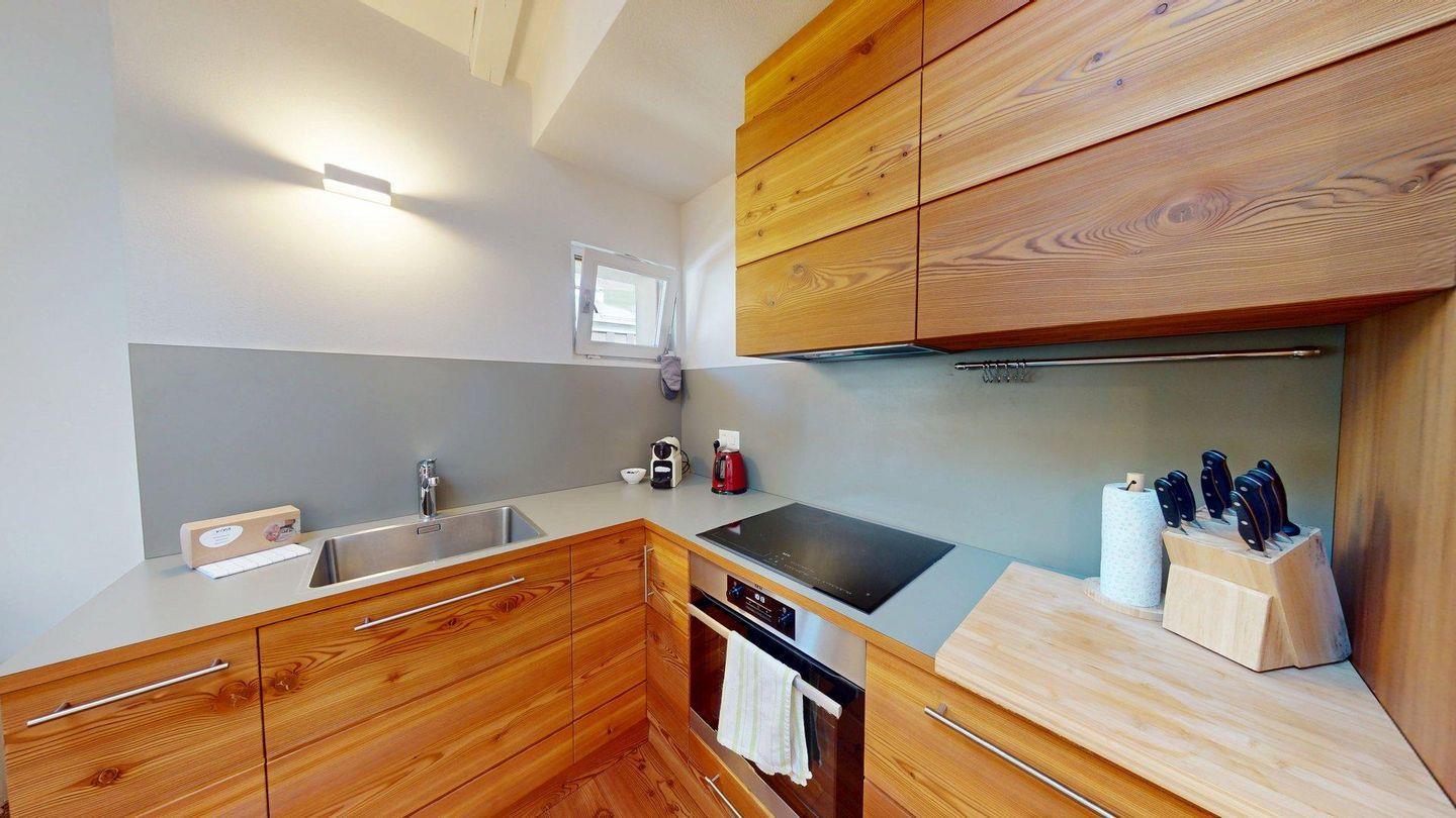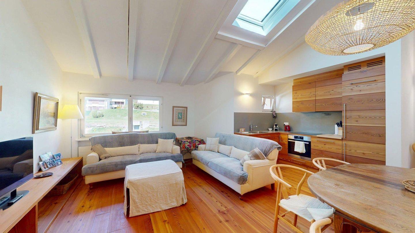 Neu renovierte, interessante 3.5 - Zimmerwohnung in Celerina im obersten Stock. Wohn- /Esszimmer mit offener, moderner Küche. 1 Schlafzimmer mit Doppelbett und Schreibtisch, 1 separates Schlafzimmer mit Doppelbett und en-suite Badezimmer mit DU/WC. 1 separates Badezimmer mit Bad/DU/WC/Bidet. 1 Garagenplatz. Bitte beachten Sie, dass dieses Wohnhaus keinen Aufzug hat.