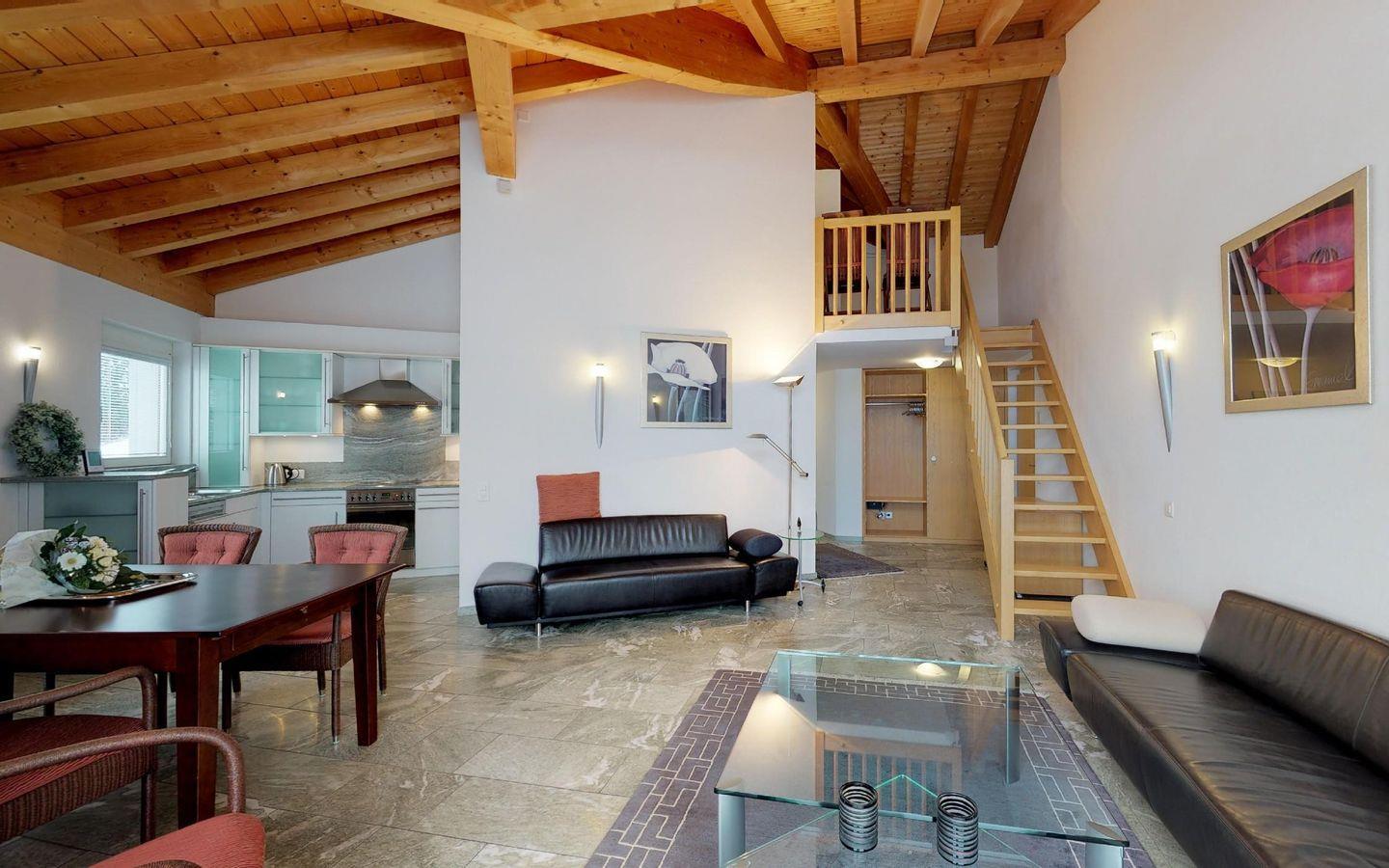 Moderne, sympatische Ferienwohnung im Dachgeschoss mit schöner Aussicht in die Natur. Wohn- /Esszimmer mit offener Küche. Balkon. 1 Schlafzimmer mit 2 separaten Betten. Dusche. Oberer Stock: Doppelschlafzimmer mit Dusche. Parkmöglichkeit für 1 Auto vorhanden.