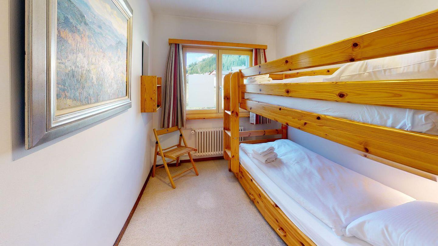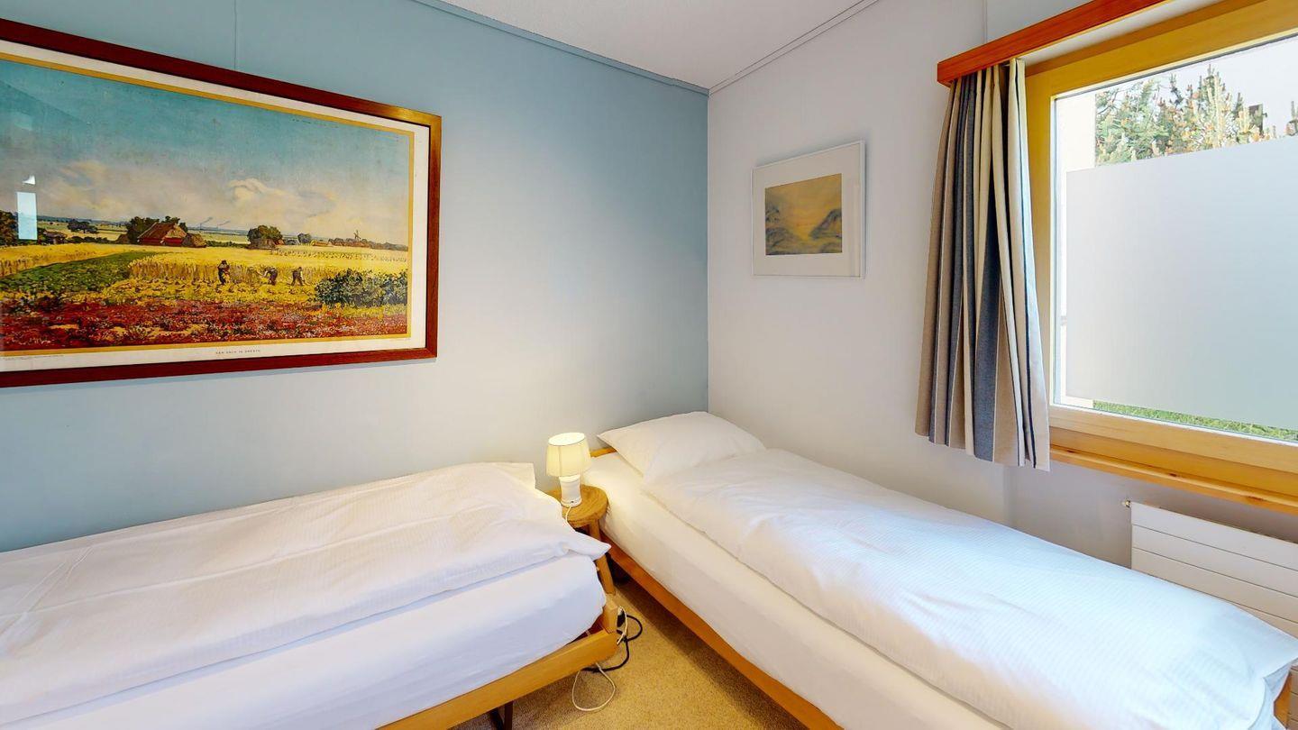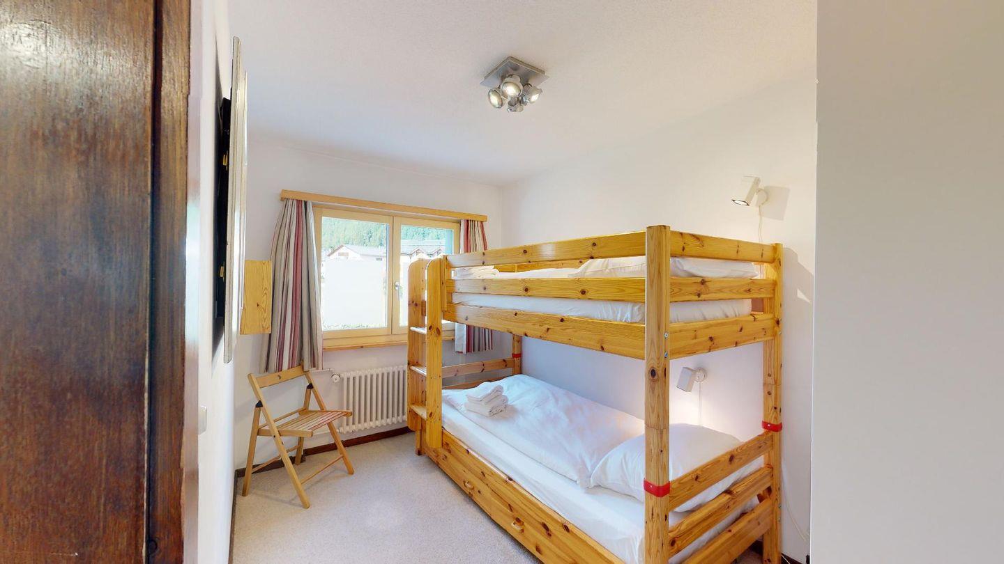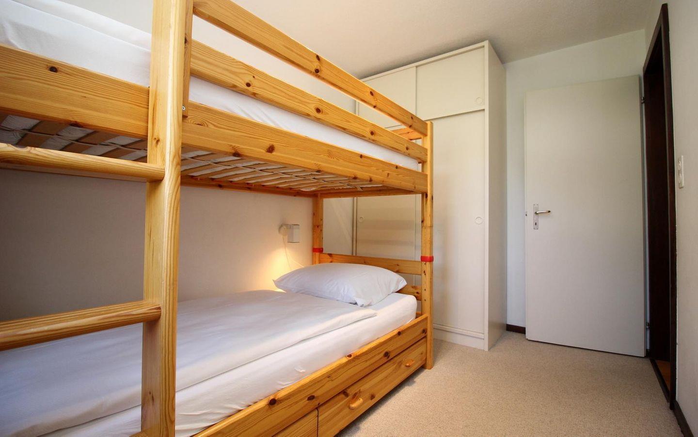 Praktische 4- Zimmer - Familienwohnung mit Wohn- /Esszimmer, Kamin und Terrasse. Separate Küche. 2 Doppelschlafzimmer, ein Schlafzimmer mit Stockbetten. Bad/Dusche sowie separate Dusche, 1 privater Garagenplatz.