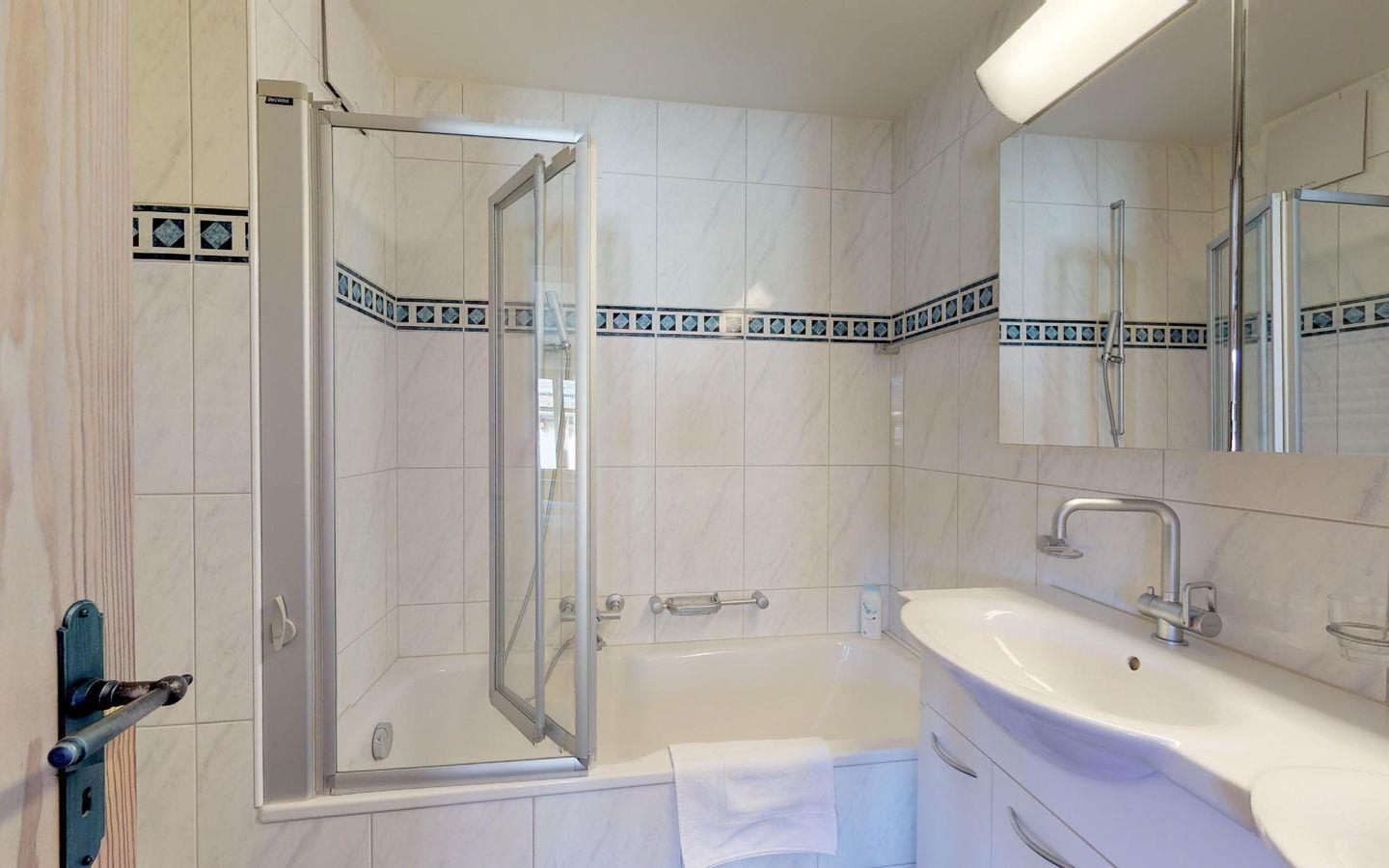 Grosszügige, helle Ferienwohnung im 2. Stock. Geräumigem Wohnzimmer mit Wintergarten. Separate Küche mit angrenzendem Essbereich. Doppelschlafzimmer mit Bad/Dusche sowie 1 Schlafzimmer mit 2 separaten Betten und Ausziehbett. 1 Dusche/WC. Lift, 1 Garagenplatz.