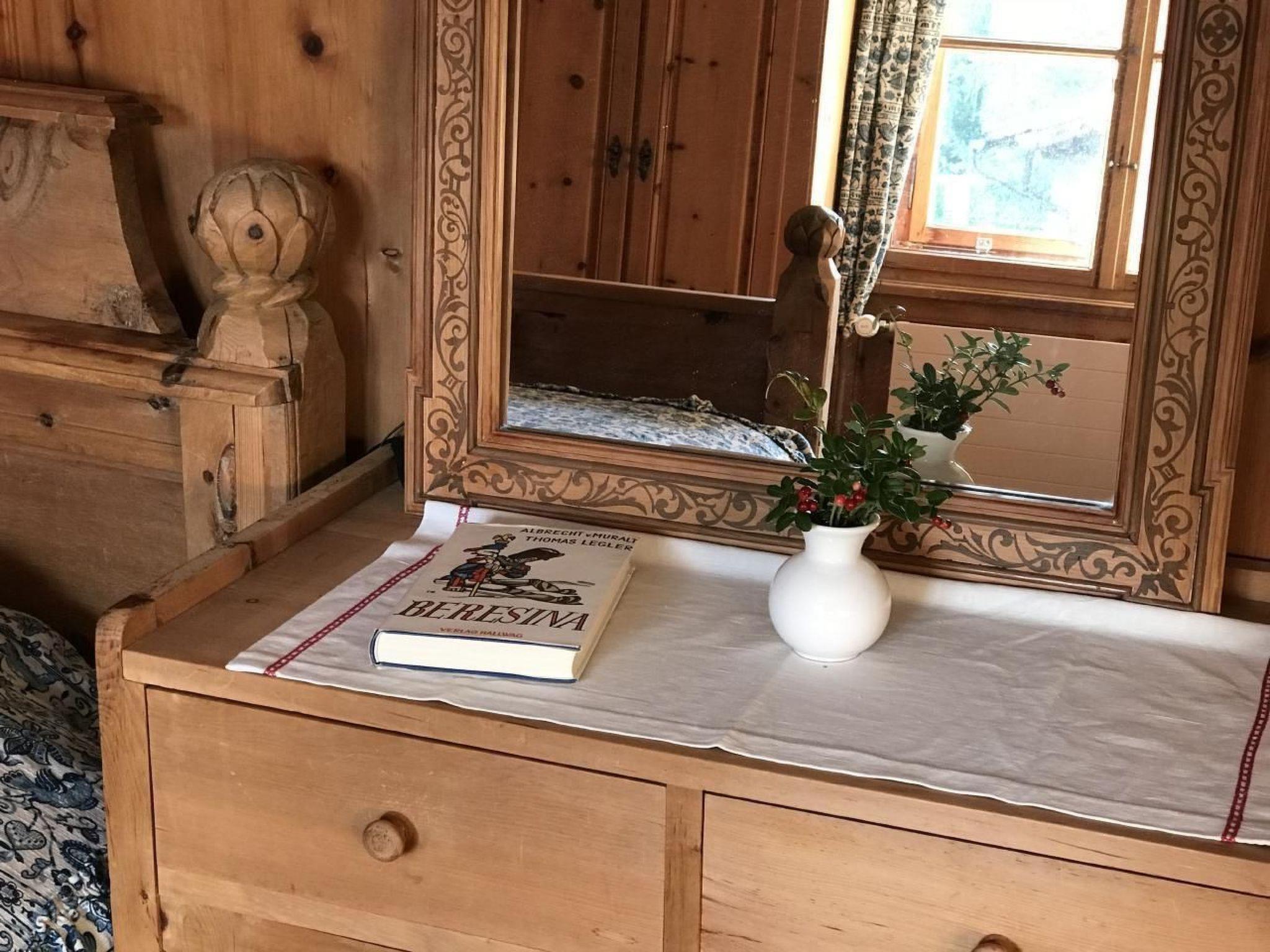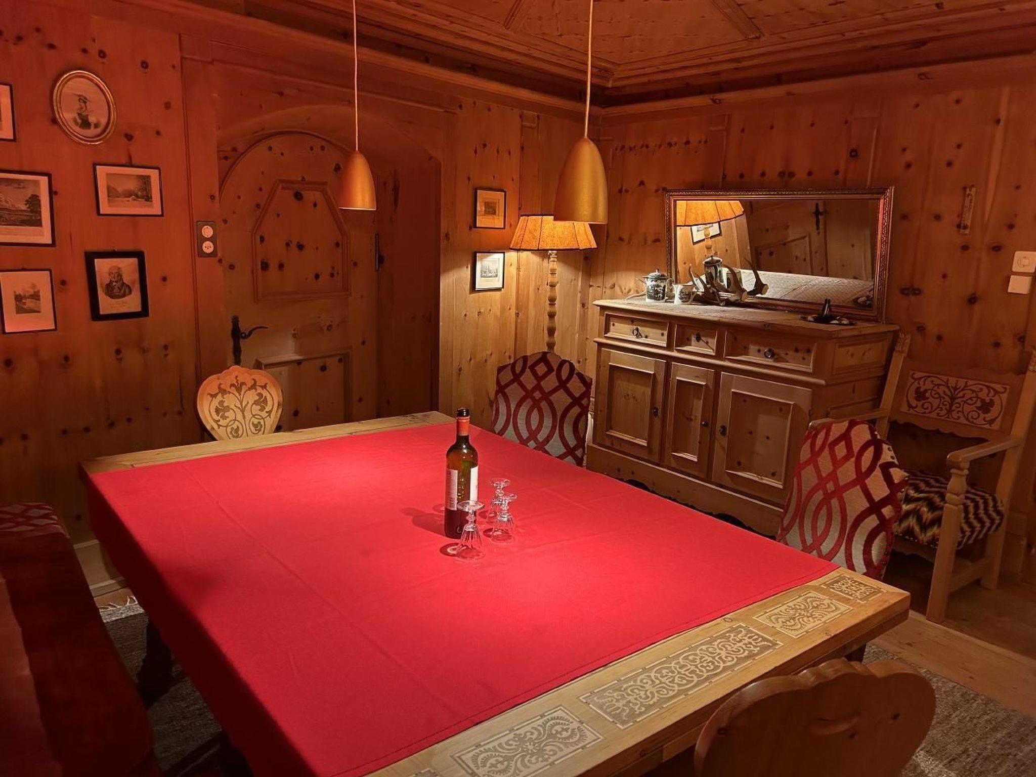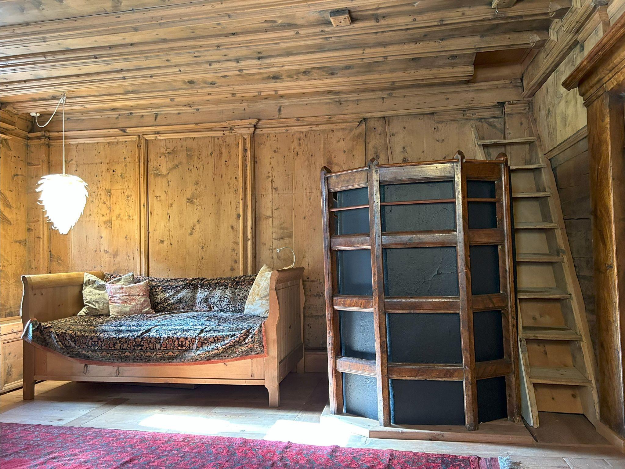 The interior of the Chesa Delfins is like travelling back in time: As in most Engadine houses, there are large and small wooden chests in the house. Numerous pieces of furniture such as tables, chairs and beds are made of Swiss stone pine. There are also modern lamps and many beautiful oriental carpets. There is a library with books from the old days. And anyone interested in the history of the Engadin and its houses will find specialised books. For connoisseurs, there is a marvellous restored grand piano from 1919.