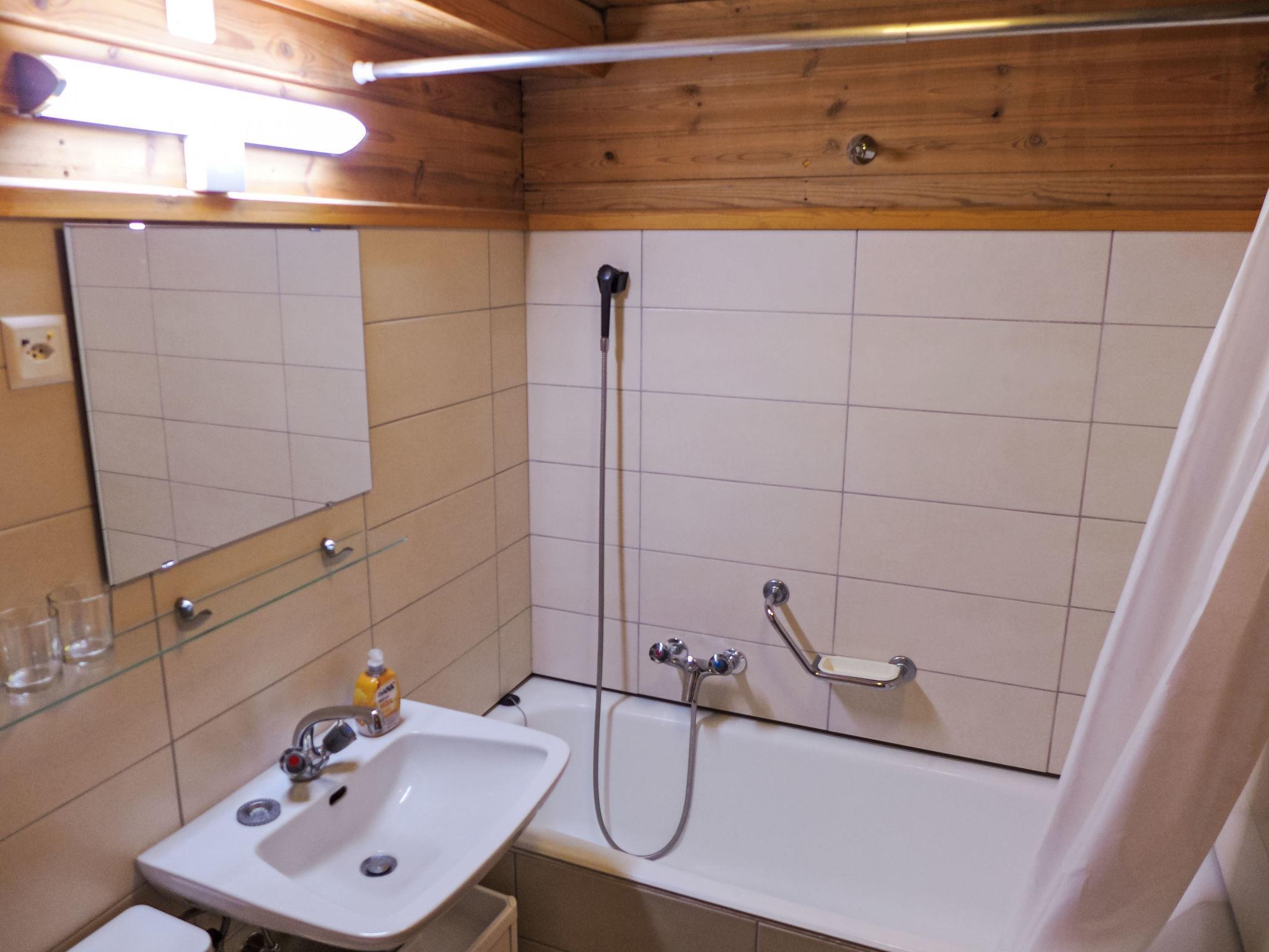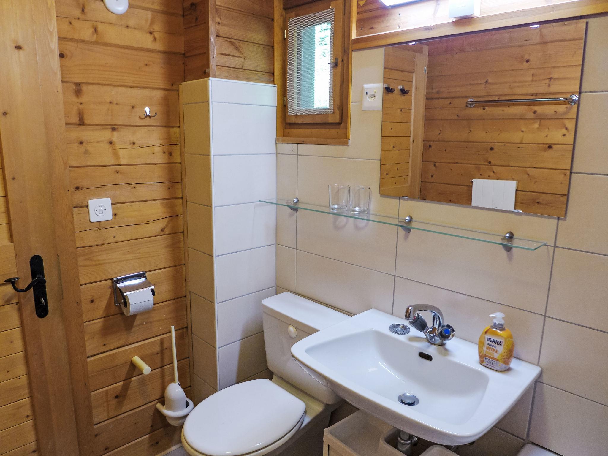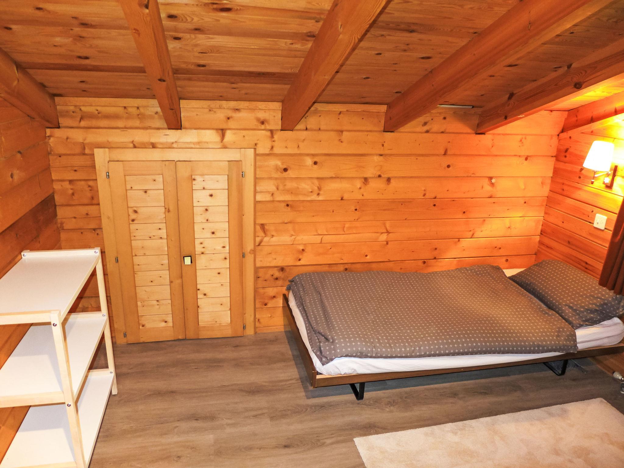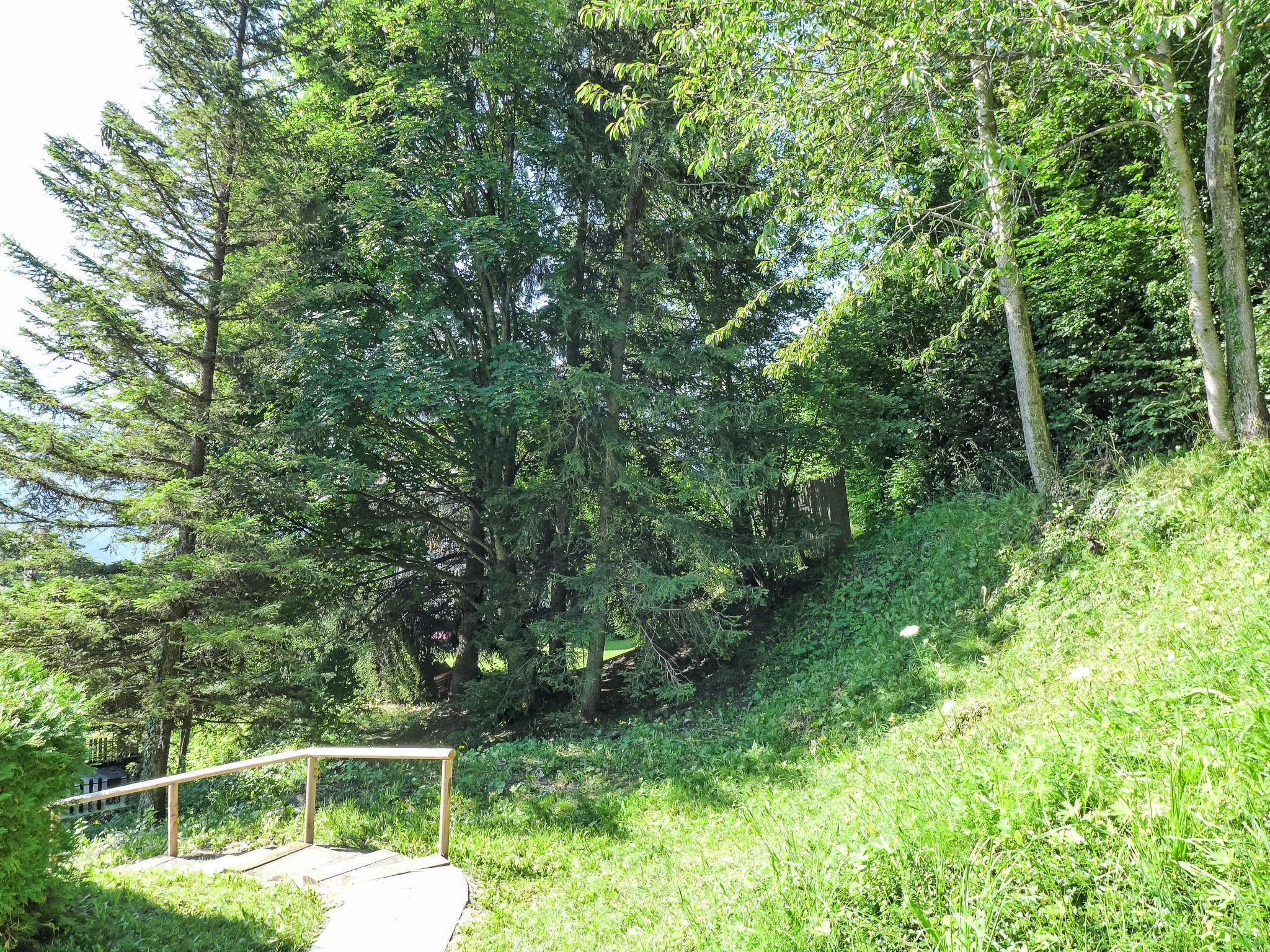 "Sans Nom", 5-room semi-detached house 120 m2 on 3 levels, south facing position. Object suitable for 4 adults + 2 children. Partly renovated in 2024, comfortable and beautiful furnishings: small living/dining room with open-hearth fireplace, cable TV, radio and CD-player. Exit to the terrace. Open kitchen (oven, dishwasher, 4 ceramic glass hob hotplates, toaster, kettle, microwave, freezer, electric coffee machine, Capsules for coffee machine (Nespresso) extra, raclette grill, fondue Set (chinoise, cheese)). Upper floor: 1 large room with 1 double bed (2 x 90 cm, length 200 cm). Exit to the balcony. 1 room with 1 bed (90 cm, length 190 cm). Bath/WC, sep. WC. 2nd upper floor: 1 room with sloping ceilings with 2 beds (90 cm, length 200 cm). 1 children's room with sloping ceilings with 1 bed (90 cm, length 190 cm). Shower/WC. Balcony 15 m2, south facing position and, east facing position, terrace 20 m2, south facing position. Terrace furniture, balcony furniture, barbecue (portable), deck chairs (1). Beautiful view of the mountains, the valley and the forest. Facilities: washing machine, iron, children's high chair, baby cot for up to 2 year olds, hair dryer. Internet (WiFi, free). Garage (1 car), height 195 cm, width 220 cm. Please note: non-smoking house. 1 small pet/ dog allowed.