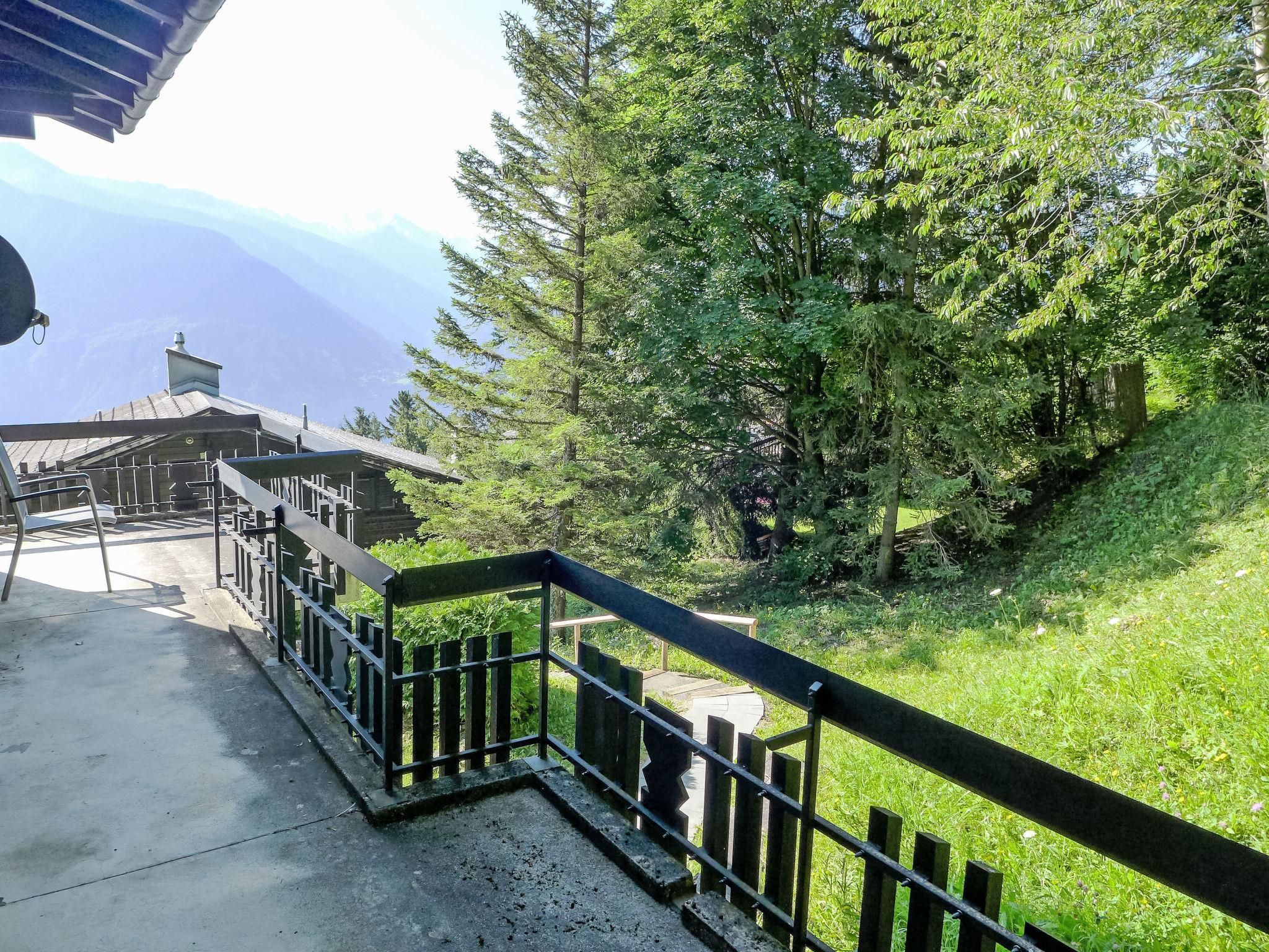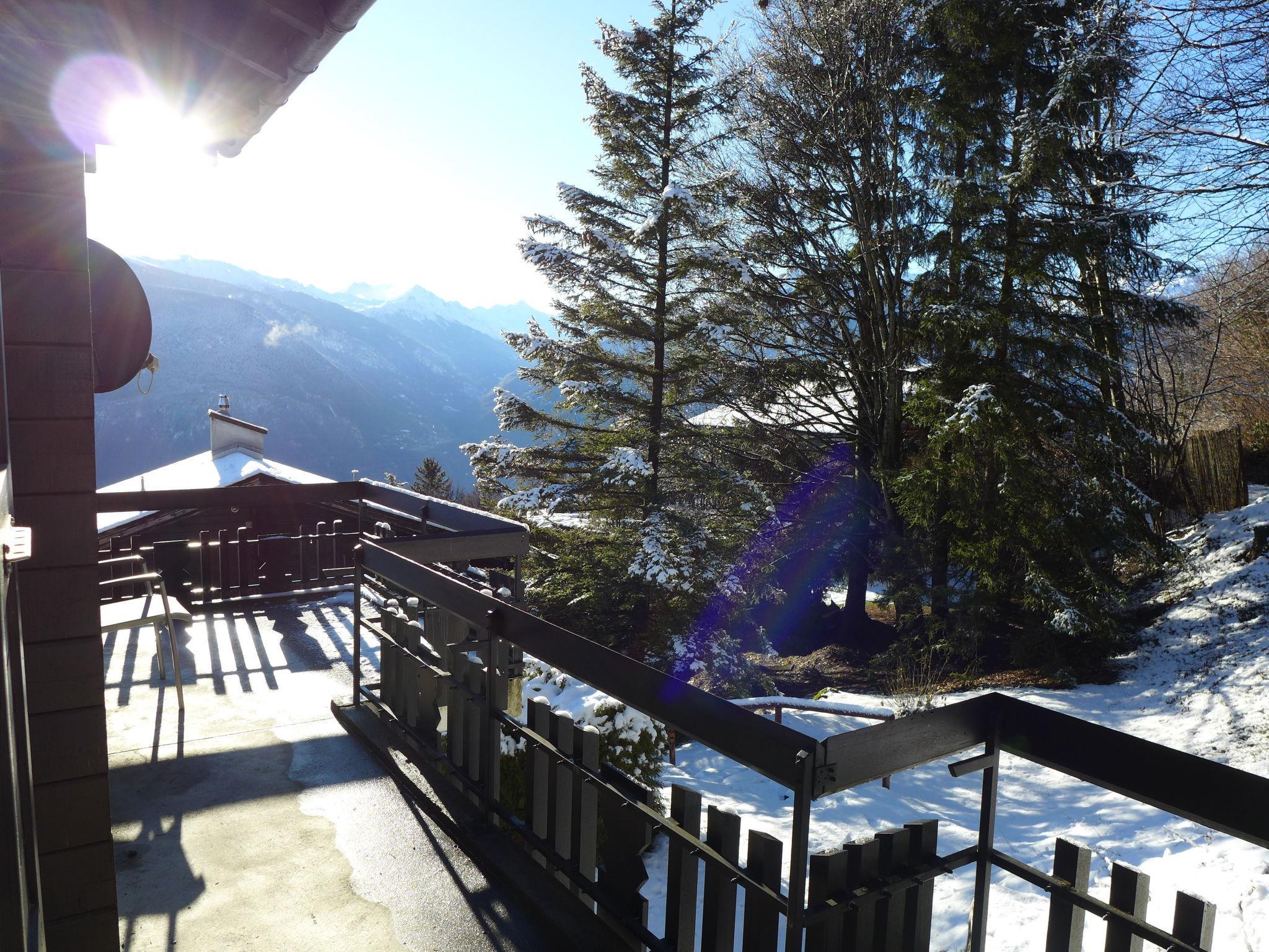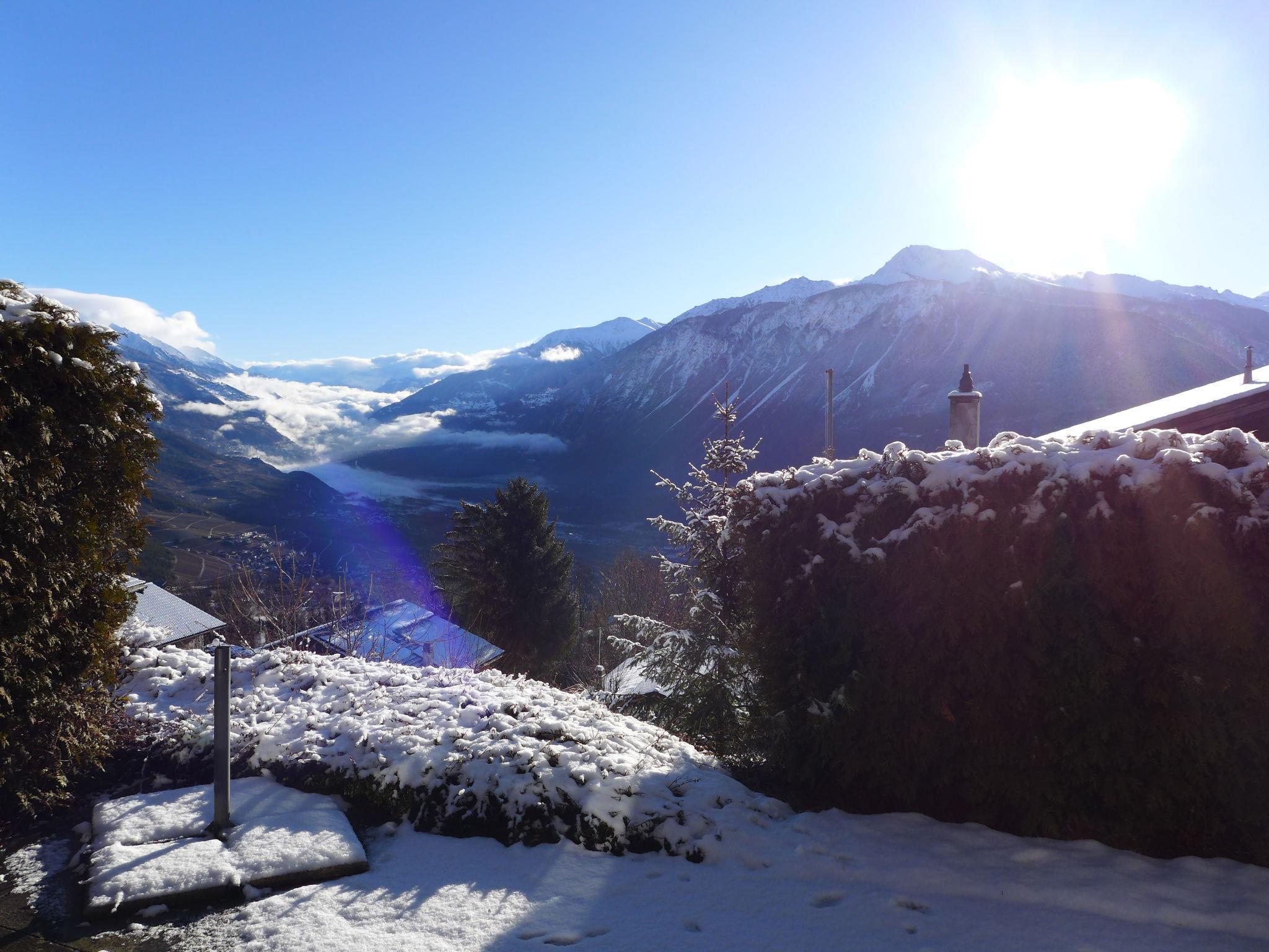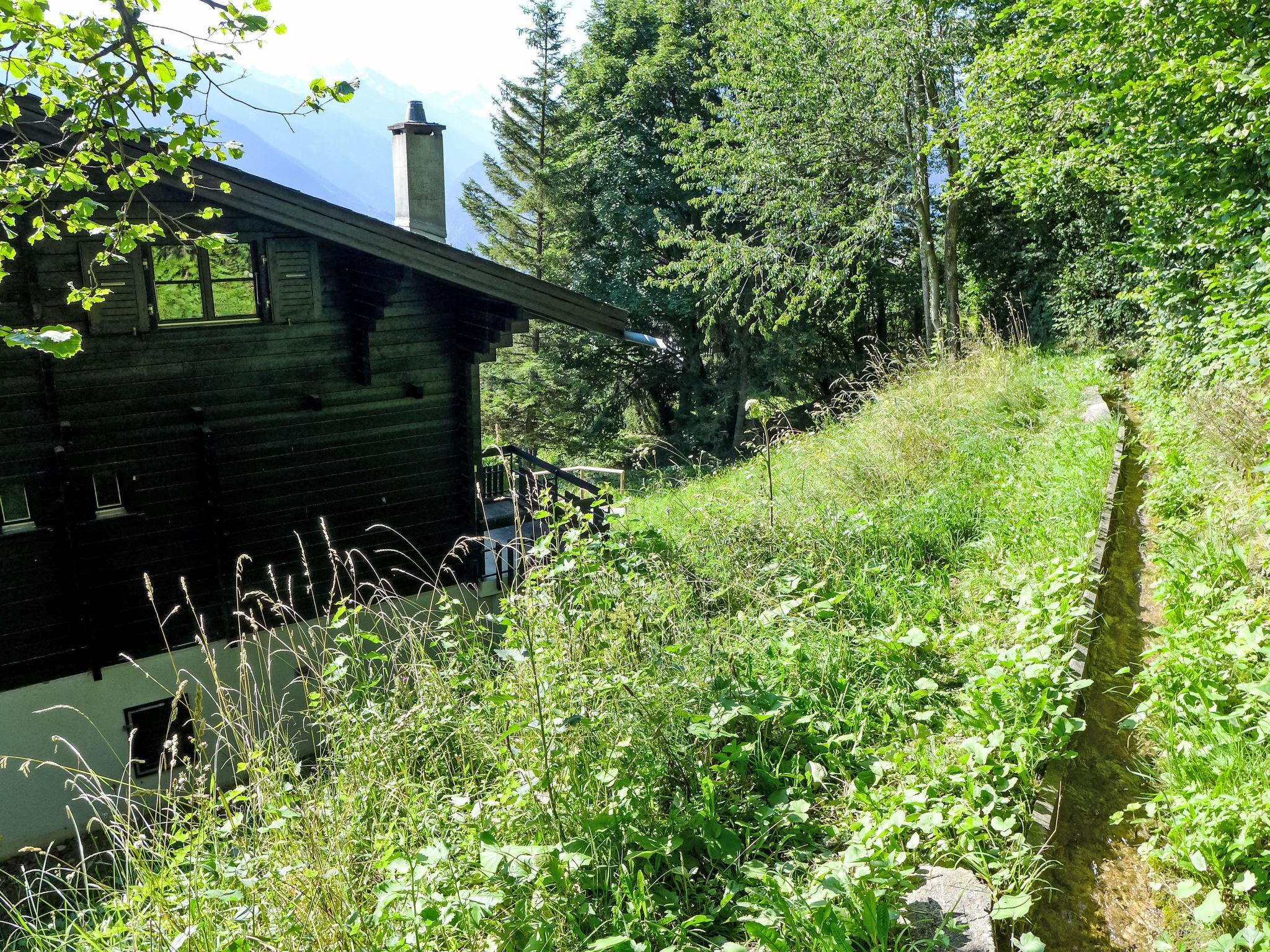 Mollens 7 km from Crans-Montana: Comfortable chalet "Sans Nom", 3 storeys, terraced, surrounded by trees. Above Mollens, in a quiet, sunny, elevated position, traffic calmed area, 6 km from the lake, 5 km from the skiing area, 20 m from the stream, in the countryside, south facing position. Private: garden with lawn, natural garden 500 m2. In the house: central heating system, drying room. Steep motor access. In Winter: please take snow chains, 4x4 car recommended in winter. Stepped path (40 steps) to the house. Shop 5.2 km, grocery 950 m, supermarket 5.5 km, restaurant 1.1 km, bakery 4.7 km, bus stop "Randogne, La Côte" 350 m, railway station "Funiculaire Bluche" 1.9 km, bathing lake "Moubra" 6.4 km, lake Grenon 6 km. Golf course (18 hole) 7.3 km, skisport facilities 5 km. Well-known ski regions can easily be reached: Lac Moubra 6.4 km, Etang Long 7.2 km. Please note: car recommended. The owner does not accept any youth groups.