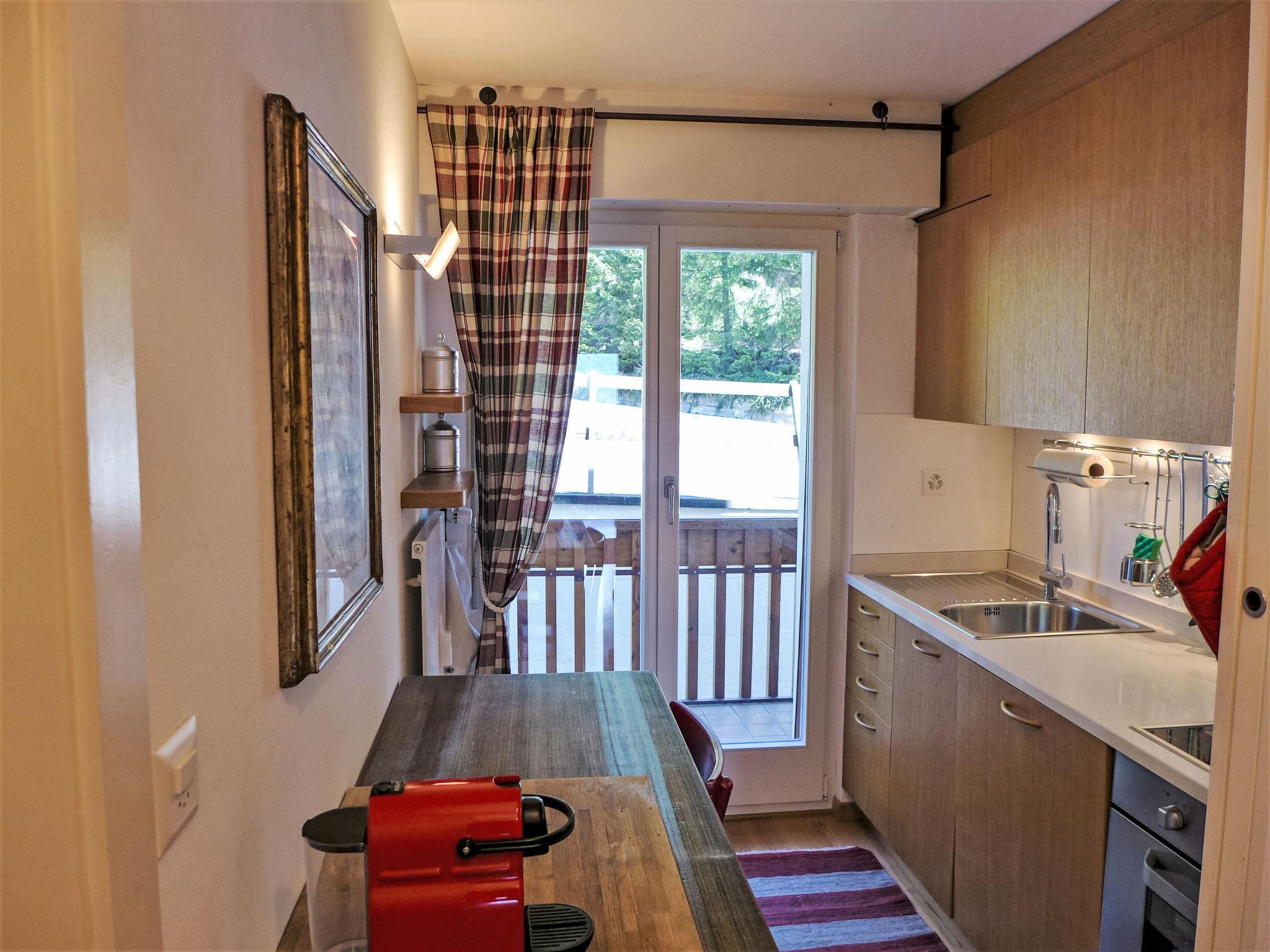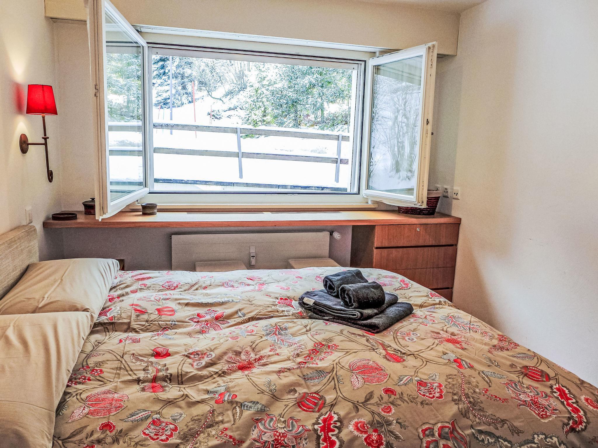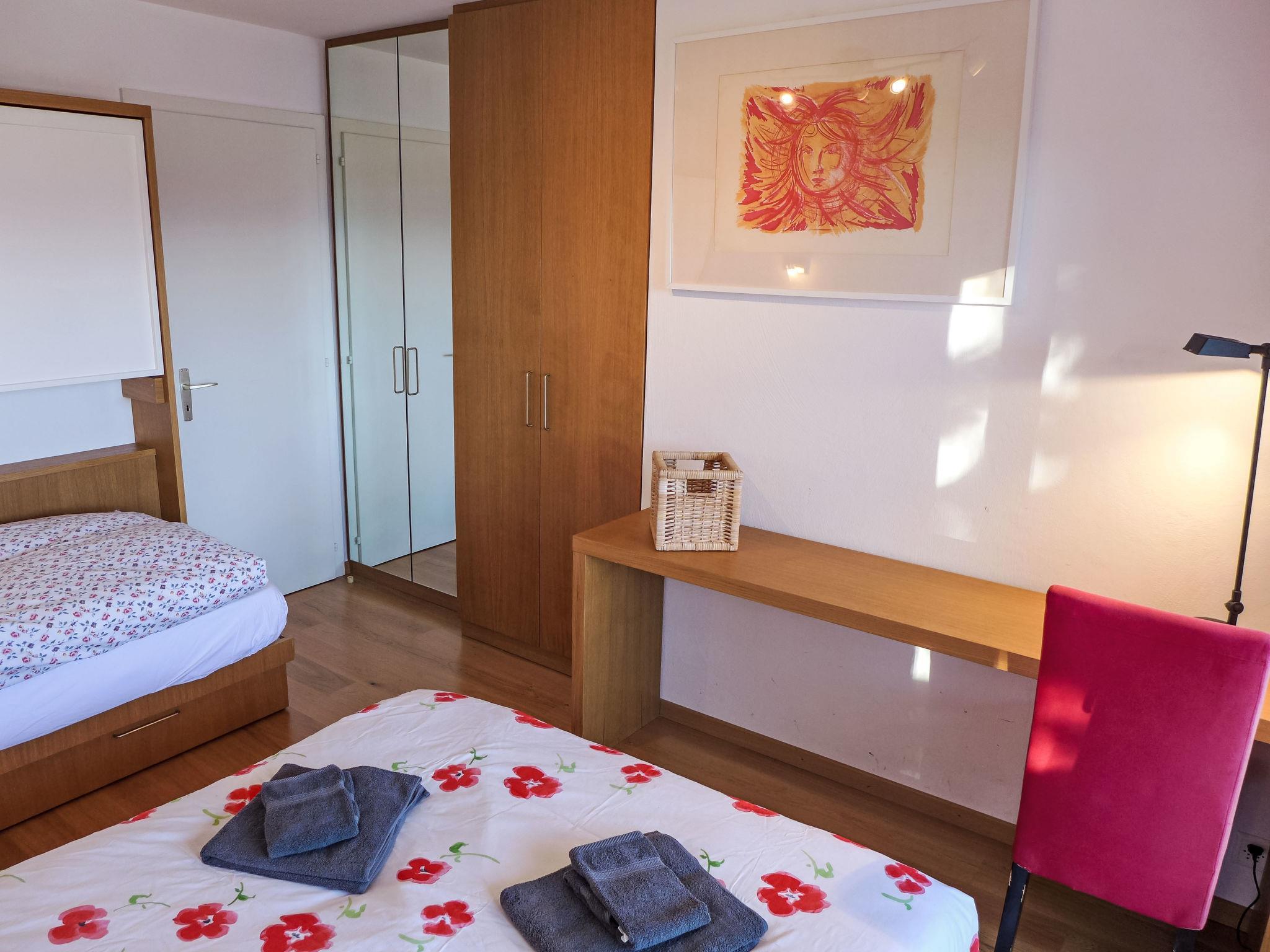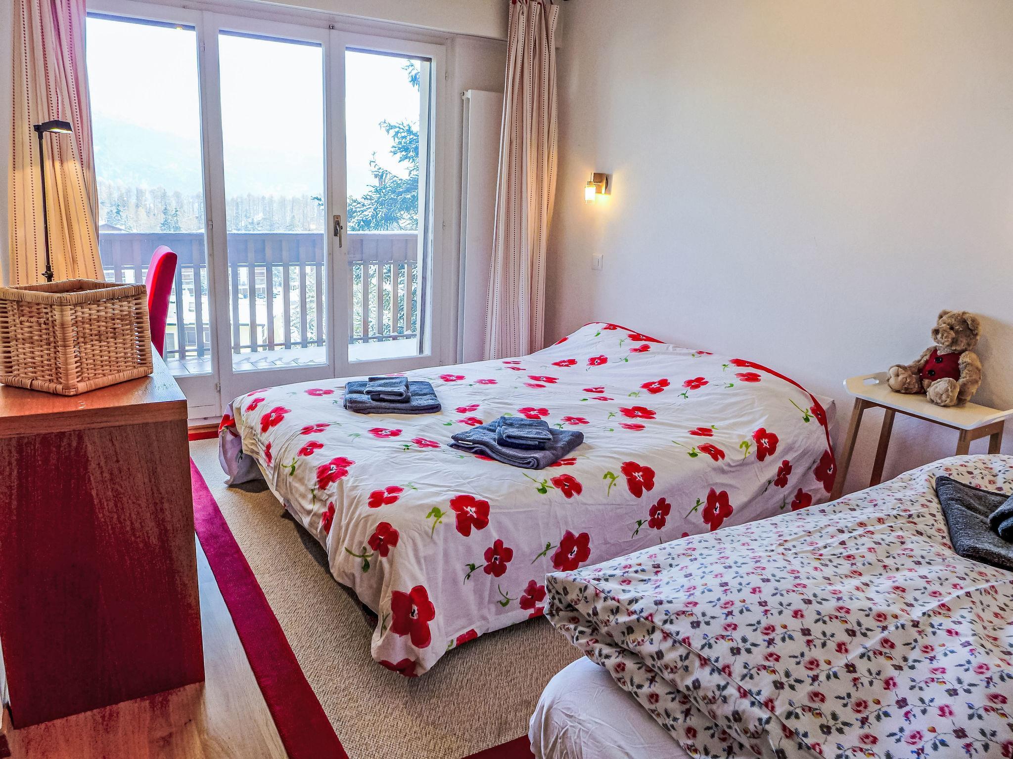 "Les Arolles B12", 3-room apartment 90 m2 on 2nd floor. Spacious, comfortable and beautiful furnishings: living/dining room with open-hearth fireplace, cable TV, flat screen, DVD and DVD collection available. Exit to the balcony, south facing position. 1 room with Dressing room with 1 double bed (160 cm, length 200 cm), hip bath/WC. 1 room with 1 bed (80 cm, length 190 cm), 1 sofabed (140 cm, length 190 cm). Exit to the balcony, south facing position. Kitchen (oven, dishwasher, 4 ceramic glass hob hotplates, kettle, freezer, electric coffee machine, Capsules for coffee machine (Nespresso) extra, raclette grill, combination microwave, fondue Set (chinoise)). Exit to the balcony, north facing position. Shower/WC. Balcony 20 m2, south facing position. Balcony furniture. Very beautiful view of the mountains and the countryside. Facilities: iron, hair dryer. Internet (WiFi, free). Garage (1 car), height 193 cm, width 220 cm. Please note: non-smokers only.