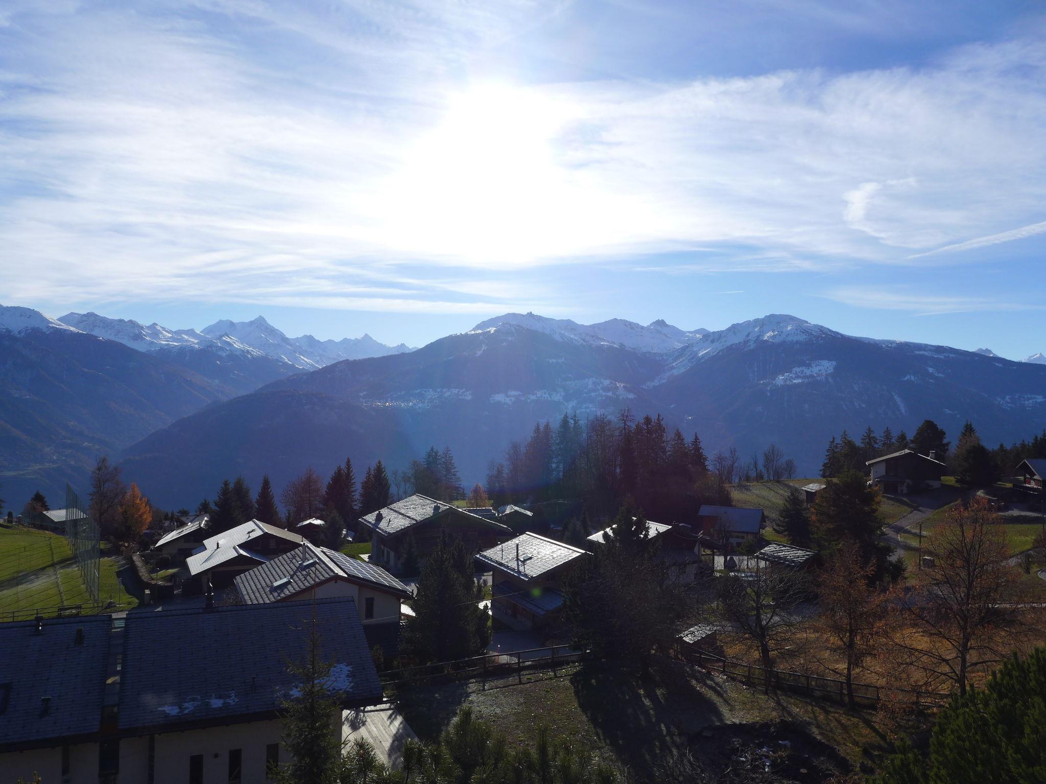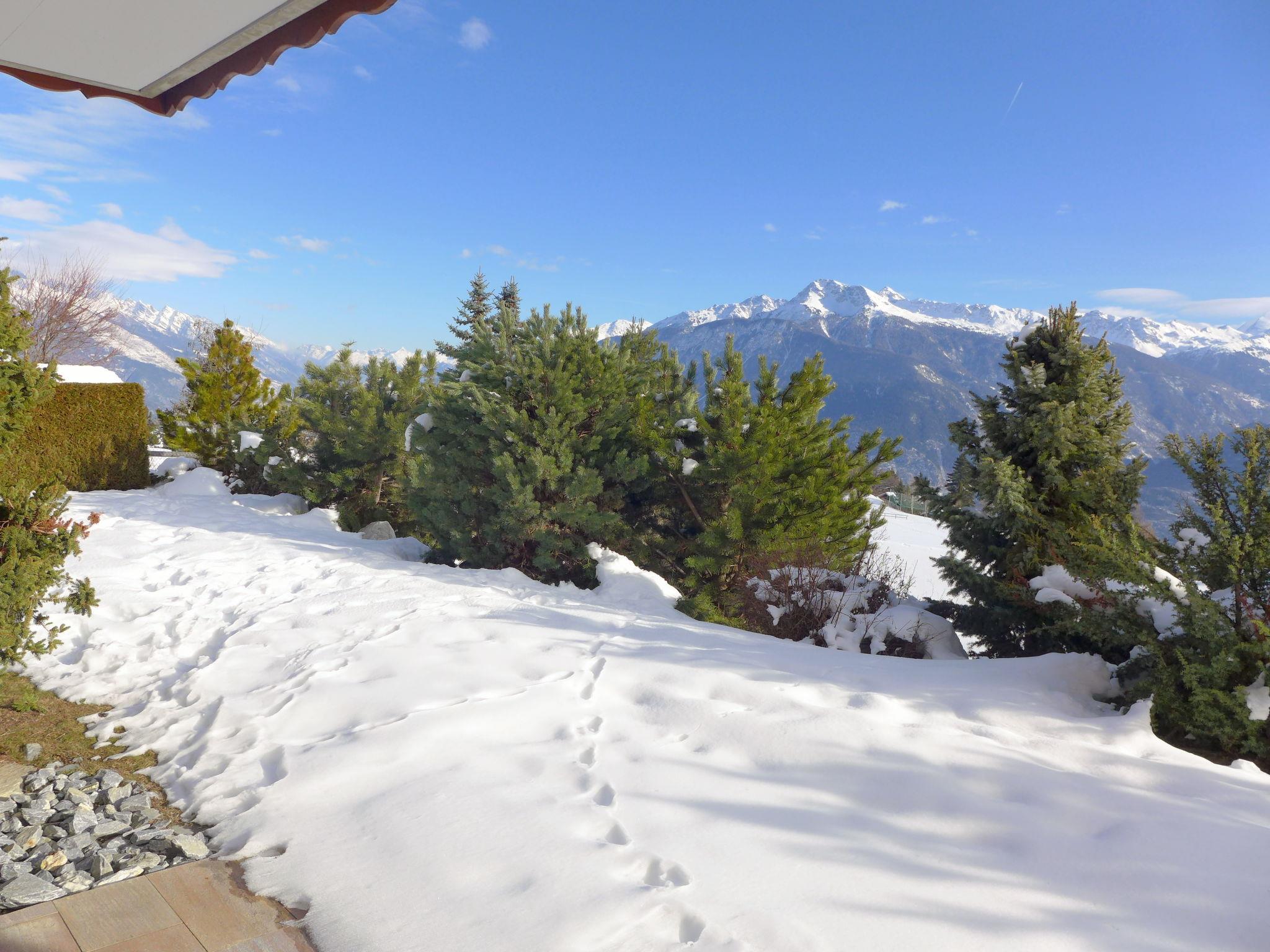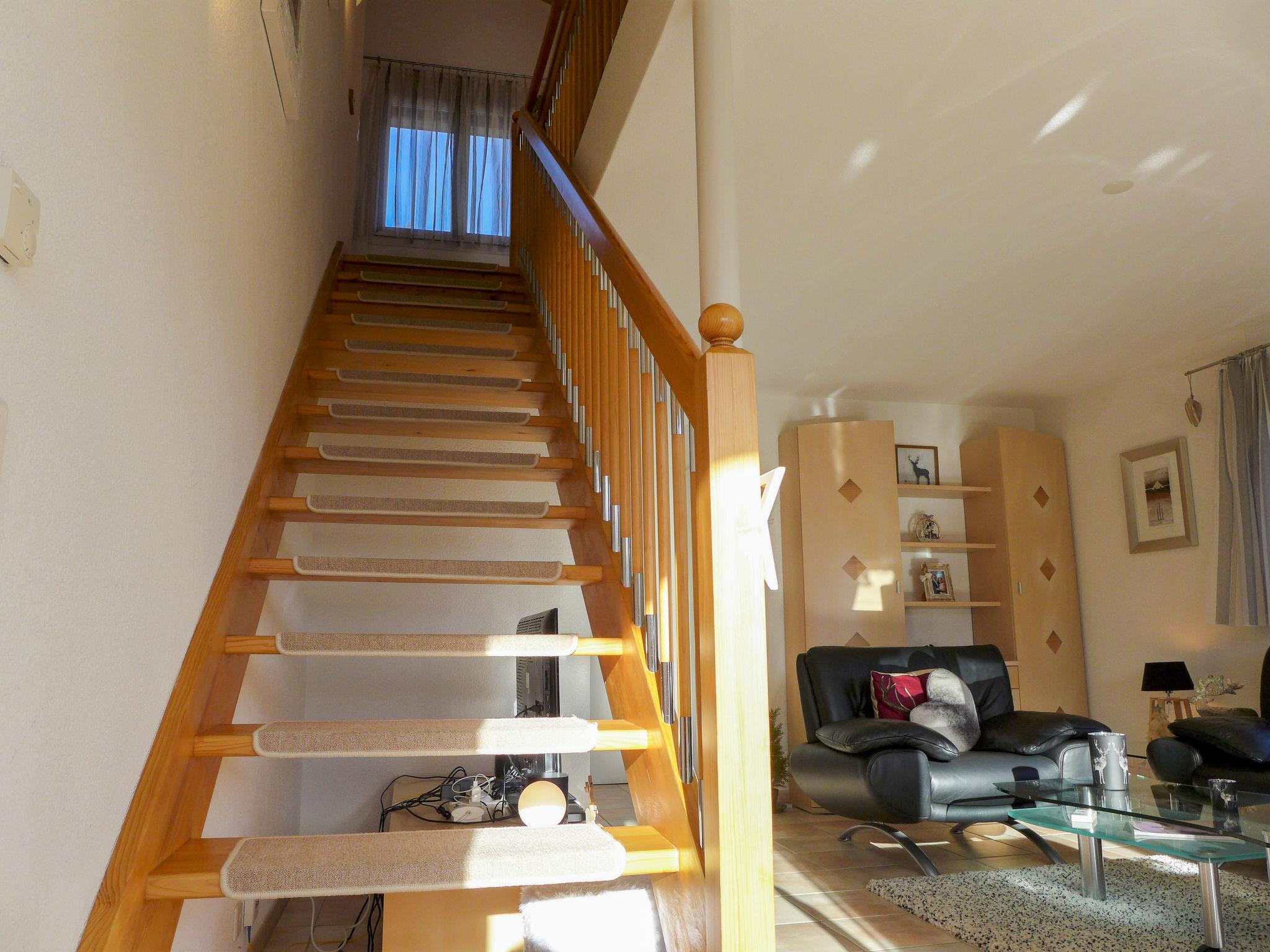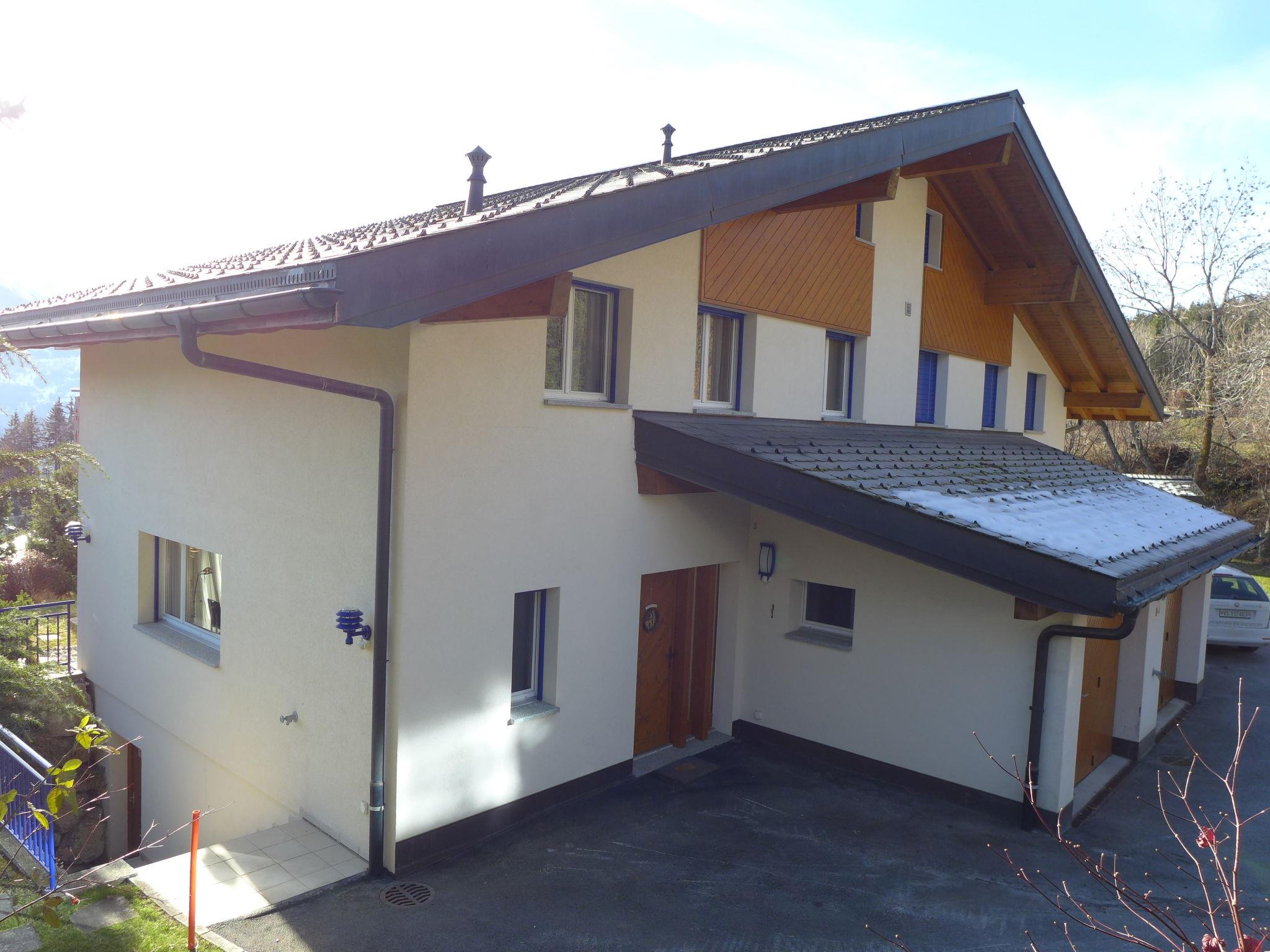 "Maison N°35", 4-room terraced house 75 m2 on 2 levels. Object suitable for 4 adults + 2 children. Spacious and bright, comfortable and beautiful furnishings: open living/dining room with cable TV, flat screen, radio and hi-fi system. Exit to the terrace. Kitchen (oven, dishwasher, 4 ceramic glass hob hotplates, toaster, kettle, microwave, freezer, electric coffee machine, Capsules for coffee machine (Nespresso) extra, raclette grill, fondue Set (chinoise, cheese)). Sep. WC. Upper floor: 1 room, ceiling height 300 - 400 cm with 1 french bed (180 cm, length 200 cm), TV. Exit to the balcony. 1 small room with 1 pull-out bed (2 pers. 2 x 90 cm, length 190 cm). 1 room with 1 pull-out bed (2 pers. 2 x 90 cm, length 190 cm). Exit to the balcony. Shower/bidet/WC. Large balcony, south facing position, large terrace 10 m2, south facing position. Terrace furniture, electric barbecue (portable), deck chairs (2), box-room. Marvellous panoramic view of the mountains and the valley. Facilities: washing machine, dryer, hair dryer. Internet (WiFi, free). Parking (1 car), garage (1 car), height 200 cm, width 220 cm. Please note: suitable for families. Non-smoking house.