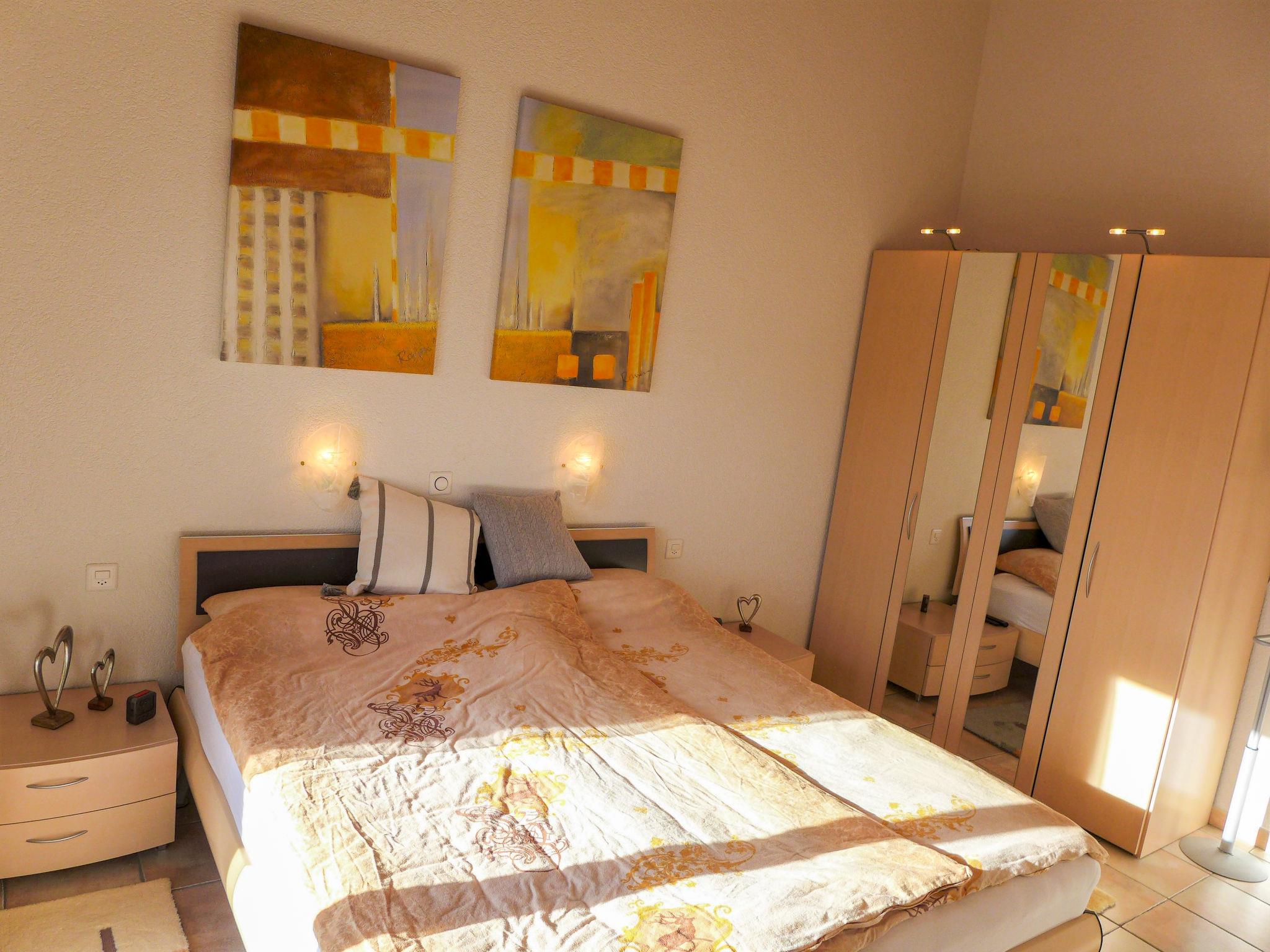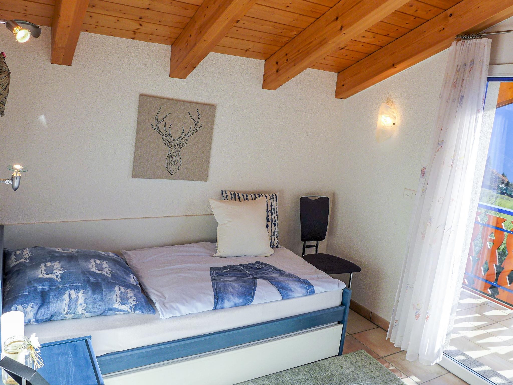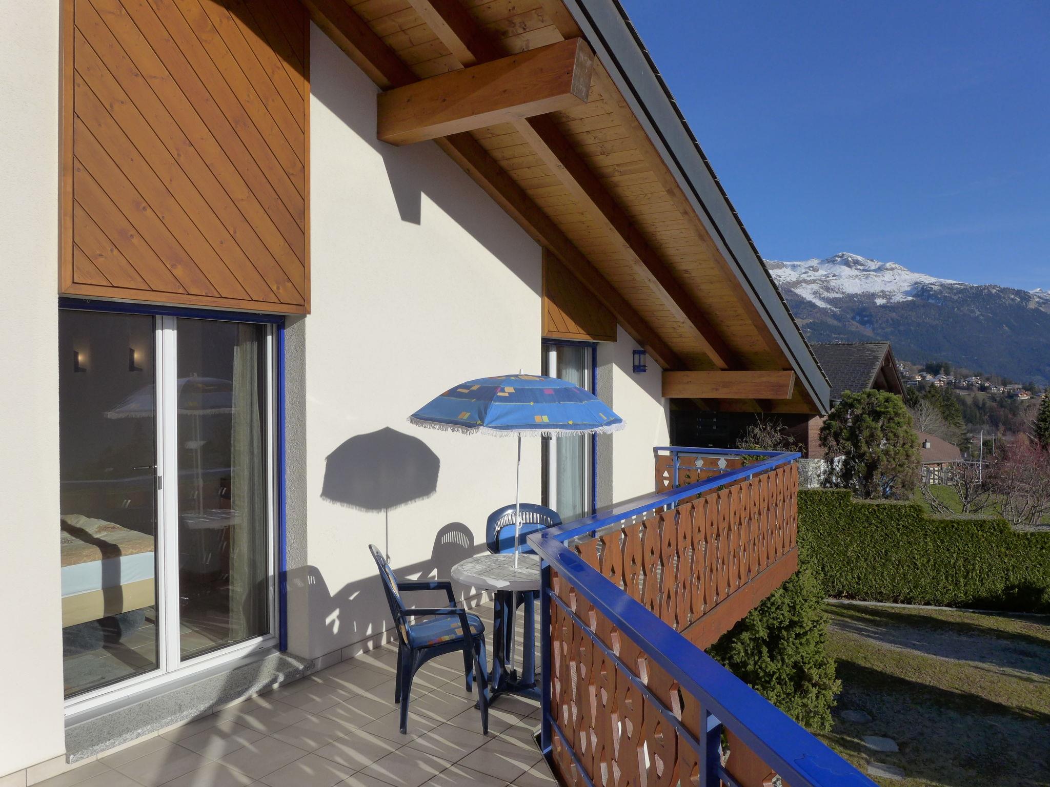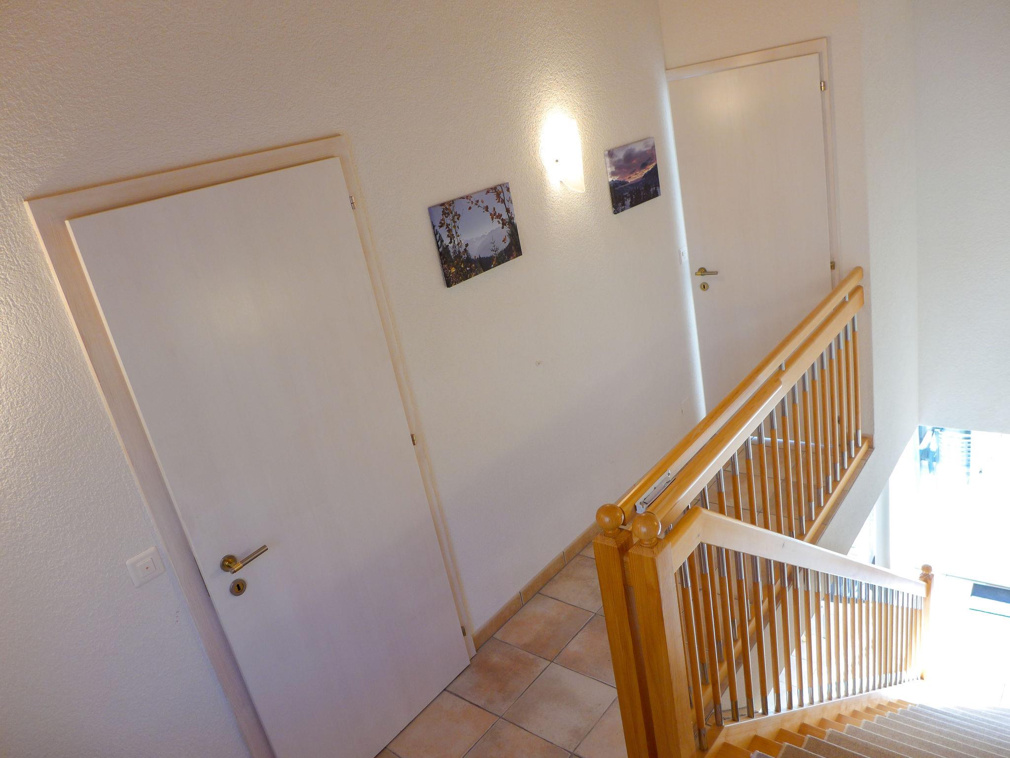 "Maison N°35", 4-room terraced house 75 m2 on 2 levels. Object suitable for 4 adults + 2 children. Spacious and bright, comfortable and beautiful furnishings: open living/dining room with cable TV, flat screen, radio and hi-fi system. Exit to the terrace. Kitchen (oven, dishwasher, 4 ceramic glass hob hotplates, toaster, kettle, microwave, freezer, electric coffee machine, Capsules for coffee machine (Nespresso) extra, raclette grill, fondue Set (chinoise, cheese)). Sep. WC. Upper floor: 1 room, ceiling height 300 - 400 cm with 1 french bed (180 cm, length 200 cm), TV. Exit to the balcony. 1 small room with 1 pull-out bed (2 pers. 2 x 90 cm, length 190 cm). 1 room with 1 pull-out bed (2 pers. 2 x 90 cm, length 190 cm). Exit to the balcony. Shower/bidet/WC. Large balcony, south facing position, large terrace 10 m2, south facing position. Terrace furniture, electric barbecue (portable), deck chairs (2), box-room. Marvellous panoramic view of the mountains and the valley. Facilities: washing machine, dryer, hair dryer. Internet (WiFi, free). Parking (1 car), garage (1 car), height 200 cm, width 220 cm. Please note: suitable for families. Non-smoking house.