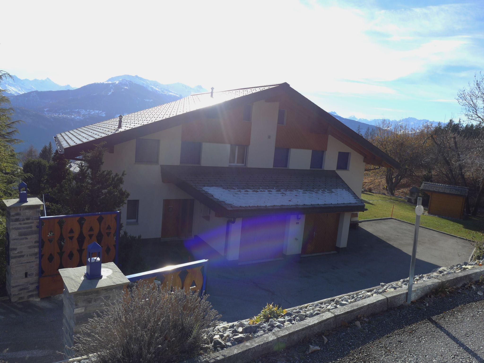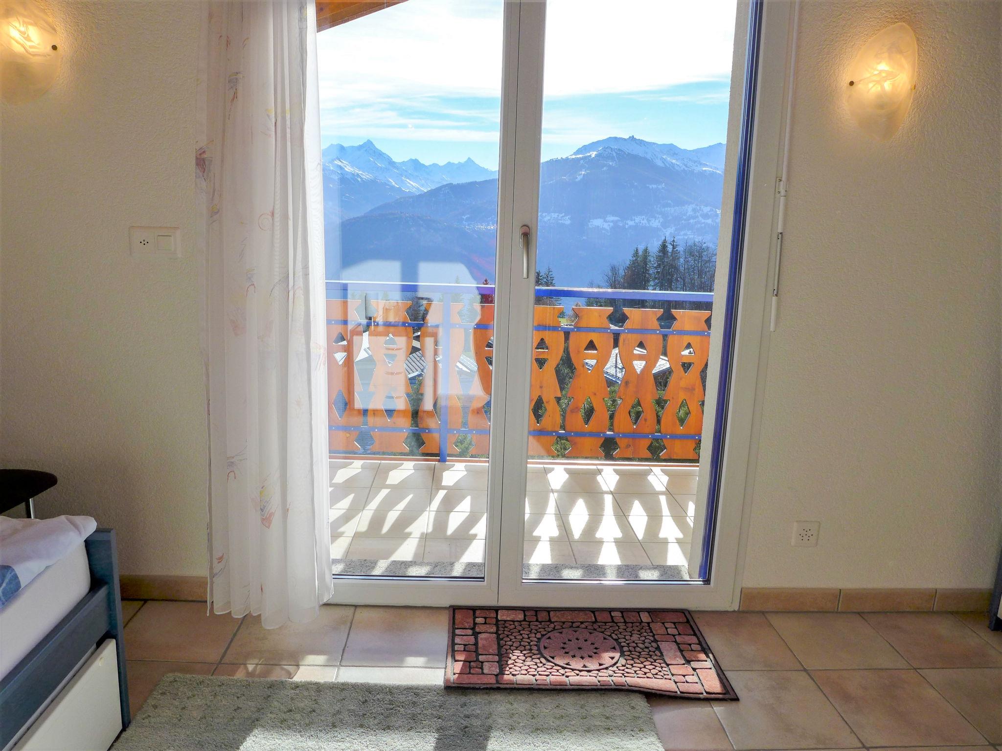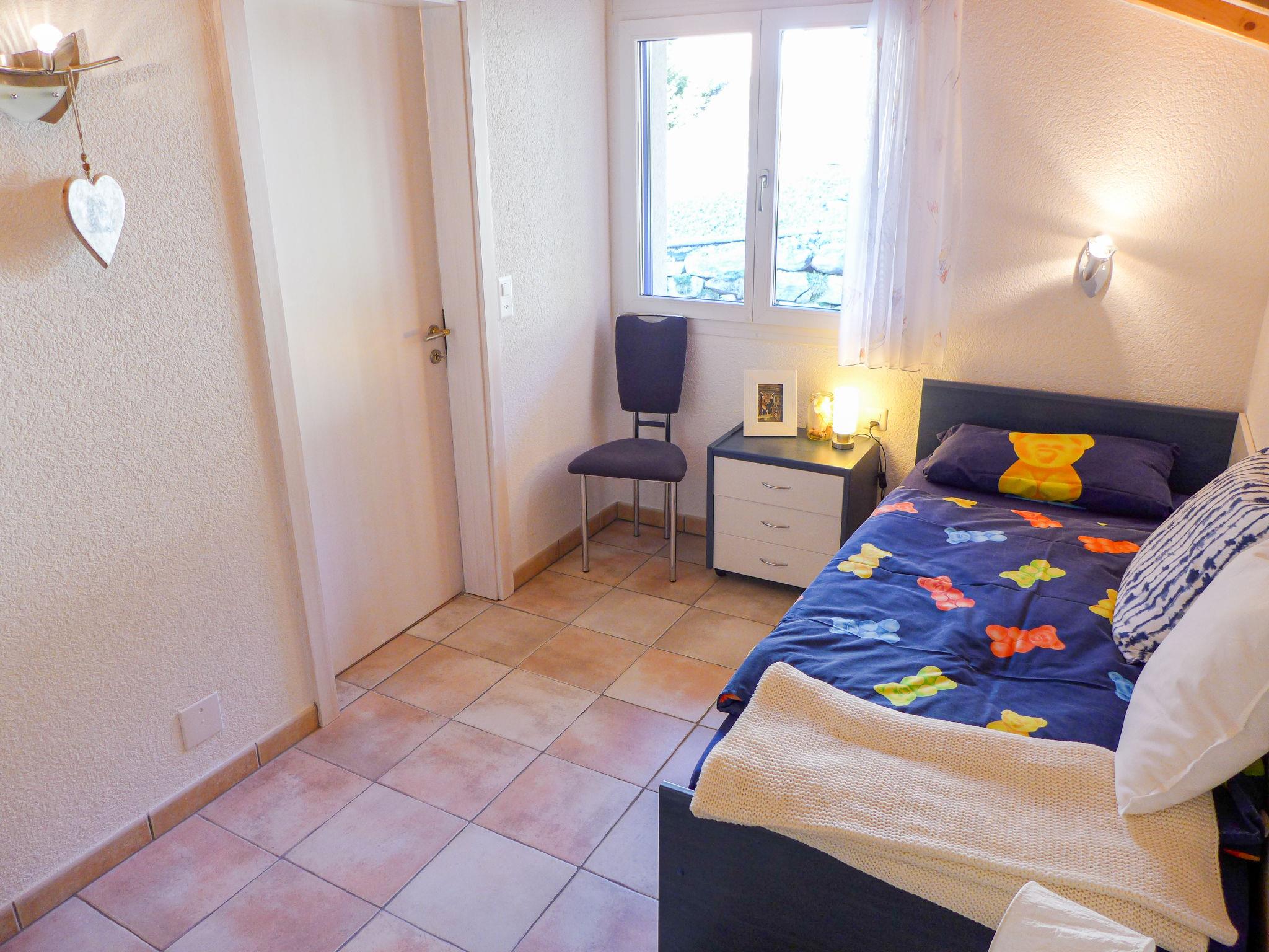 Very beautiful terraced house "Maison N°35", 2 storeys, terraced, built in 2003. In the hamlet Bluche, 4 km from the centre of Montana, in a quiet, sunny position, traffic calmed area, 100 m from the edge of the forest, 4 km from the lake, 4 km from the skiing area, in a cul-de-sac, in the countryside, south facing position. Private: garden (not fenced) lawn 15 m2. In the house: storage room for skis, central heating system, washing machine, tumble dryer. Parking (limited number of spaces), single garage. Supermarket 3.6 km, restaurant, café 500 m, bus stop "Bluche village" 900 m, railway station "Funiculaire Bluche" 900 m, bathing lake "Moubra" 4 km. Golf course (18 hole) 5.5 km, walking paths from the house 150 m, skisport facilities 3 km, ski school 4 km, cross country ski track 4 km. Well-known lakes can easily be reached: Etang Long 4.7 km, Grenon 5 km. Please note: car recommended. Object suitable for 4 adults + 2 children groups of teenagers on request only. The keys‘ handover takes place by the agency Interhome in Montana, 4 km.