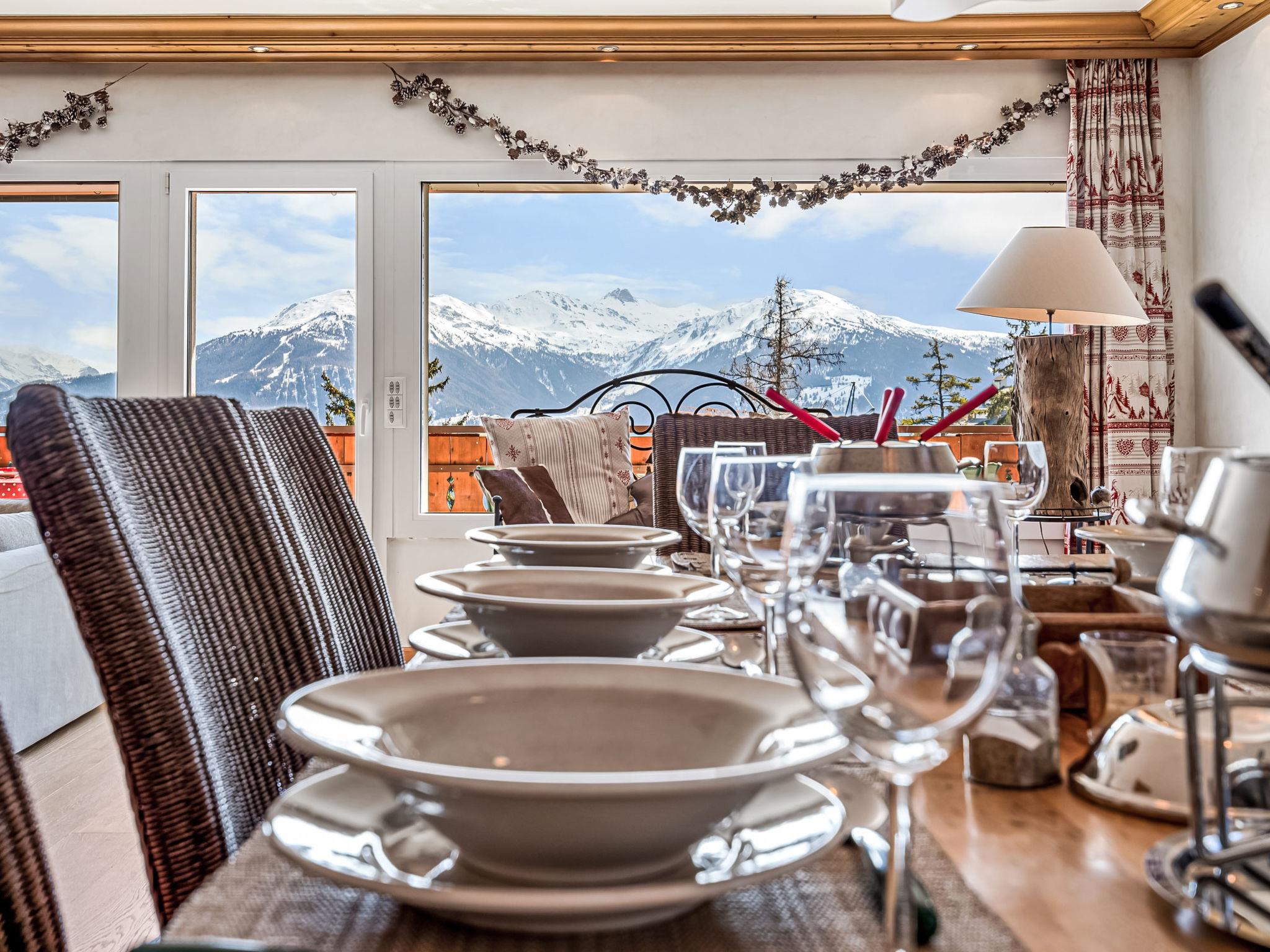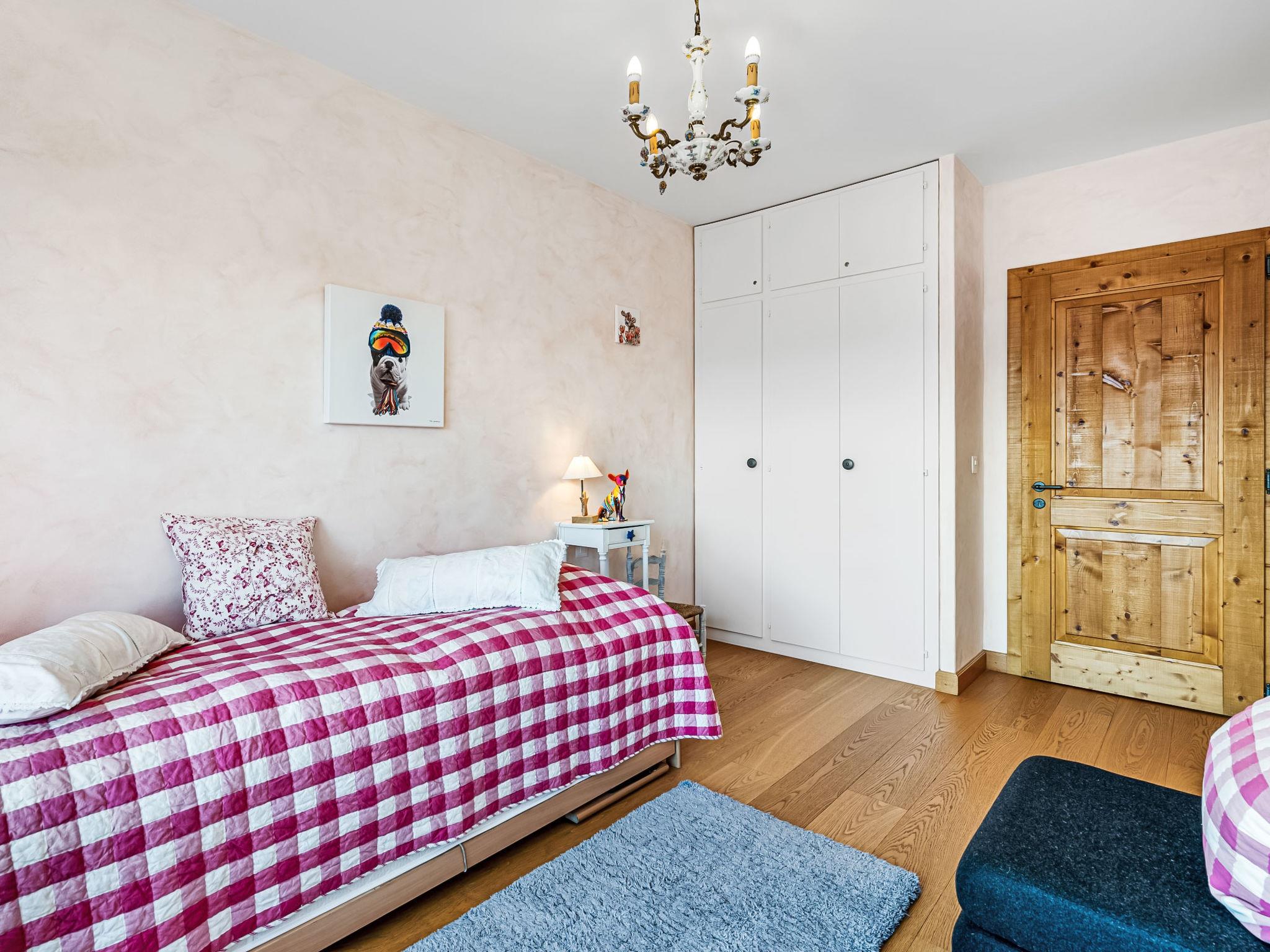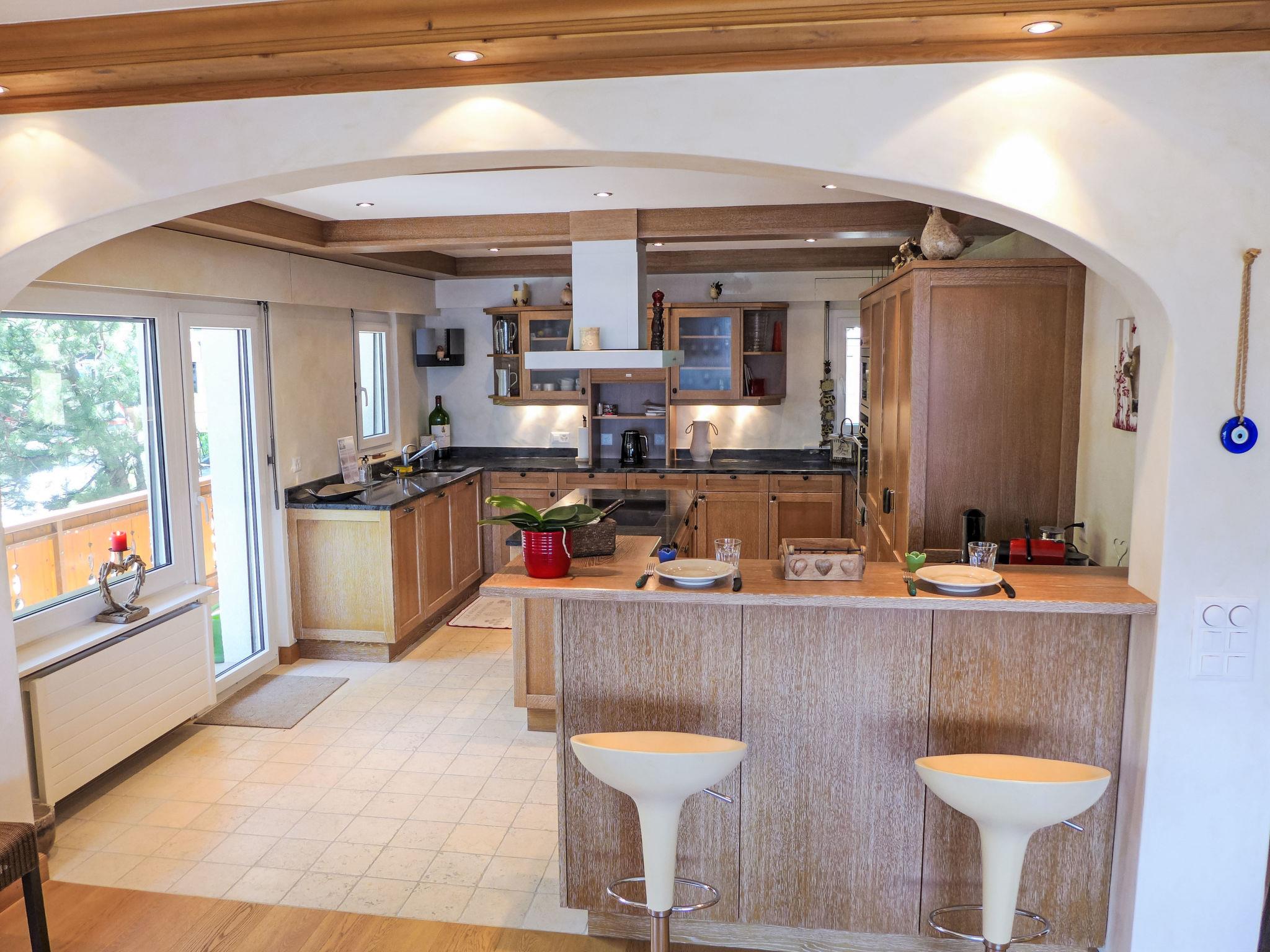"Bridina n°1", 5-room apartment 160 m2 on 2nd floor, south facing position. Spacious and bright, tasteful and cosy furnishings: large living/dining room with cable TV, flat screen, radio, CD-player, hi-fi system, DVD collection available and Home cinema. Exit to the balcony. 1 room with 1 double bed (160 cm, length 200 cm). Exit to the balcony. 1 room with 1 double bed (160 cm, length 200 cm). Exit to the balcony. 1 room with 1 pull-out bed (2 pers. 2 x 90 cm, length 200 cm). Exit to the balcony. 1 room, north facing position with 1 pull-out bed (2 pers. 2 x 90 cm, length 200 cm). Large, open kitchen 30 m2 (oven, dishwasher, 4 ceramic glass hob hotplates, toaster, kettle, microwave, freezer, electric coffee machine, Capsules for coffee machine (Nespresso) extra, cooking island, fondue Set (chinoise, cheese)). Exit to the balcony, west facing position. Bath/WC, shower, sep. WC. Large balcony, south facing position. Balcony furniture. Very beautiful view of the mountains and the resort. Facilities: iron, hair dryer. Internet (WiFi, free). Parking (2 cars). Please note: non-smokers only.