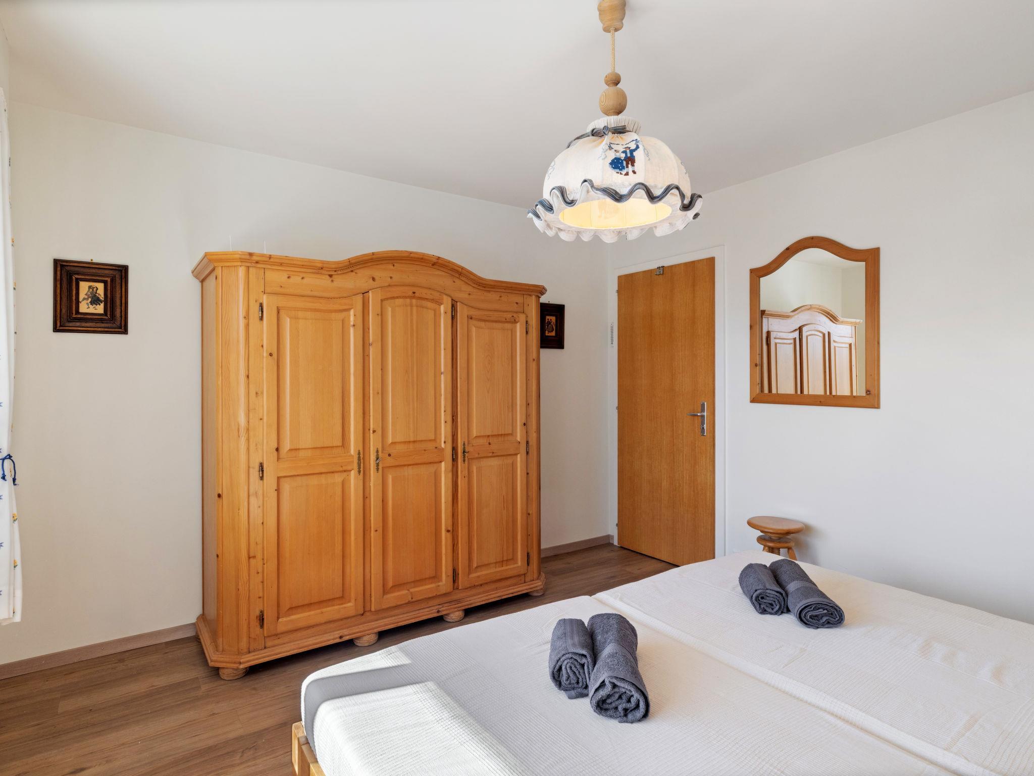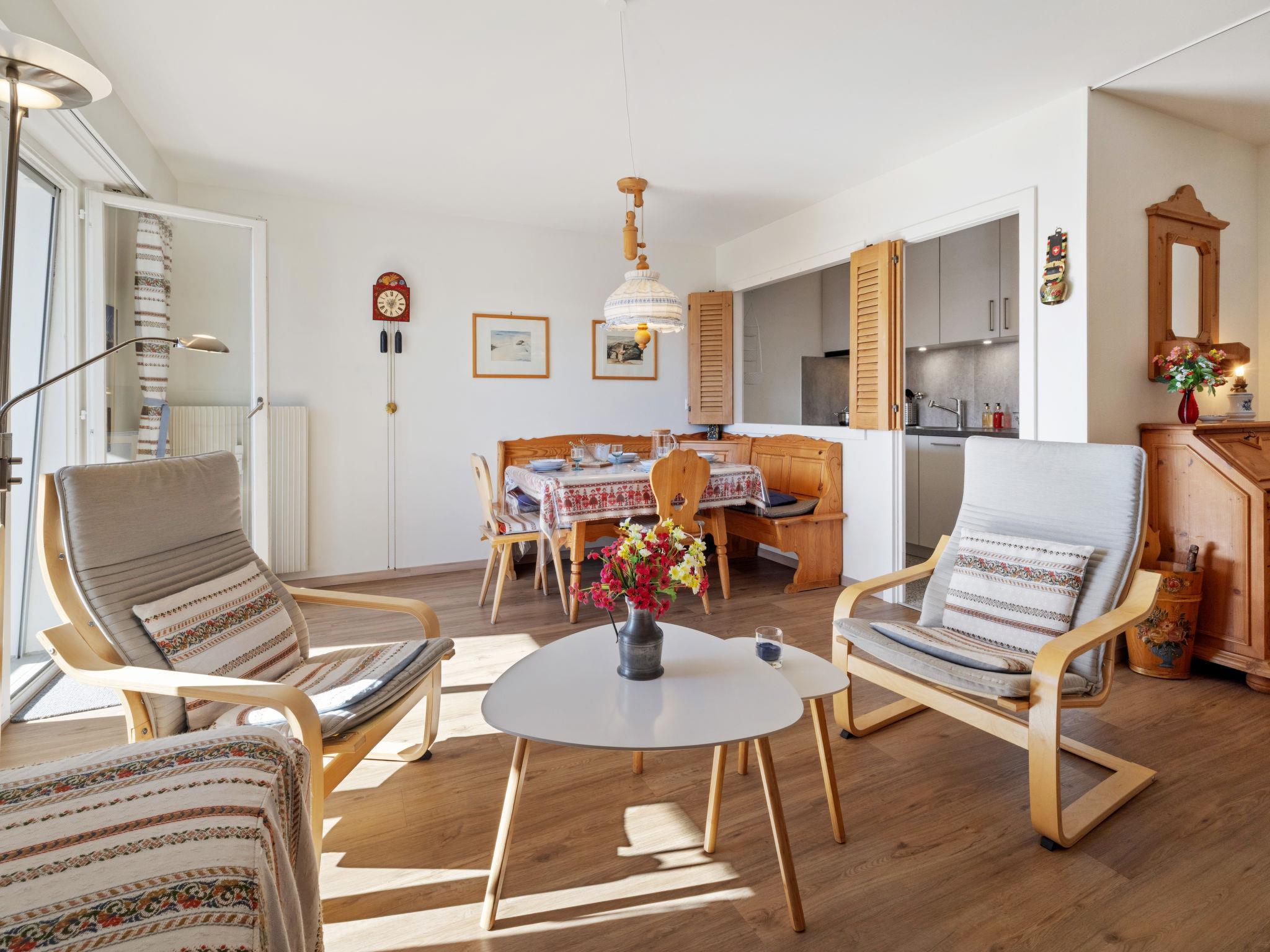 "Armorial Ouest 51", 2-room apartment 60 m2 on 2nd floor, south facing position. Fully renovated in 2022, modern and tasteful furnishings: large living/dining room with 1 pull-out bed (2 pers. 2 x 90 cm, length 200 cm), separate WC and satellite TV. Exit to the balcony. 1 room with 2 beds (90 cm, length 200 cm). Open kitchen (oven, dishwasher, 4 ceramic glass hob hotplates, toaster, kettle, electric coffee machine, Capsules for coffee machine (Nespresso) extra, raclette grill, combination microwave, fondue Set (cheese)). Shower. Balcony, south facing position. Balcony furniture, deck chairs (2). Beautiful view of the mountains and the countryside. Facilities: iron, hair dryer. Internet (WiFi, extra). Please note: non-smokers only. TV only FR, DE.