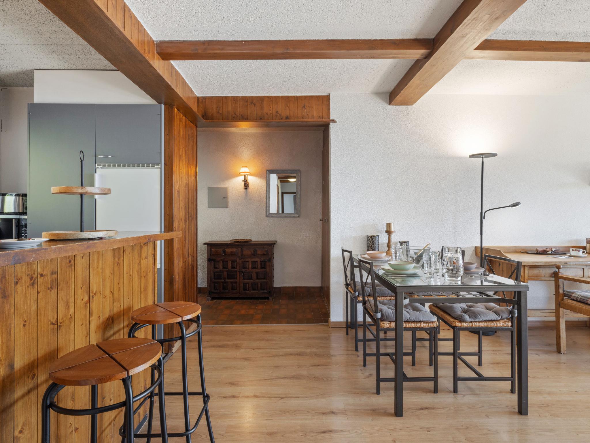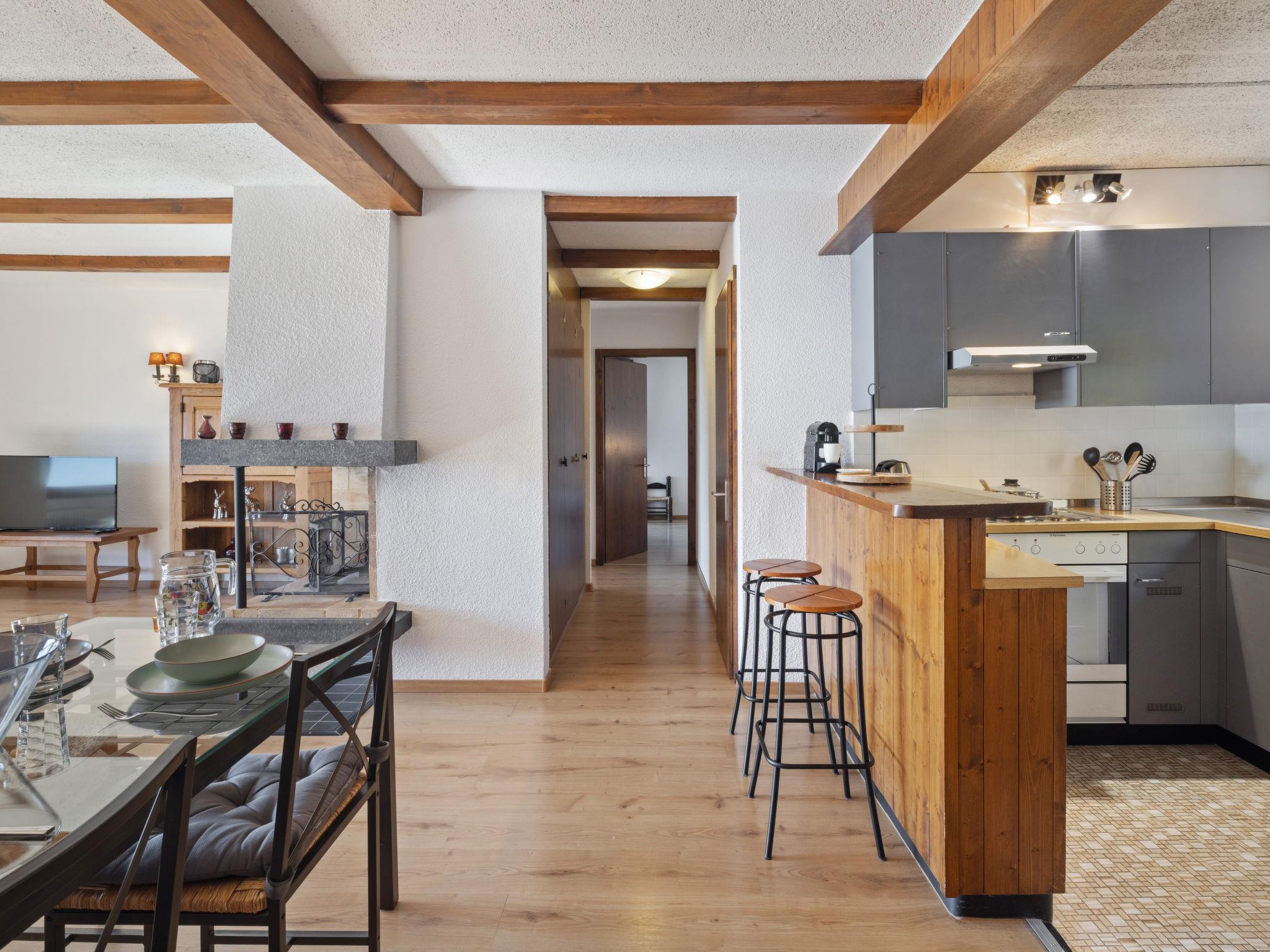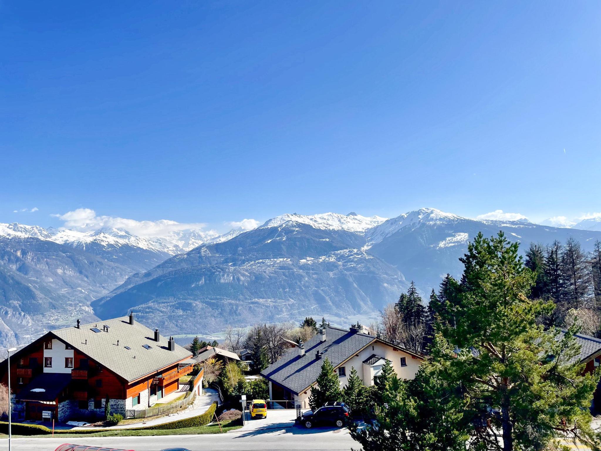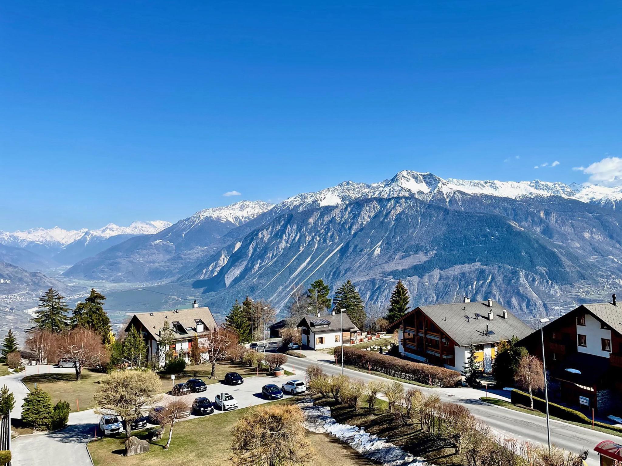 "Lisière-Sud A 17", 3-room apartment 95 m2 on 5th floor. Partly renovated in 2020, beautiful furnishings: living/dining room with open-hearth fireplace and cable TV. Exit to the balcony, south facing position. 1 room with 1 french bed (180 cm, length 200 cm), bath/WC. Exit to the balcony, south-west facing position. 1 room with 1 french bed (140 cm, length 200 cm). Open kitchen (3 hot plates, oven, dishwasher, toaster, kettle, microwave, electric coffee machine, Capsules for coffee machine (Nespresso) extra, raclette grill, fondue Set (cheese)). Shower/WC. Balcony furniture. Very beautiful view of the mountains. Facilities: iron, hair dryer. Internet (WiFi, free). Garage space n 10/box, height 190 cm, width 235 cm. Maximum 1 small pet/ dog allowed.