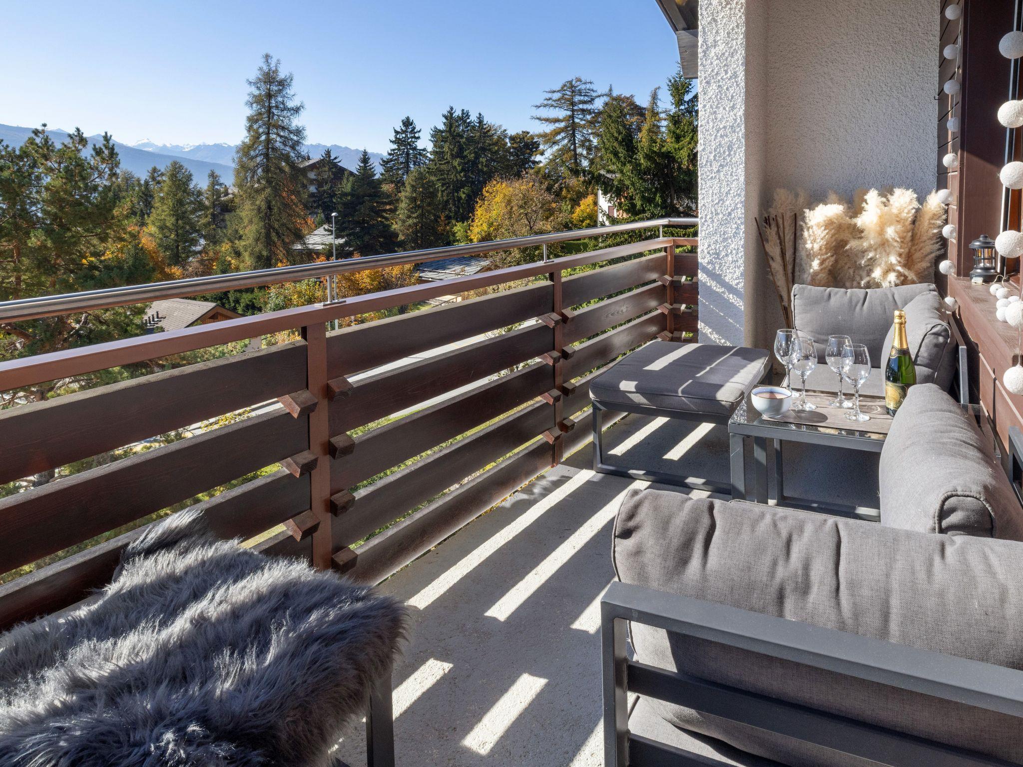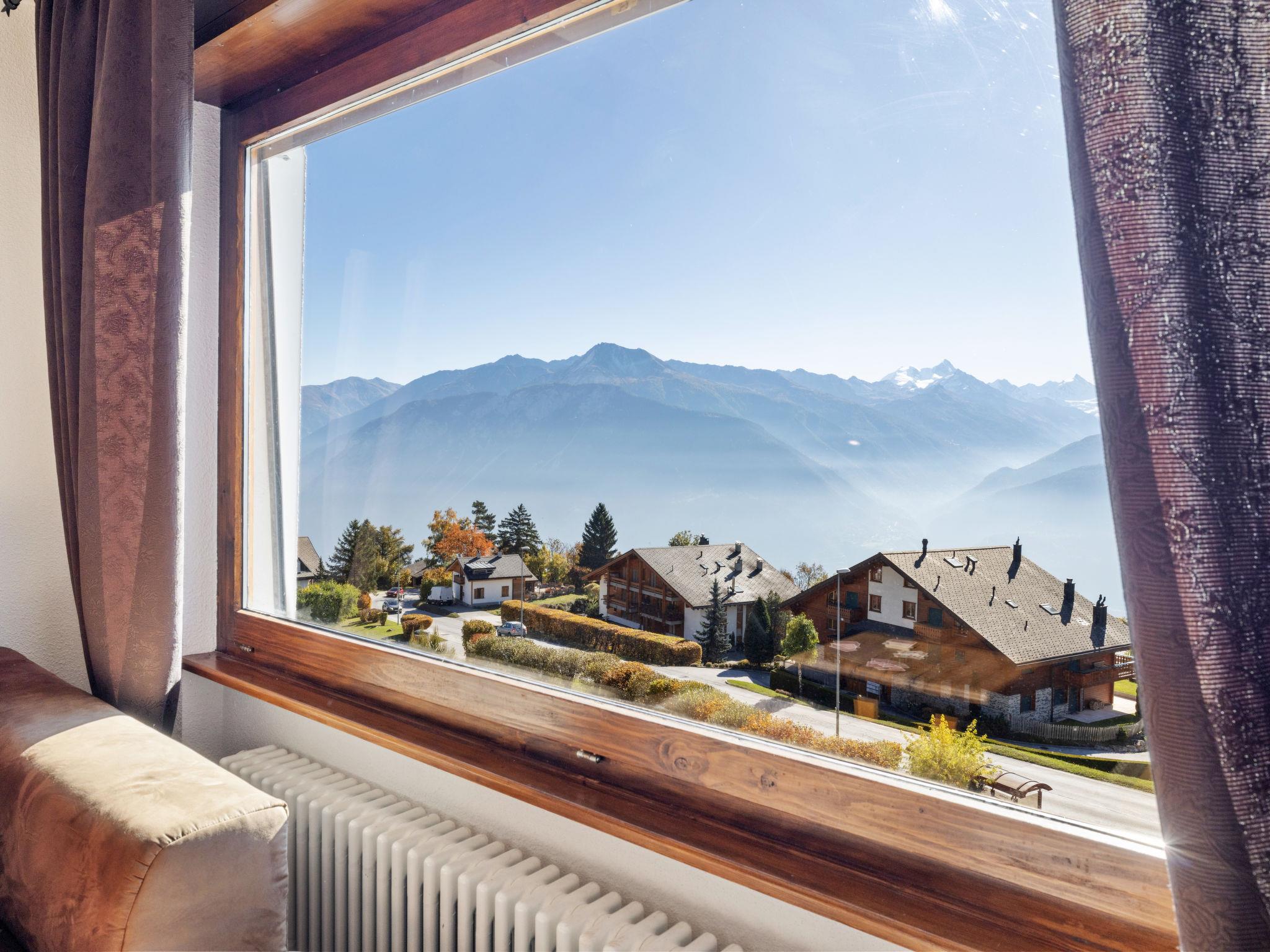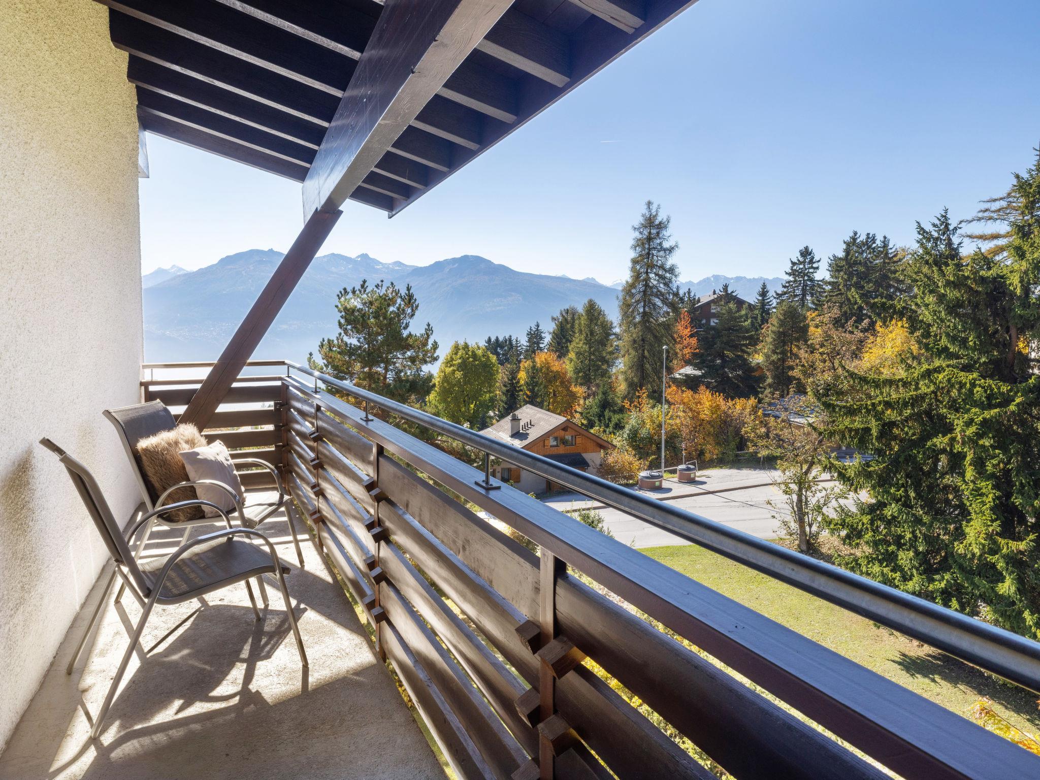 Cosy, comfortable residence "Lisière-Sud". Below Montana, in the district of La Combaz, 1.7 km from the centre, 2.3 km from the lake, 1.2 km from the skiing area, on a main road, south facing position. In the complex: lift, storage room for skis, central heating system, washing machine, tumble dryer (for shared use, extra). Parking (limited number of spaces) at the house. Shop 1.6 km, supermarket 1.7 km, restaurant 1.6 km, bus stop "Comba" 50 m, railway station "Funiculaire Montana Gare" 1.2 km, bathing lake "Moubra" 2.7 km, lake Grenon 2.3 km. Golf course (18 hole) 3.4 km, skisport facilities 1.2 km, ice rink 1.8 km. Please note: ski bus (free of charge).