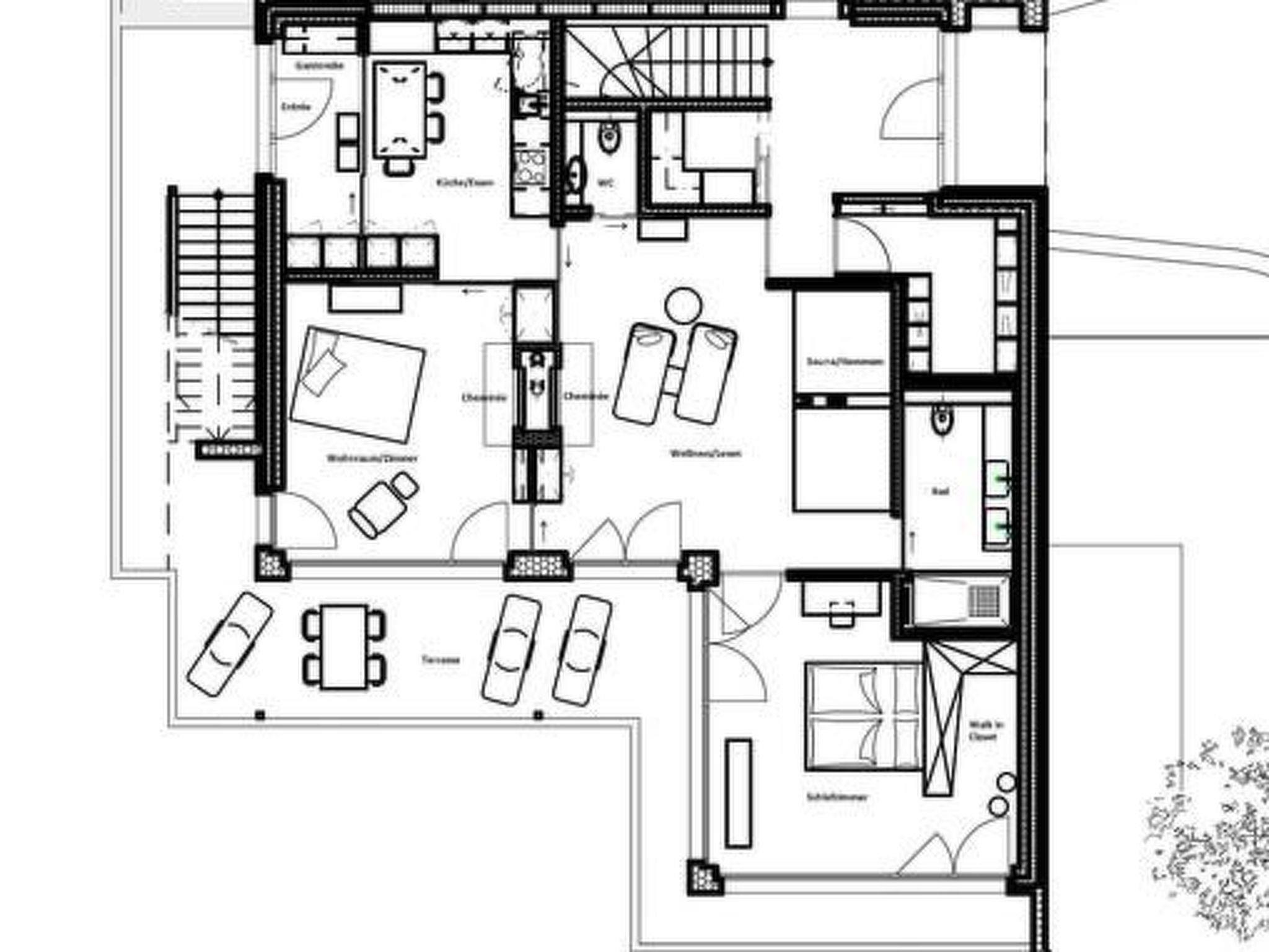 Inside the chalet, you will find luxurious furnishings that leave nothing to be desired. The modern amenities and the spacious room layout, combined with high-quality materials and fine furniture, offer living comfort in a class of its own. The living rooms are cosily furnished with a sofa, armchairs, a fireplace and a sofa bed, which can be converted into two comfortable beds if required. In the bedroom you will find a king-size bed, a dressing room, a desk and a safe. The fully equipped kitchen is complemented by a selection of high-quality organic products and basic groceries for your self-catering needs.