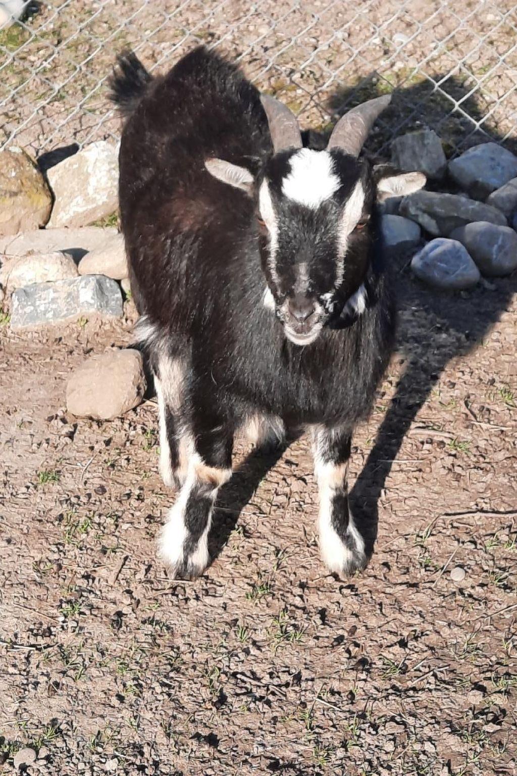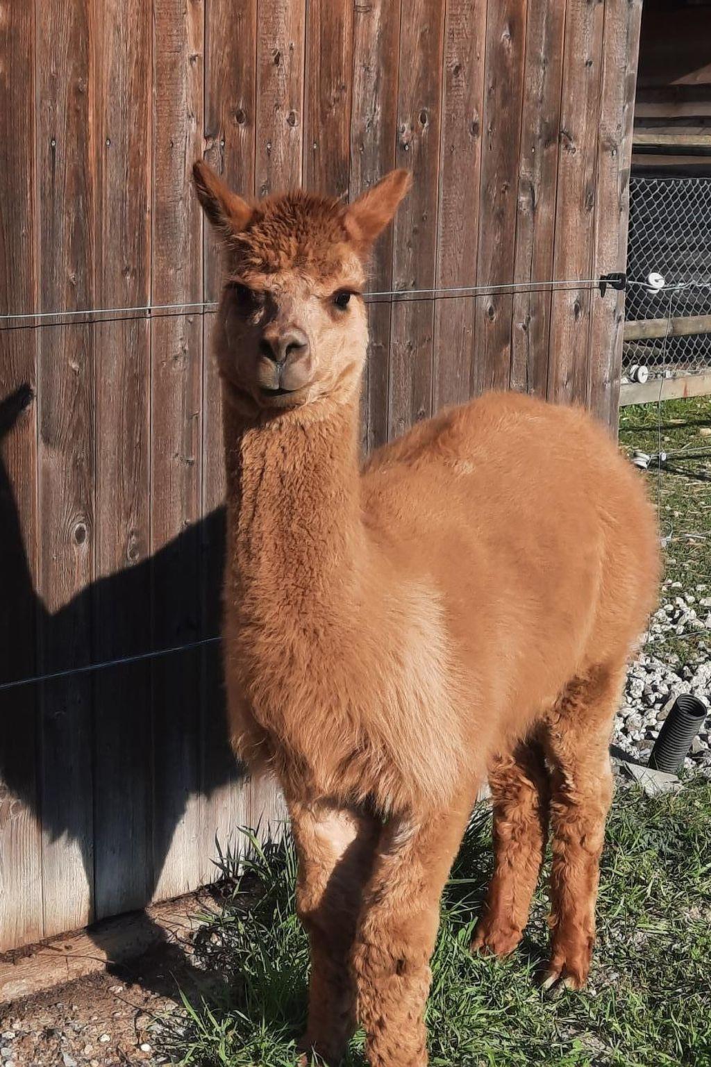 On our farm we have alpacas, calves, dogs, cats, dwarf goats, munis (bulls) and rabbits.