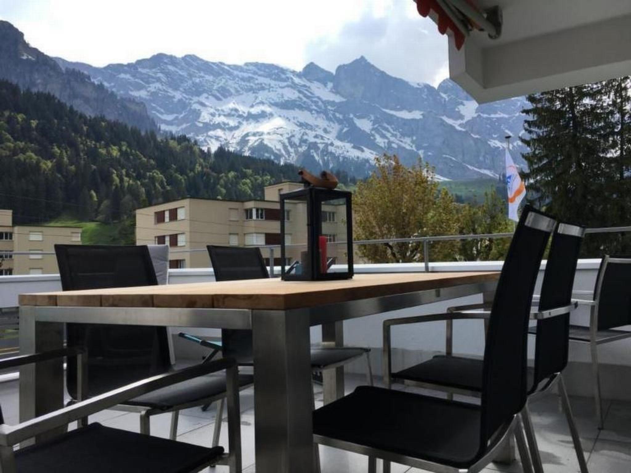 The living room gives access to a superb terrace of 25 sqm equipped with garden furniture, allowing to fully benefit from its south orientation with sight on Titlis mountains.