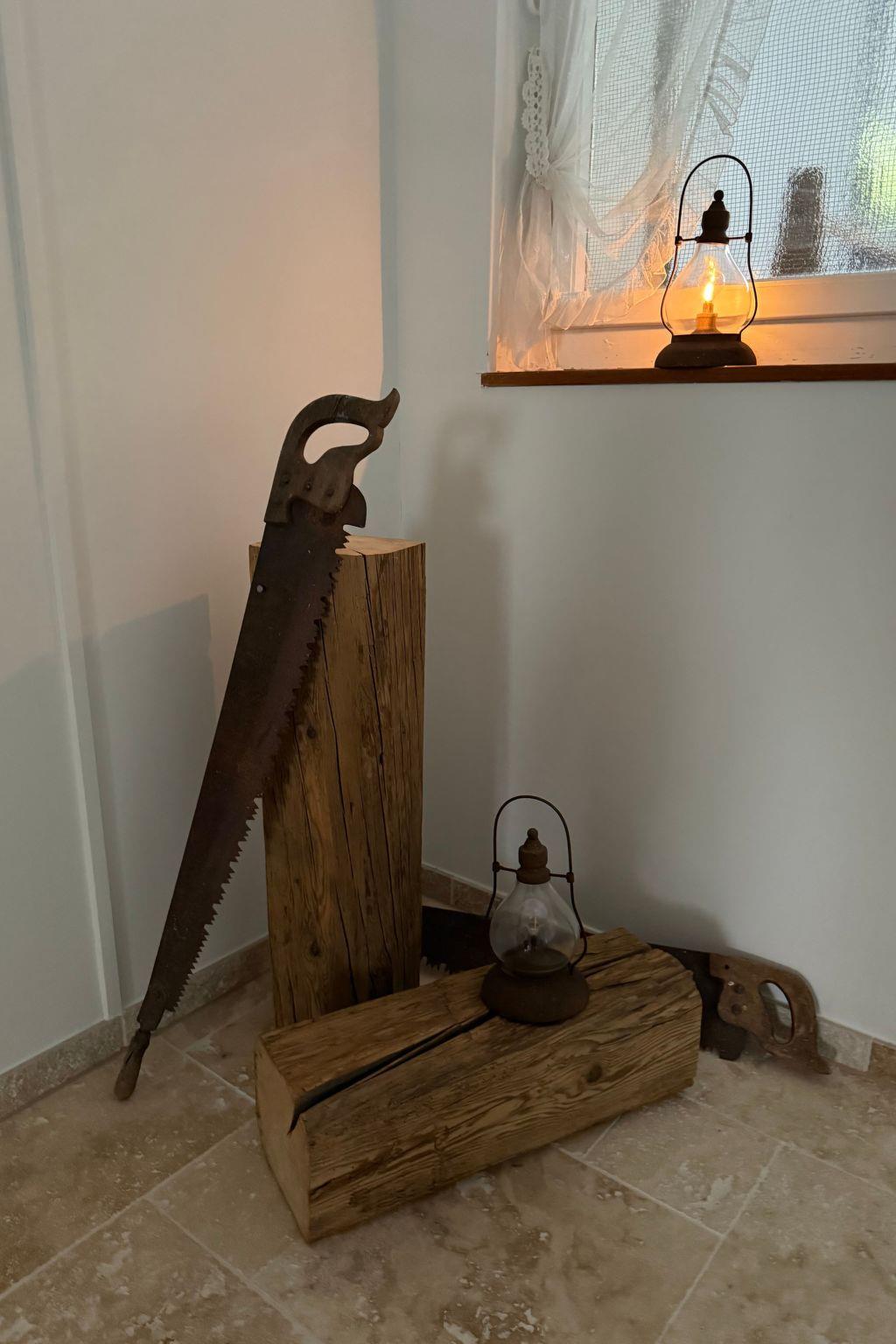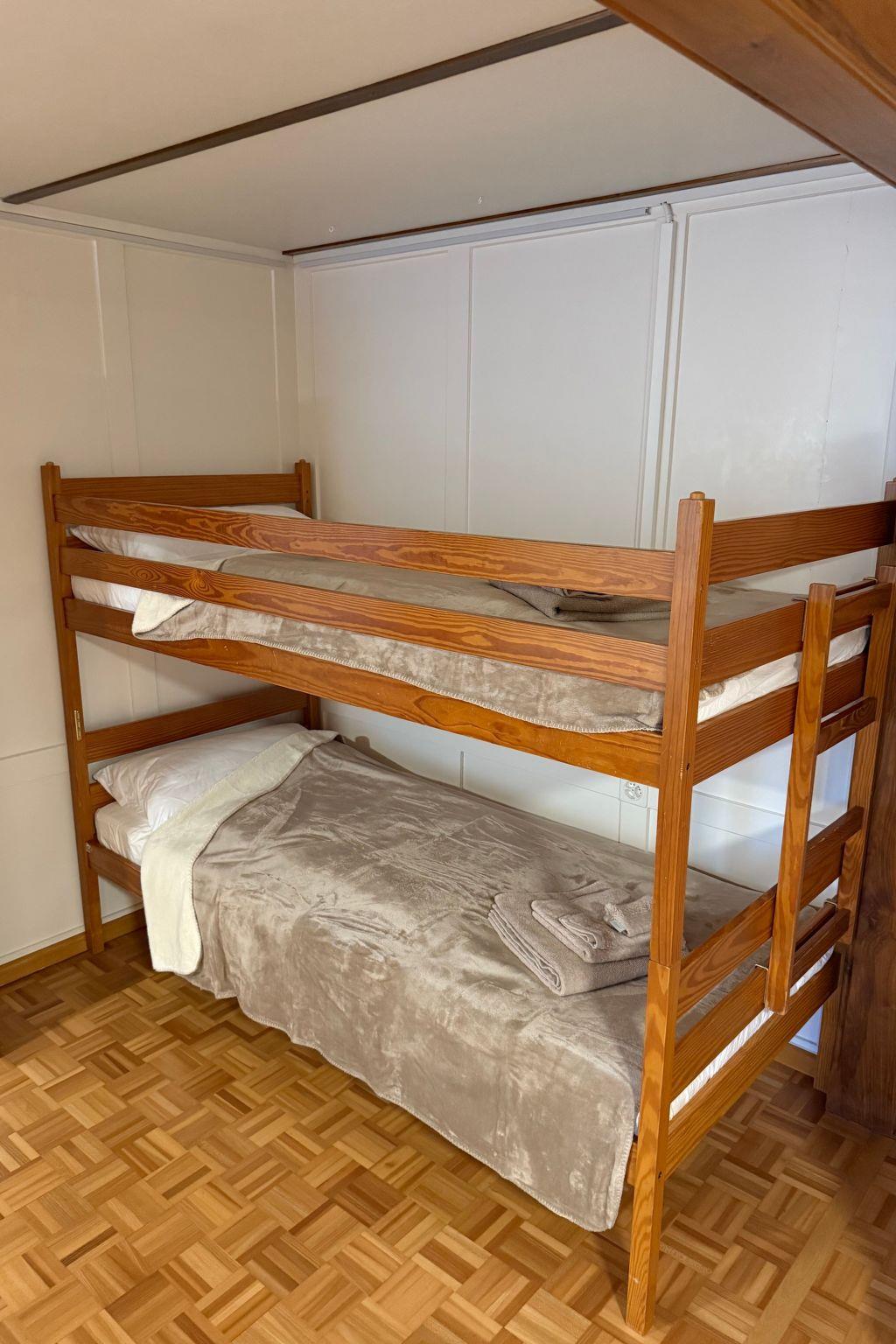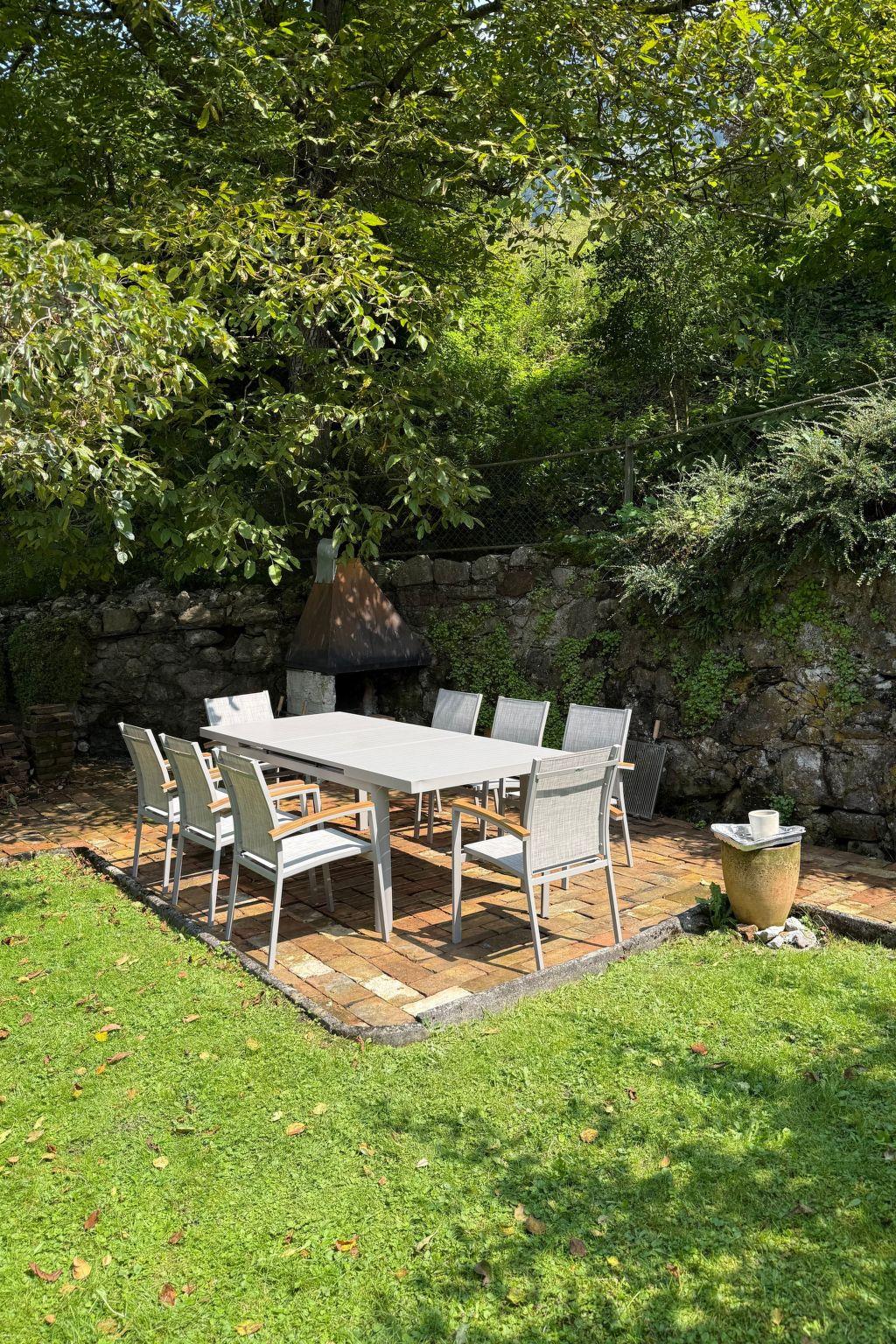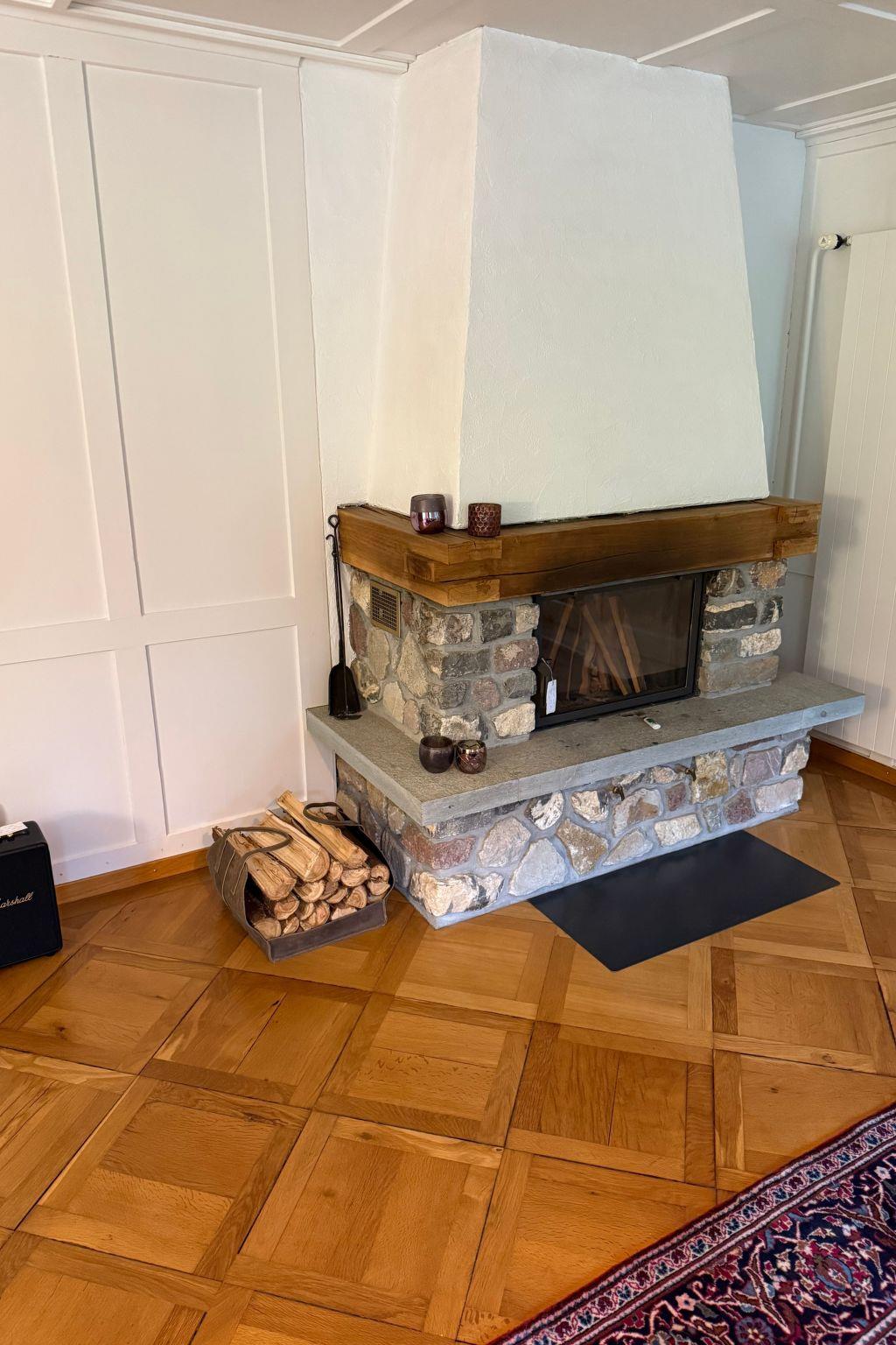 Outdoors, the private garden is a highlight for both children and adults. Apple trees, a swing, and climbable trees invite little adventurers to play, while grown-ups can enjoy relaxed evenings at the beautiful outdoor fireplace and grill. Though the house lies along a street, the garden feels sheltered and calm, with views of the surrounding mountains and quick access to the mountain forest.