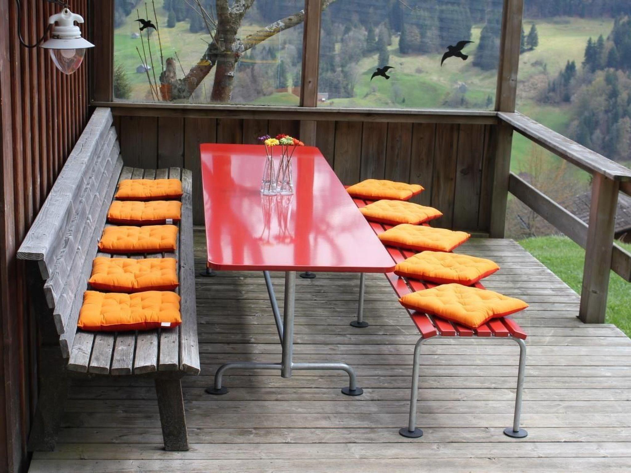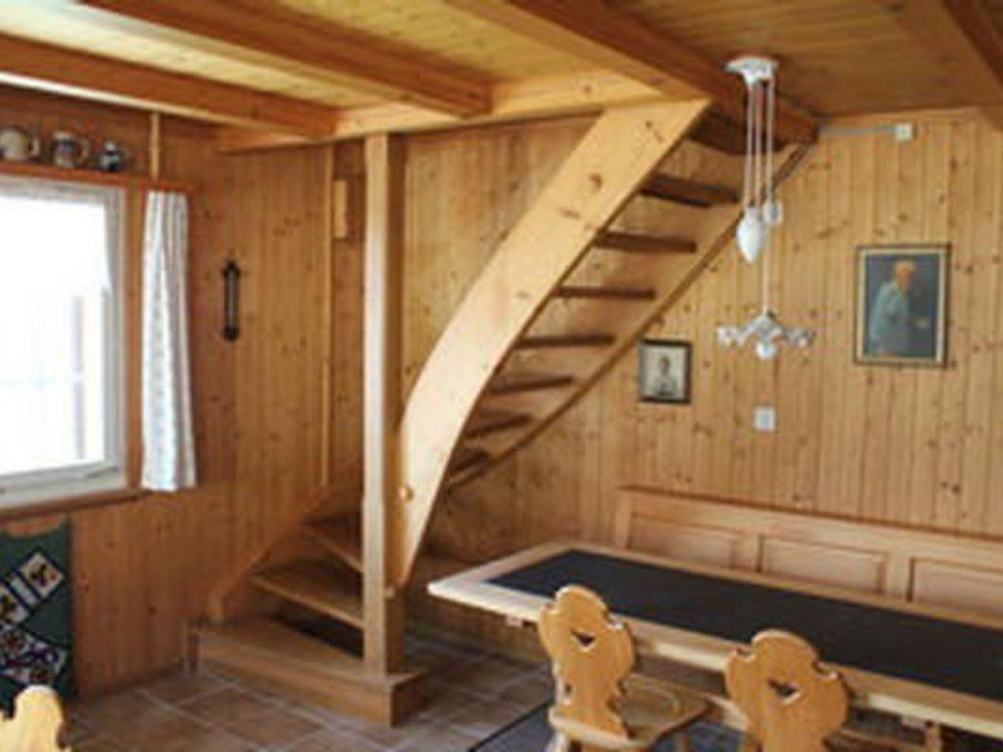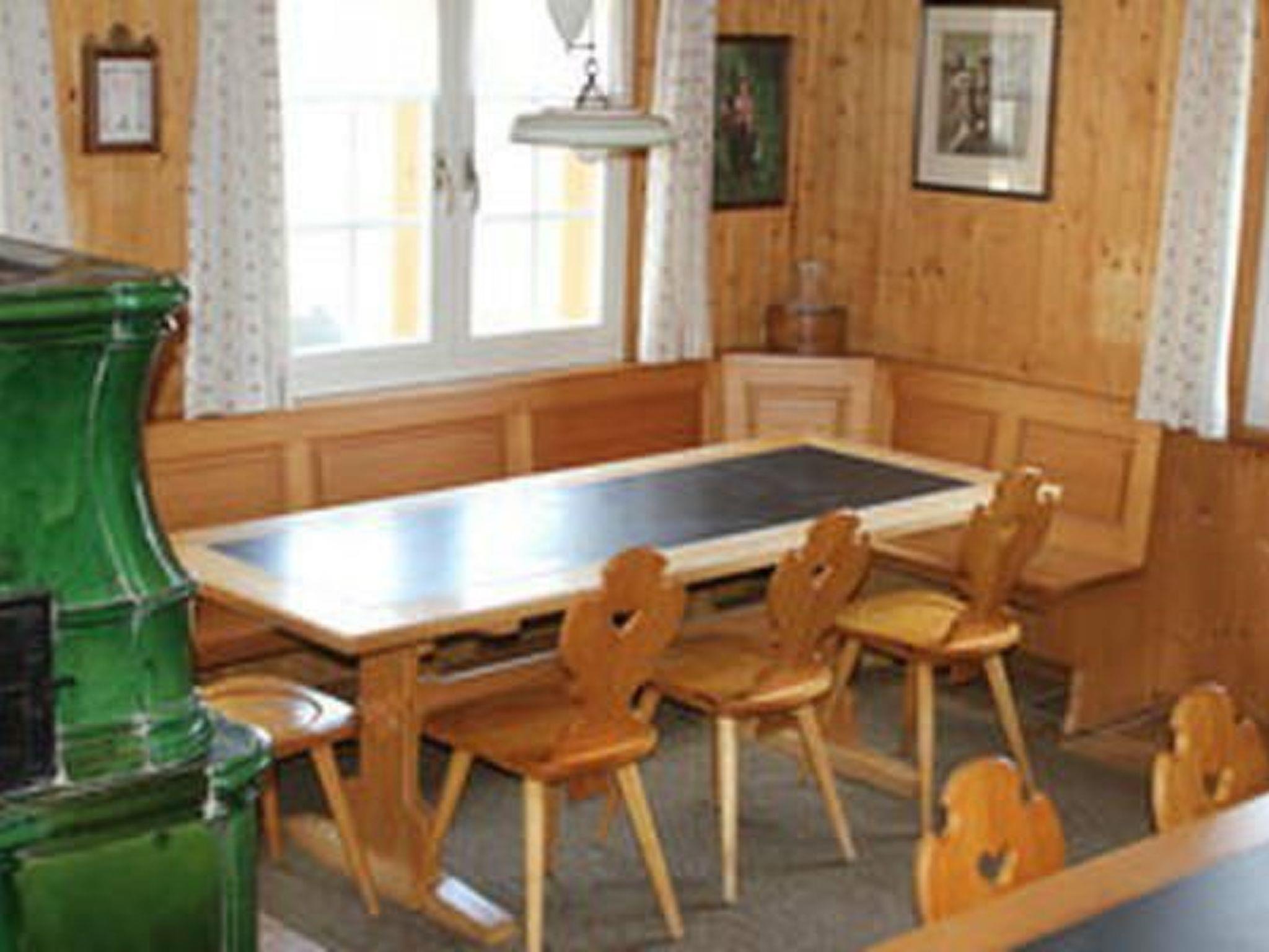 Other living room equipment (living room1): Former Toggenburg embroidery parlour. Bright and very spacious. Comfortable reading chair with stool. 1 large slate table with long corner bench. 1 small slate table with wall bench.