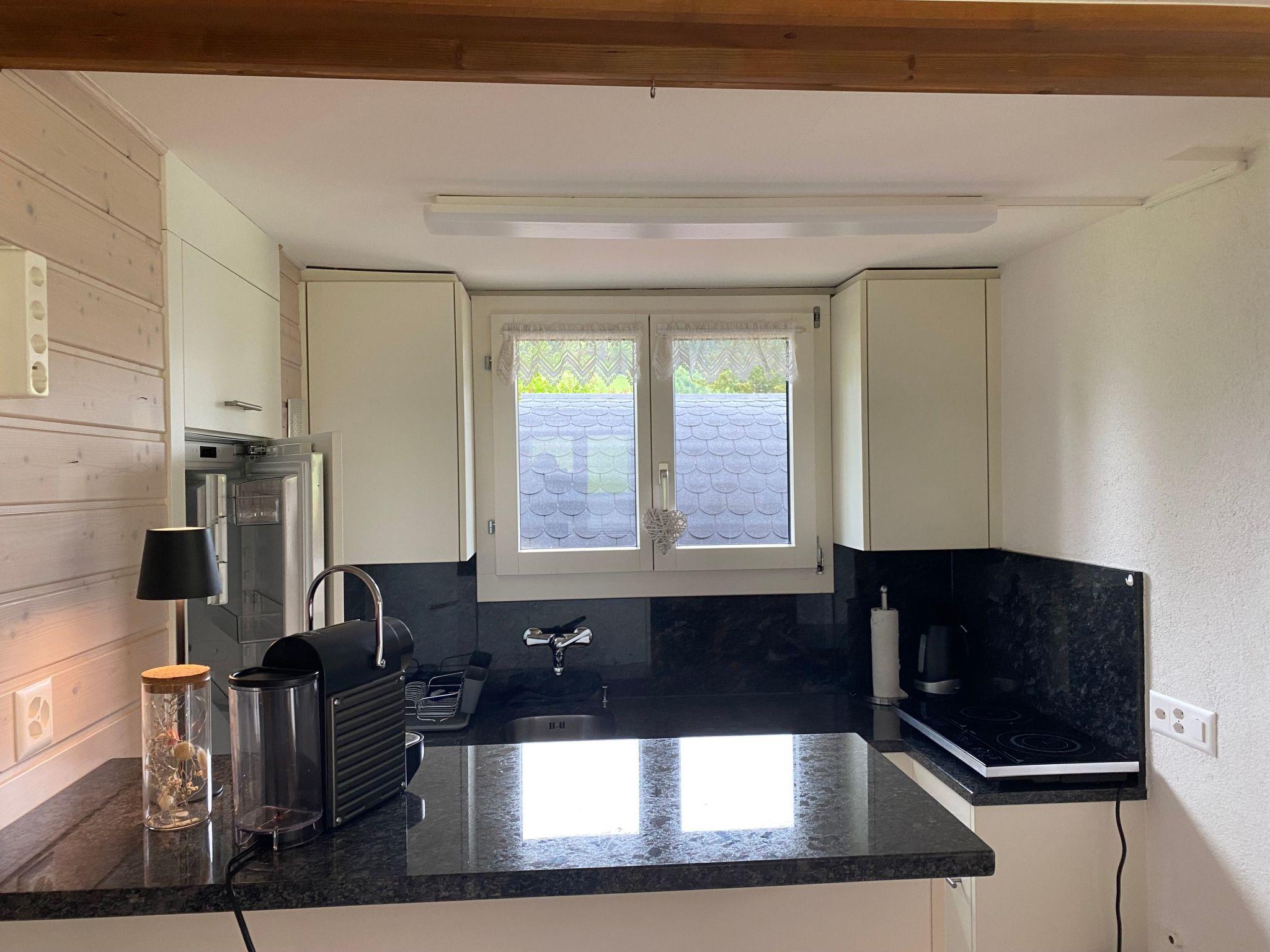 The kitchen is functional, but has everything you need in a small kitchenette (coffee machine, fridge, two hotplates). It really serves to detox from everyday appliances, so there is no dishwasher or similar, nor is there an oven.