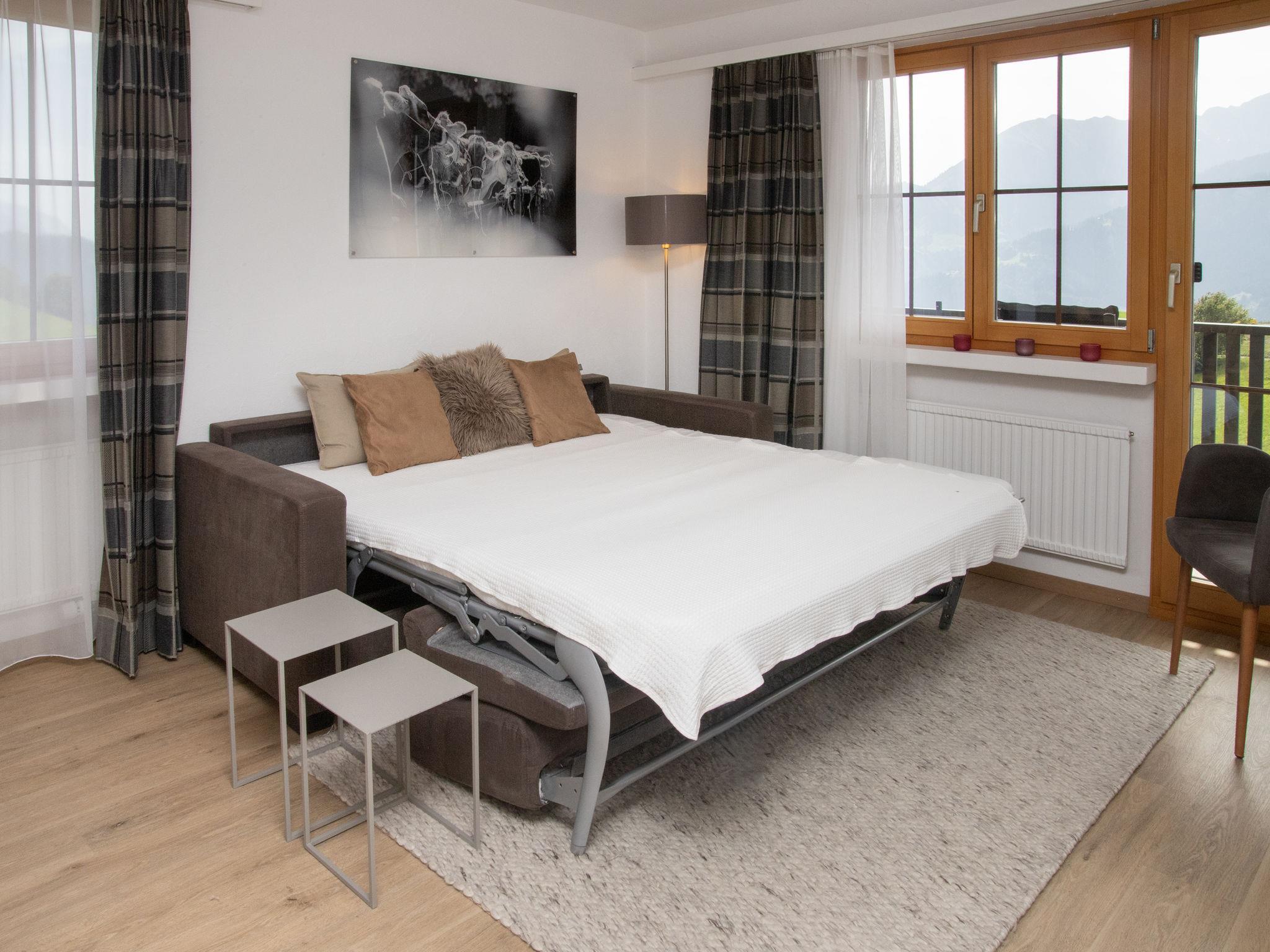 "La Siala Apt.23", 2-room apartment 42 m2 on 2nd floor. Comfortable and cosy furnishings: living/dining room with 1 double sofabed and cable TV (flat screen). Exit to the balcony. 1 double bedroom. Open kitchen (oven, dishwasher, 4 ceramic glass hob hotplates, toaster, kettle, microwave, electric coffee machine, Capsules for coffee machine (Nespresso) extra, raclette grill, fondue Set (cheese)). Bath/WC. Balcony 8 m2, south facing position. Balcony furniture. Very beautiful view of the mountains, the valley and the countryside. Facilities: hair dryer. Internet (WiFi, free). Parking space n 21, garage at the house. E-charging station. Please note: non-smokers only. Maximum 1 pet/ dog allowed.