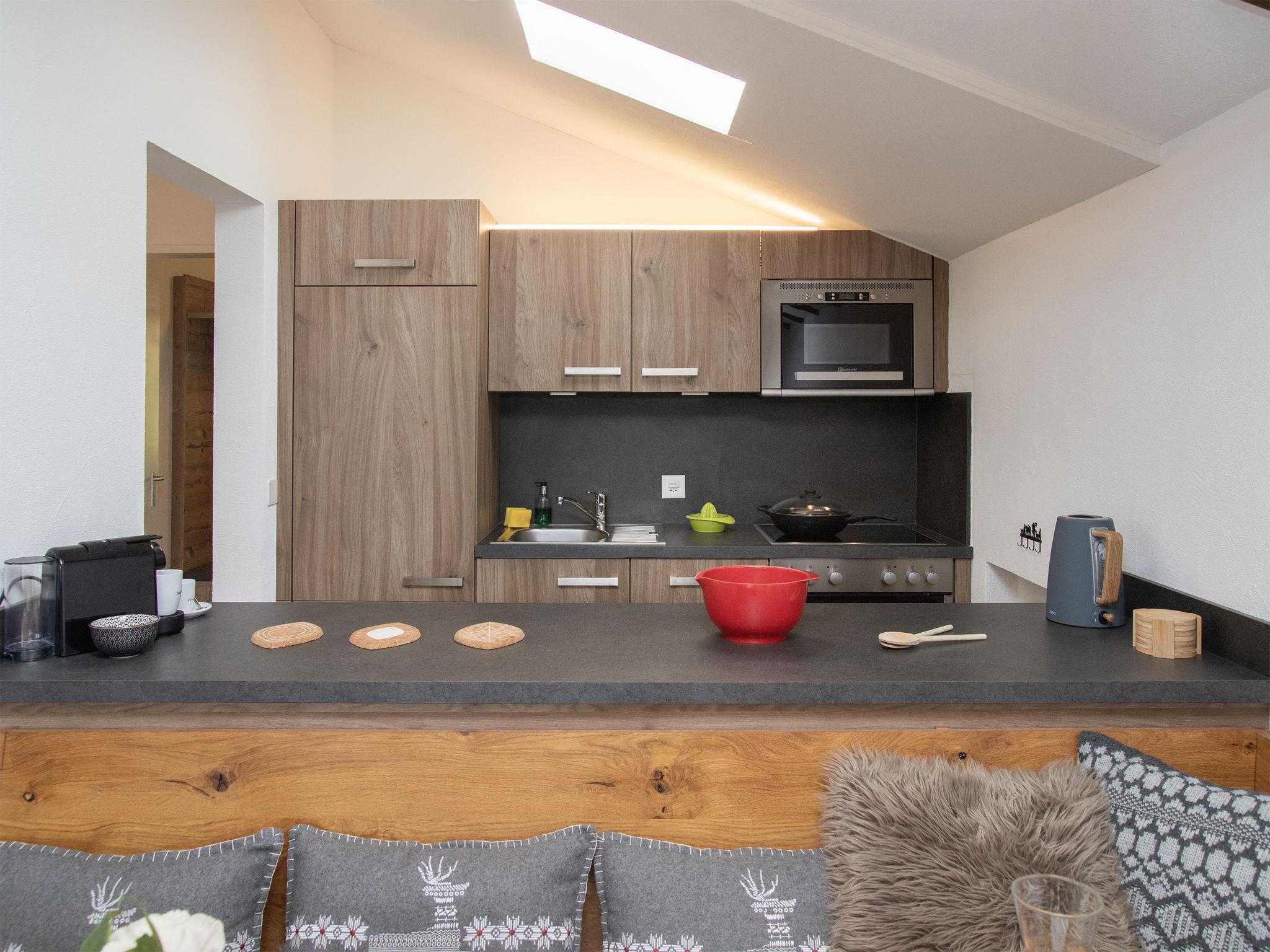 "La Siala Apt.28", 2-room apartment 42 m2, on the top floor. Comfortable and cosy furnishings: living/dining room with 1 double sofabed and cable TV (flat screen). Exit to the balcony. 1 double bedroom. Open kitchen (oven, dishwasher, 4 ceramic glass hob hotplates, toaster, kettle, microwave, electric coffee machine, Capsules for coffee machine (Nespresso) extra, raclette grill, fondue Set (cheese)). Bath/WC. Balcony 8 m2, south facing position. Balcony furniture. Very beautiful view of the mountains, the valley and the countryside. Facilities: hair dryer. Internet (WiFi, free). Parking space n 1, garage at the house. E-charging station. Please note: non-smokers only. Maximum 1 pet/ dog allowed.