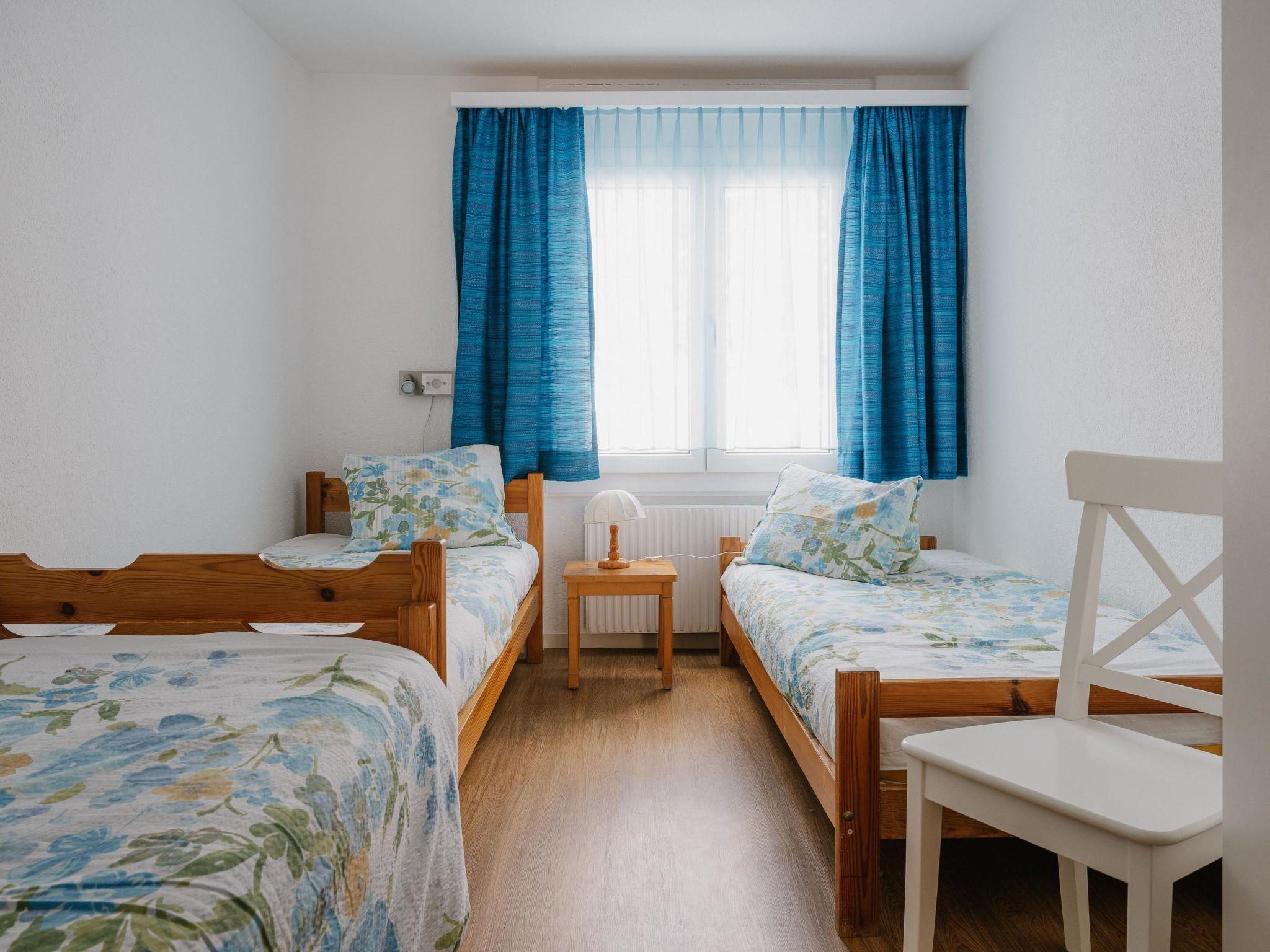The 3 1/2-room apartment Mireille is located on the first floor of Casa Yolanda. Two bedrooms, a spacious living room, a dining area, a fully equipped kitchen and two bathrooms provide space for up to five people. The floors in the bedrooms were replaced with wooden floors at the end of 2024. The south-facing balcony gives you a clear view of the mountains and the landing area of the paragliding school. The bedrooms are located at the quiet back side with a view of the village. There is space for a cot for families with small children, as well as a high chair. The apartment is ideal for families or older couples, as there are only a few stairs leading to the apartment. A barbecue area, lawn and recreational activities around the house complete the offer. Use of the sauna available for an additional fee.
