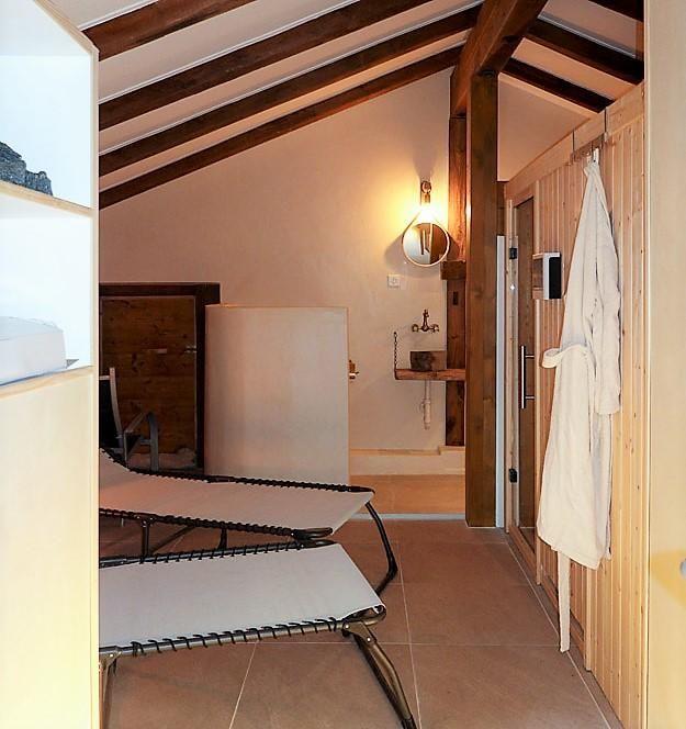 Neben dem Chalet befindet sich ein originaler Walliser Stadel. Kommen Sie und genießen Sie den attraktiven Wellnessbereich (geräumige finnische Sauna, Sonnenliegen, Toilette, Regendusche, kaltes Fußbad). Unten hinter dem Stadel befindet sich eine zusätzliche Terrasse mit einem Außenkamin, die direkt über eine Treppe erreichbar ist. Entspannen!