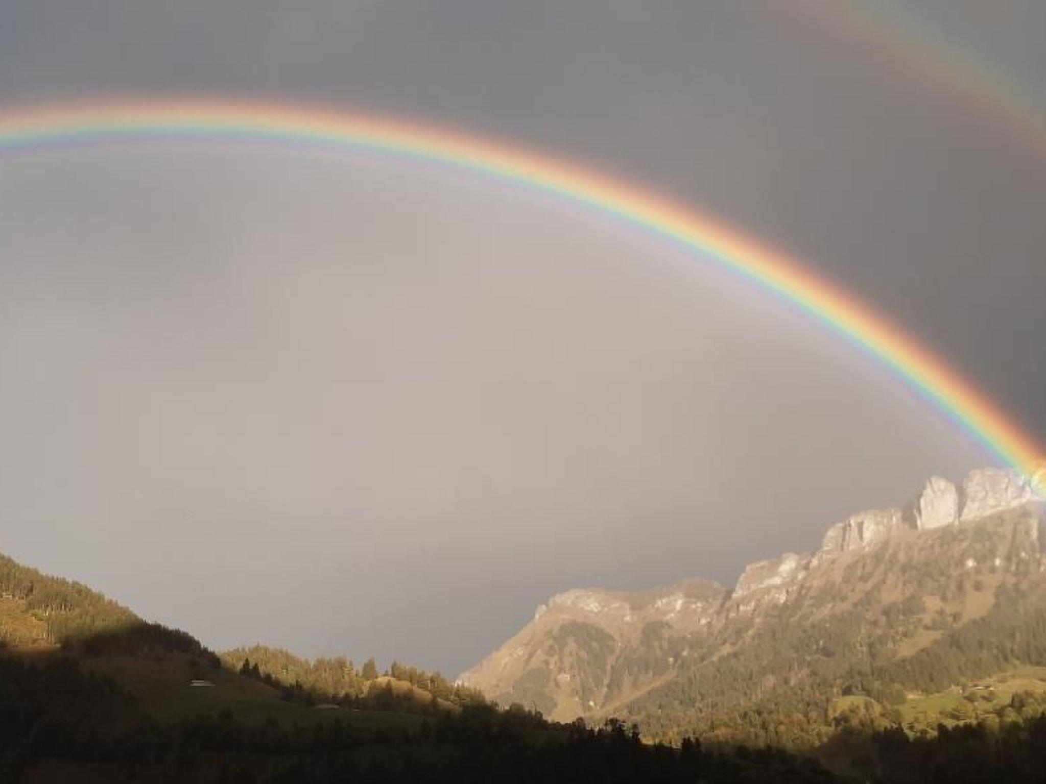 Outside, there is a large house square for cycling, skating or barbecuing. The children will enjoy the pedal tractors and scooters, while the whole family can enjoy the newly added hot tub. Animals such as dairy cows, sheep, pigs, goats, rabbits, chickens, dogs and cats enrich life on the farm and guests of all ages are invited to help out with everyday stable work. The cows and sheep are on the alp from mid-June to the end of August. No stable work is possible during this period.